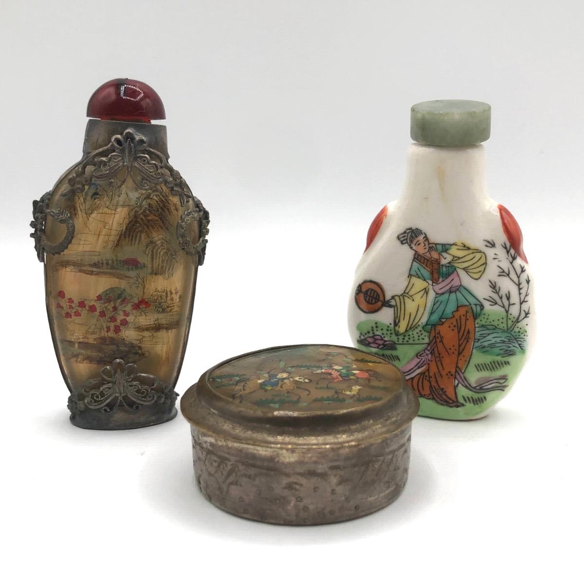 LOT 114: Vintage Russian Pill Case & Two Vintage Snuff Bottles
