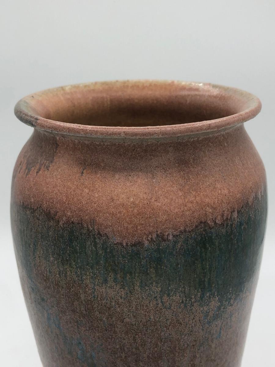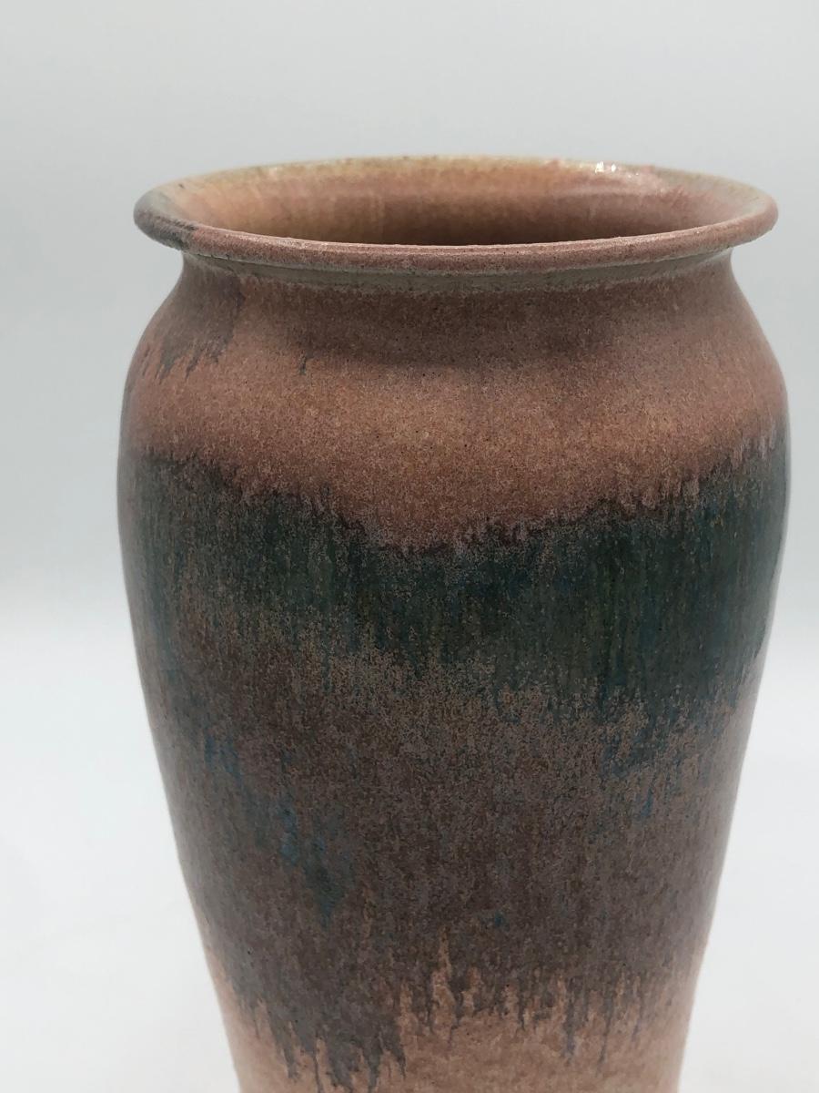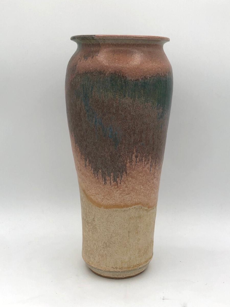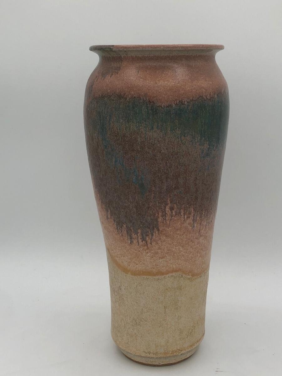 LOT 119: Two Artist Signed Pottery Vases & Two Painted Glass Vases