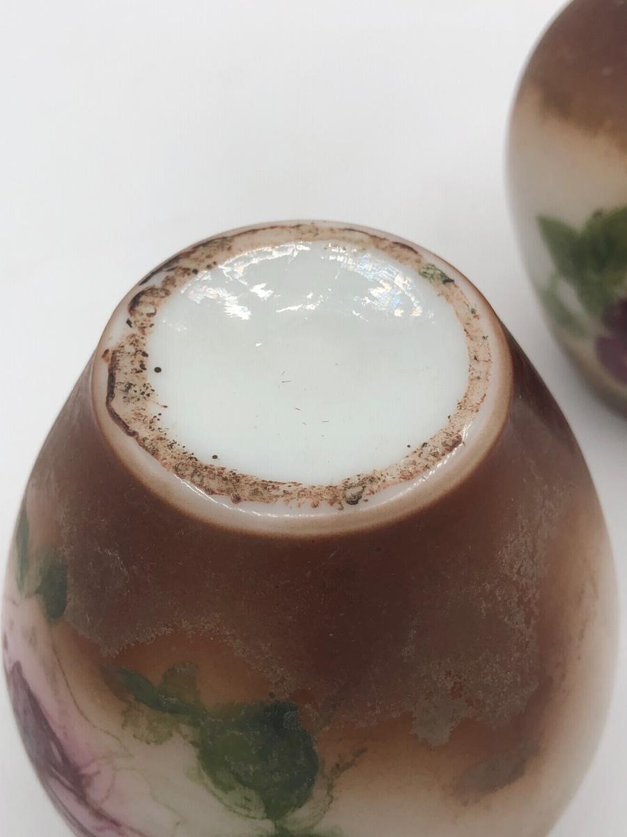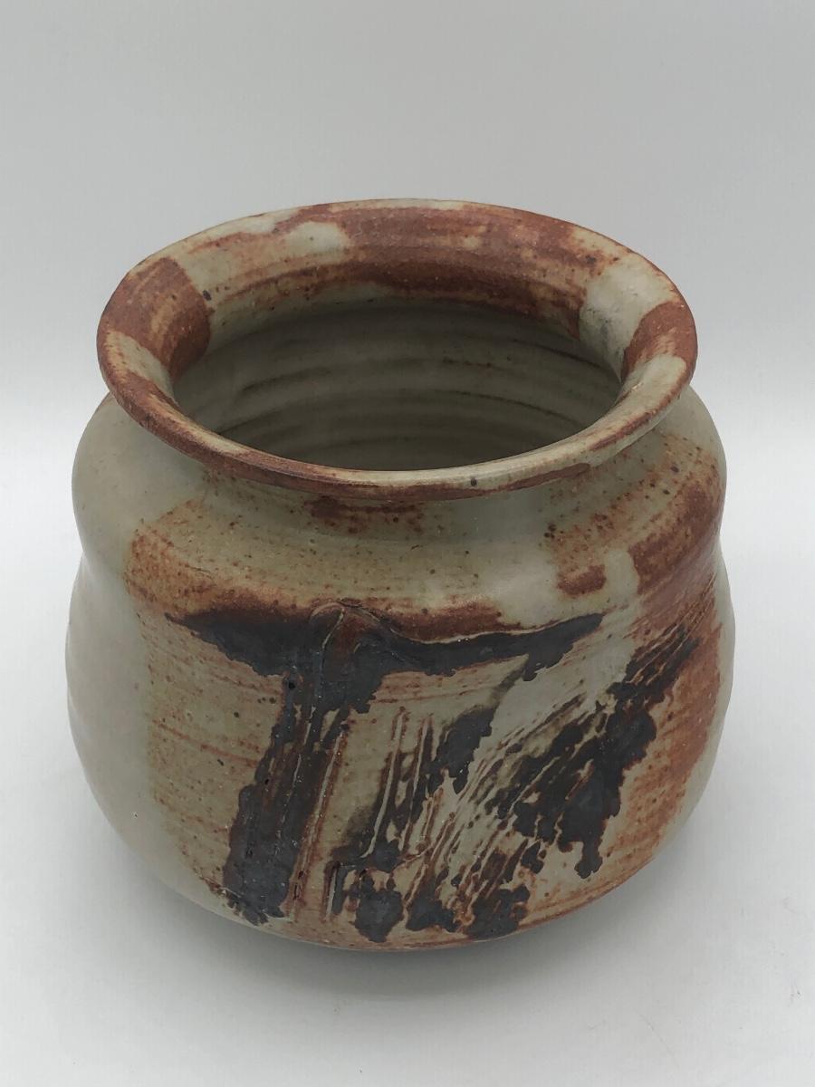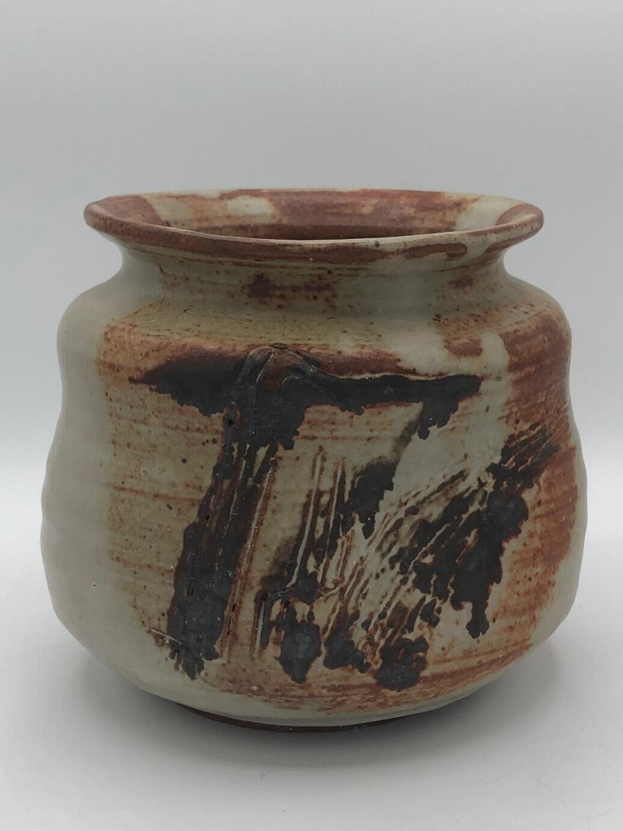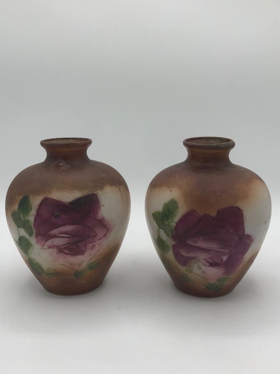 LOT 119: Two Artist Signed Pottery Vases & Two Painted Glass Vases