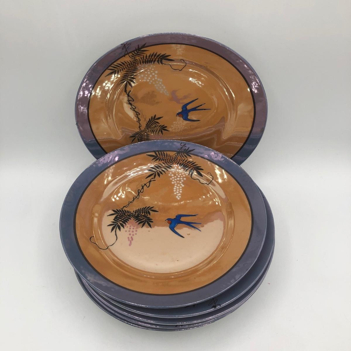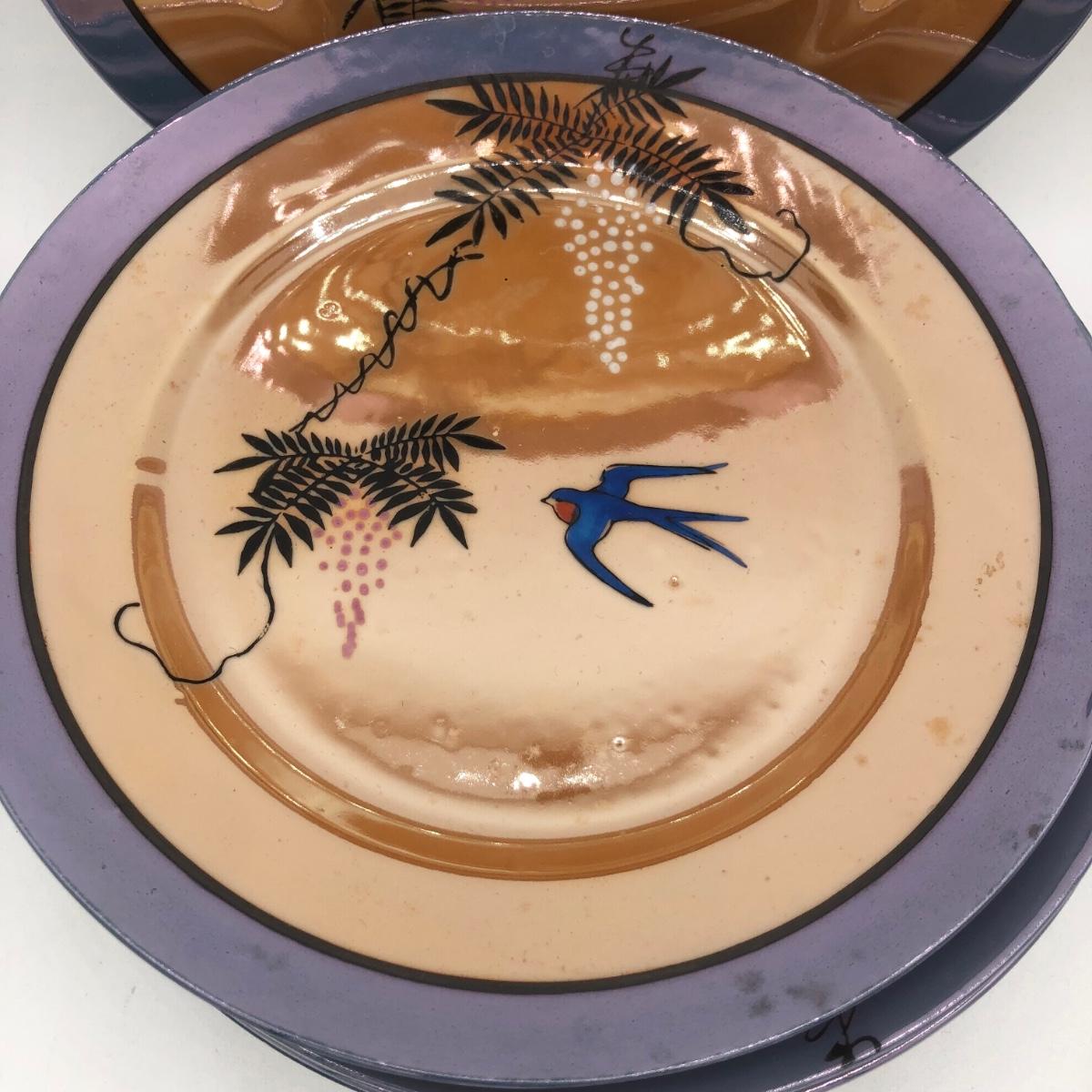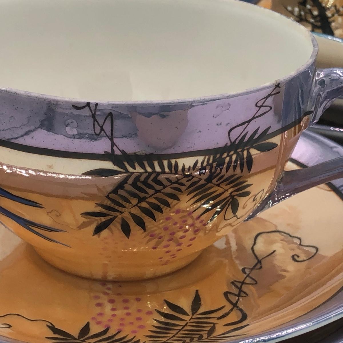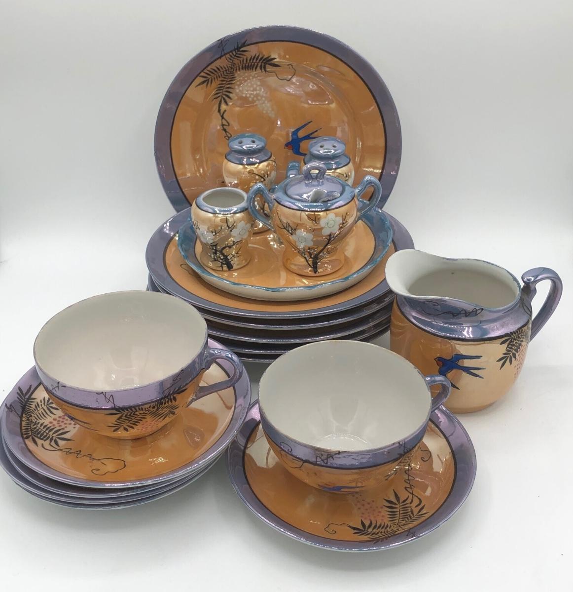 LOT 150: Gorgeous Orange & Blue Japanese Lustreware Tea Set w/ Condiment Tray