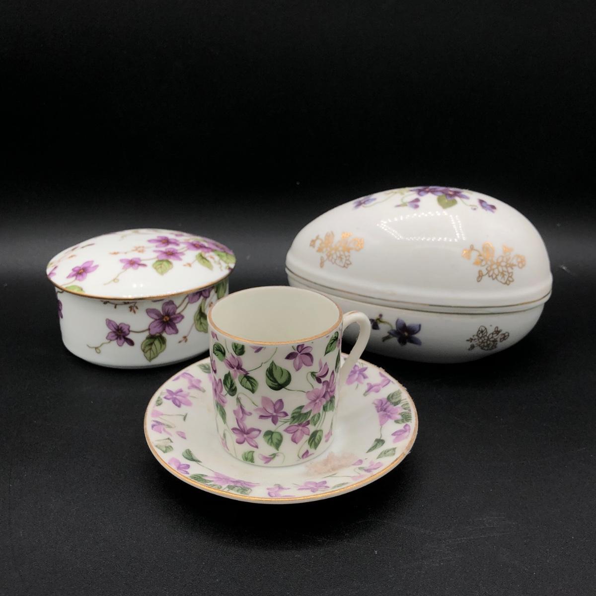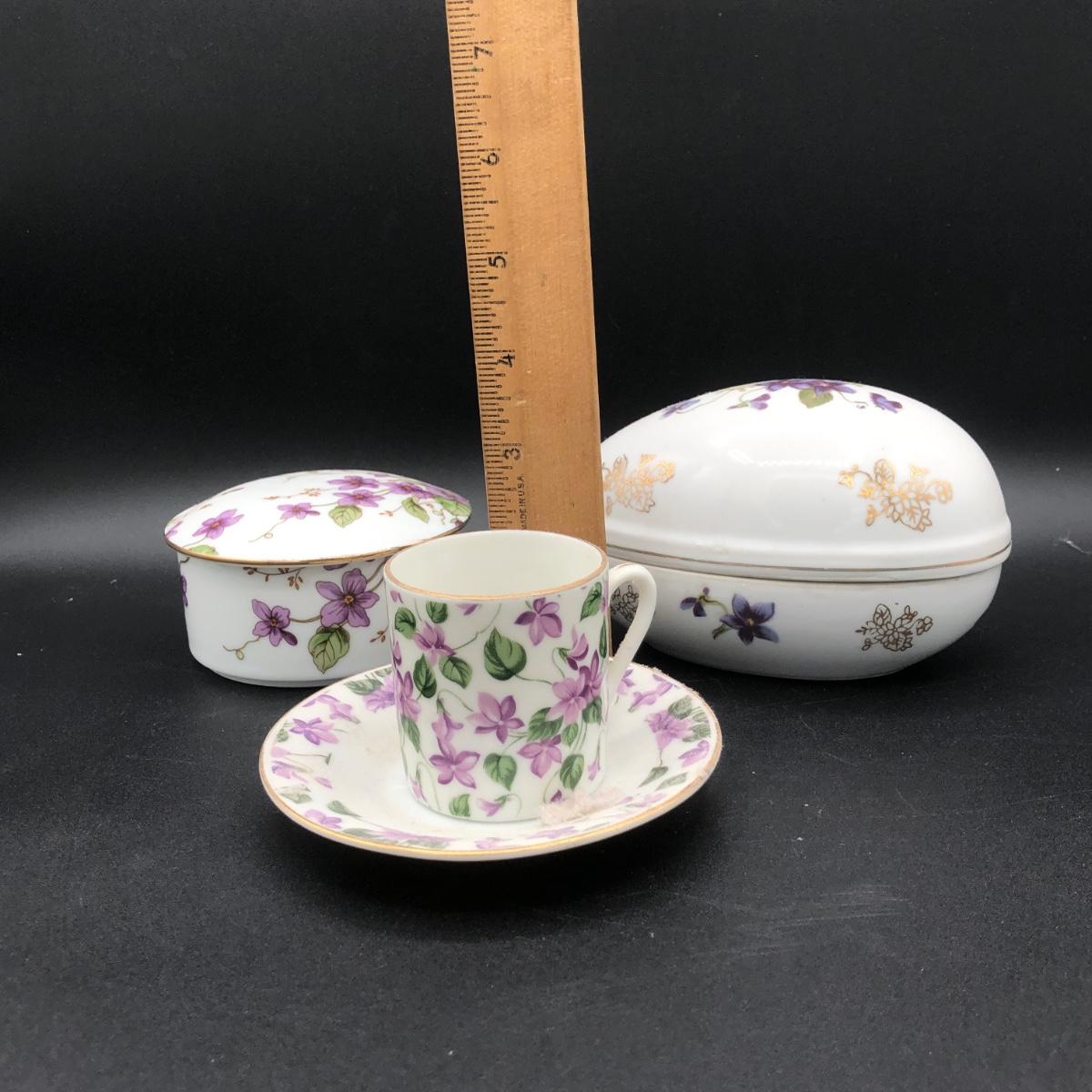 LOT 152: Vintage Violet China: Lefton Trinket Dishes w/ Teacup and Saucer