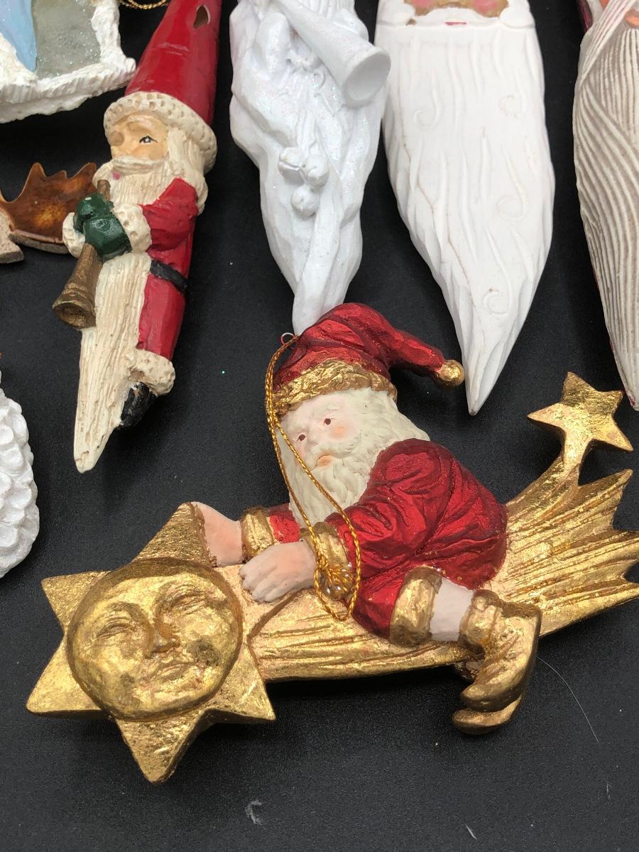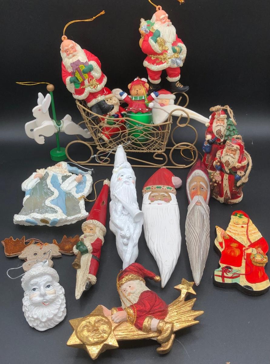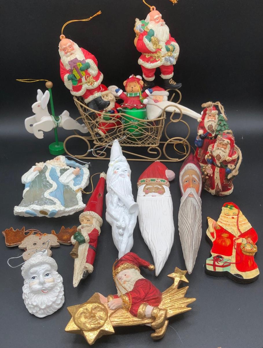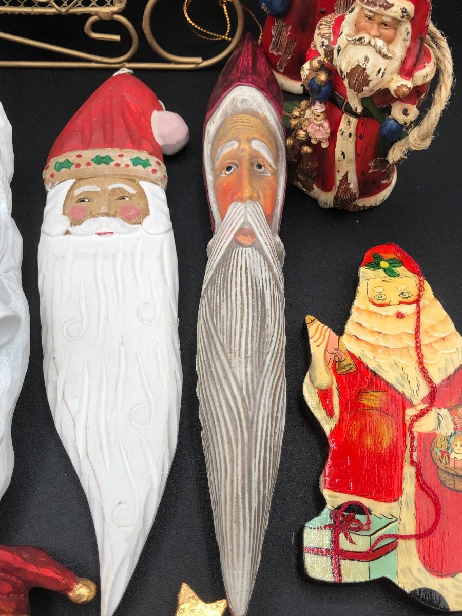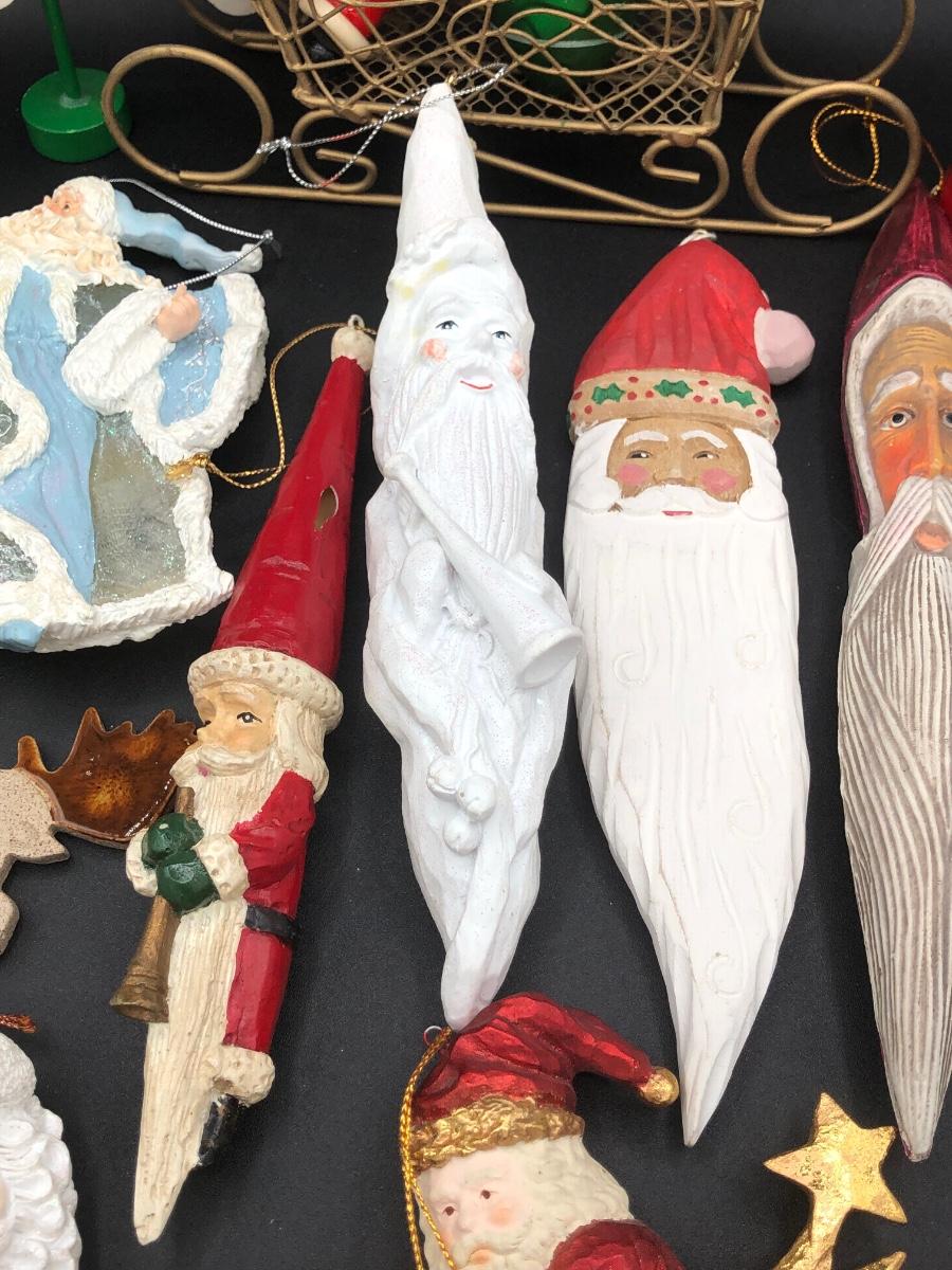 LOT 154: Eclectic Collection of Christmas Ornaments - Woodland Santas, Long Beard Santas & More