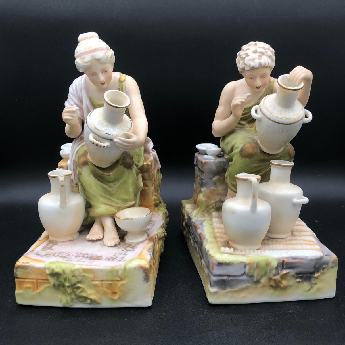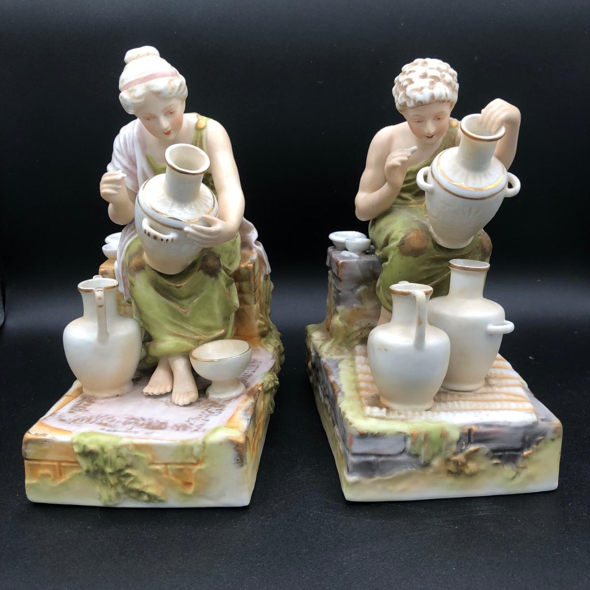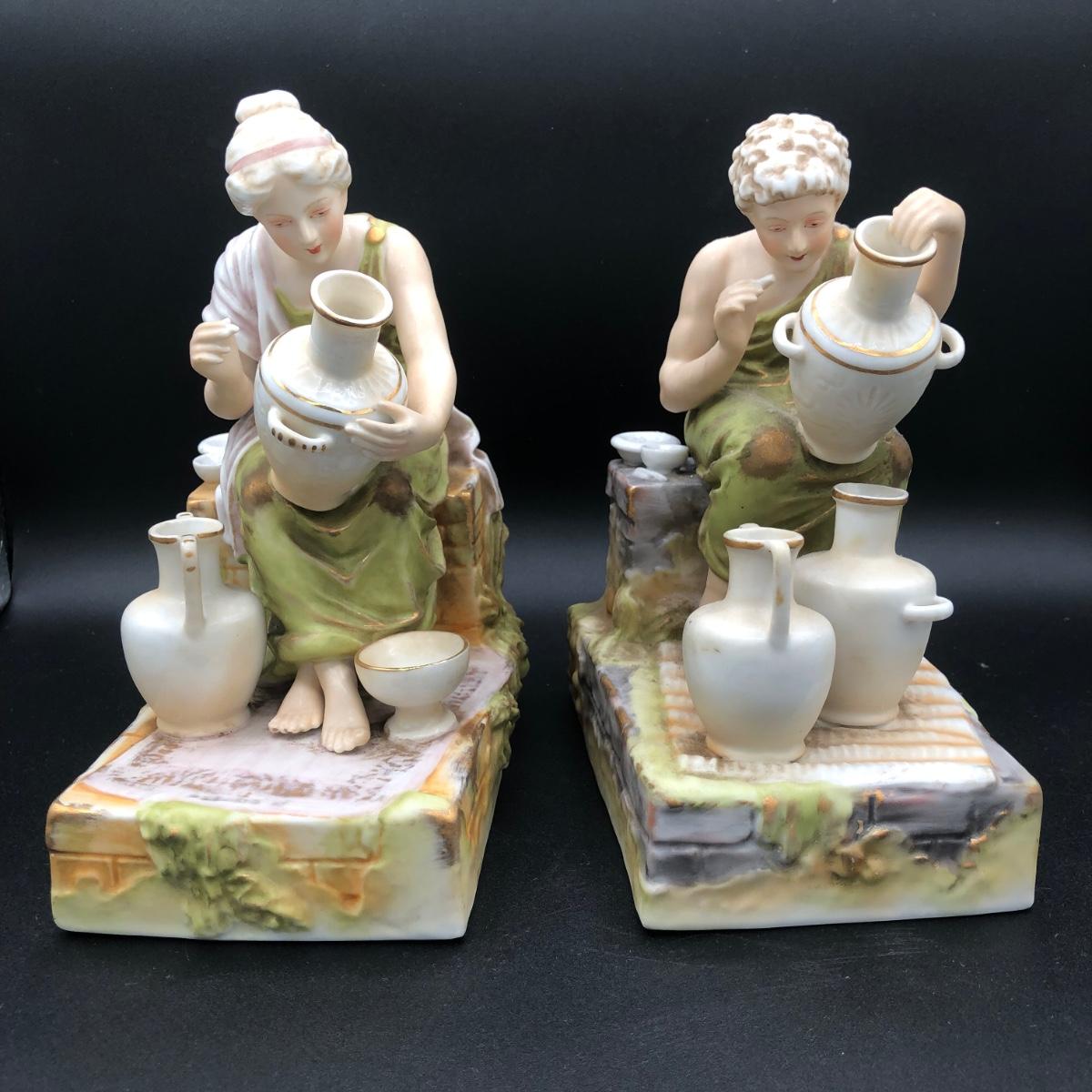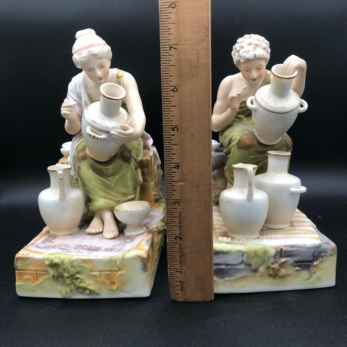 LOT 158: Vintage Bisque Porcelain Bookends Depicting People Painting Pottery