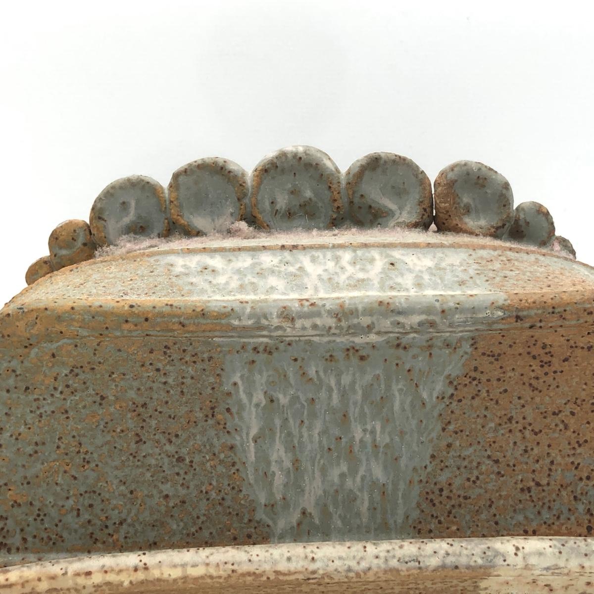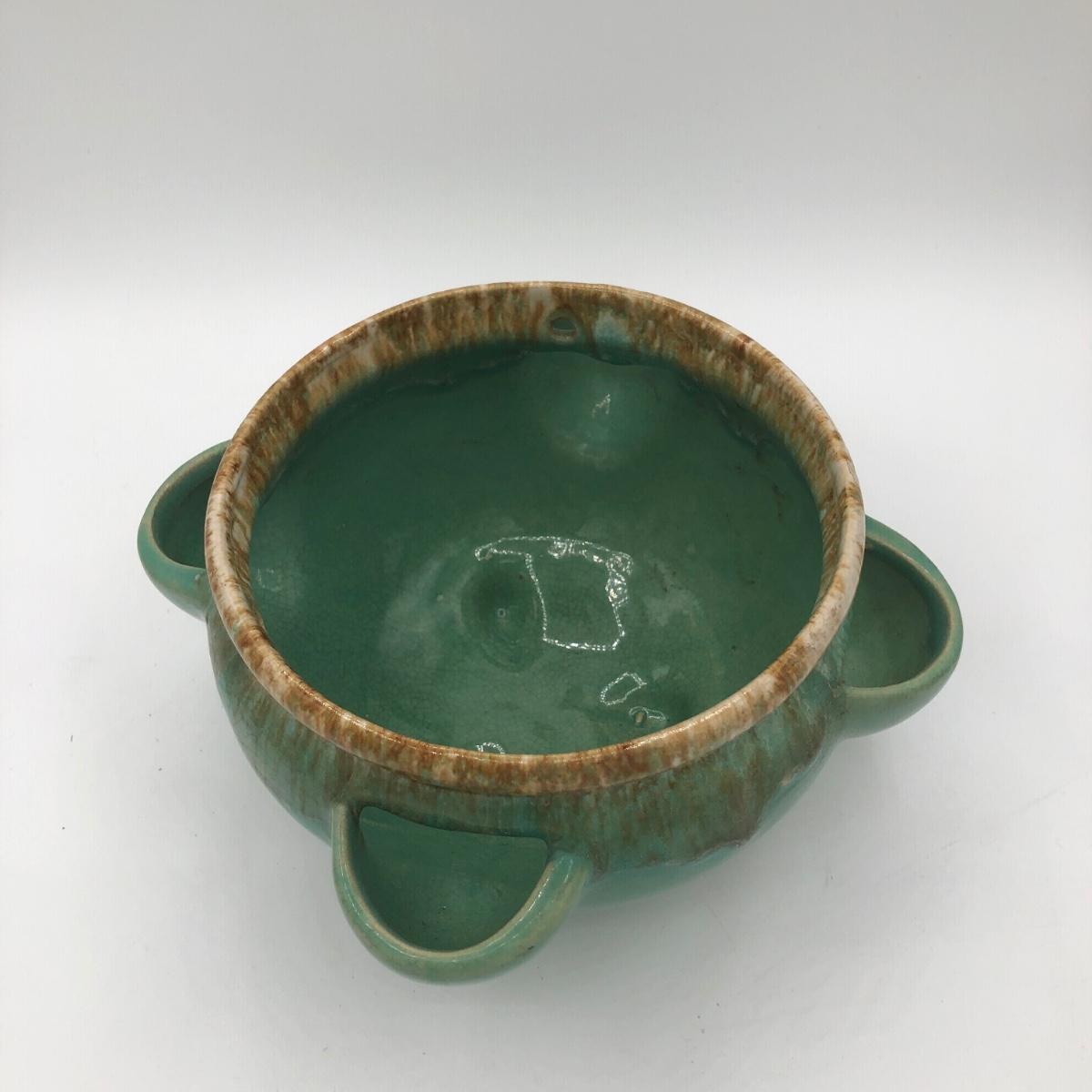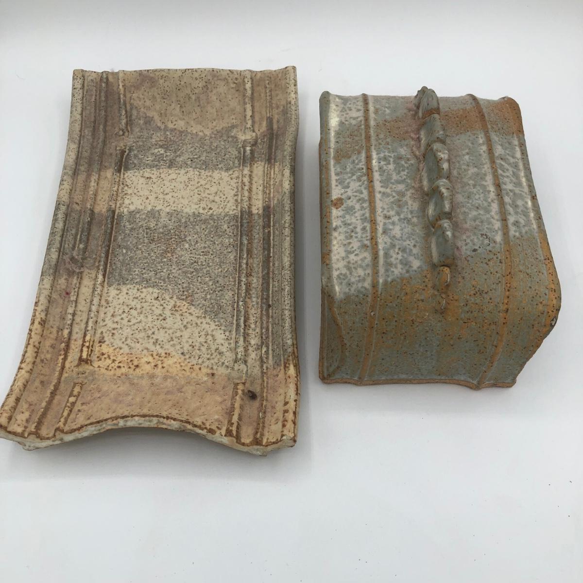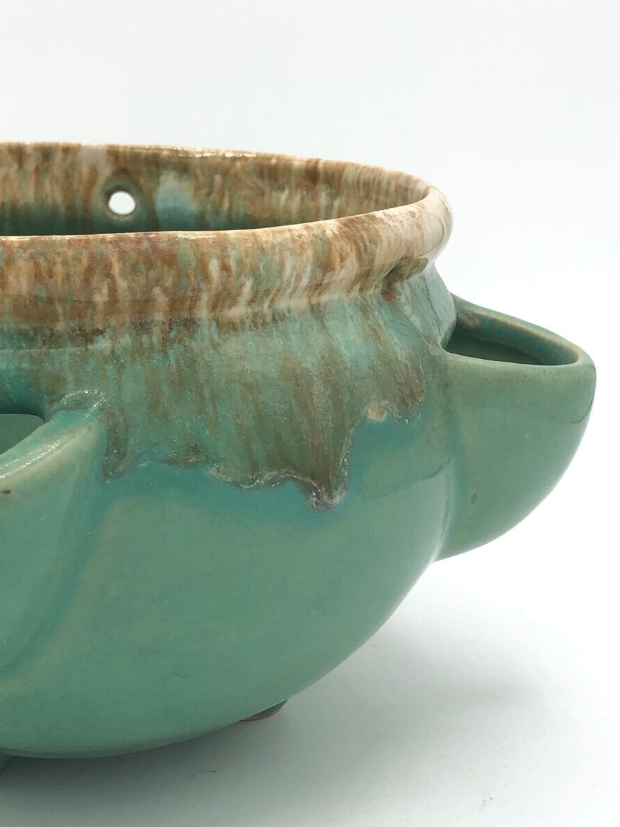 LOT 160: Sculpted Stoneware Pottery Lidded Dish w/ Two Teal Planters