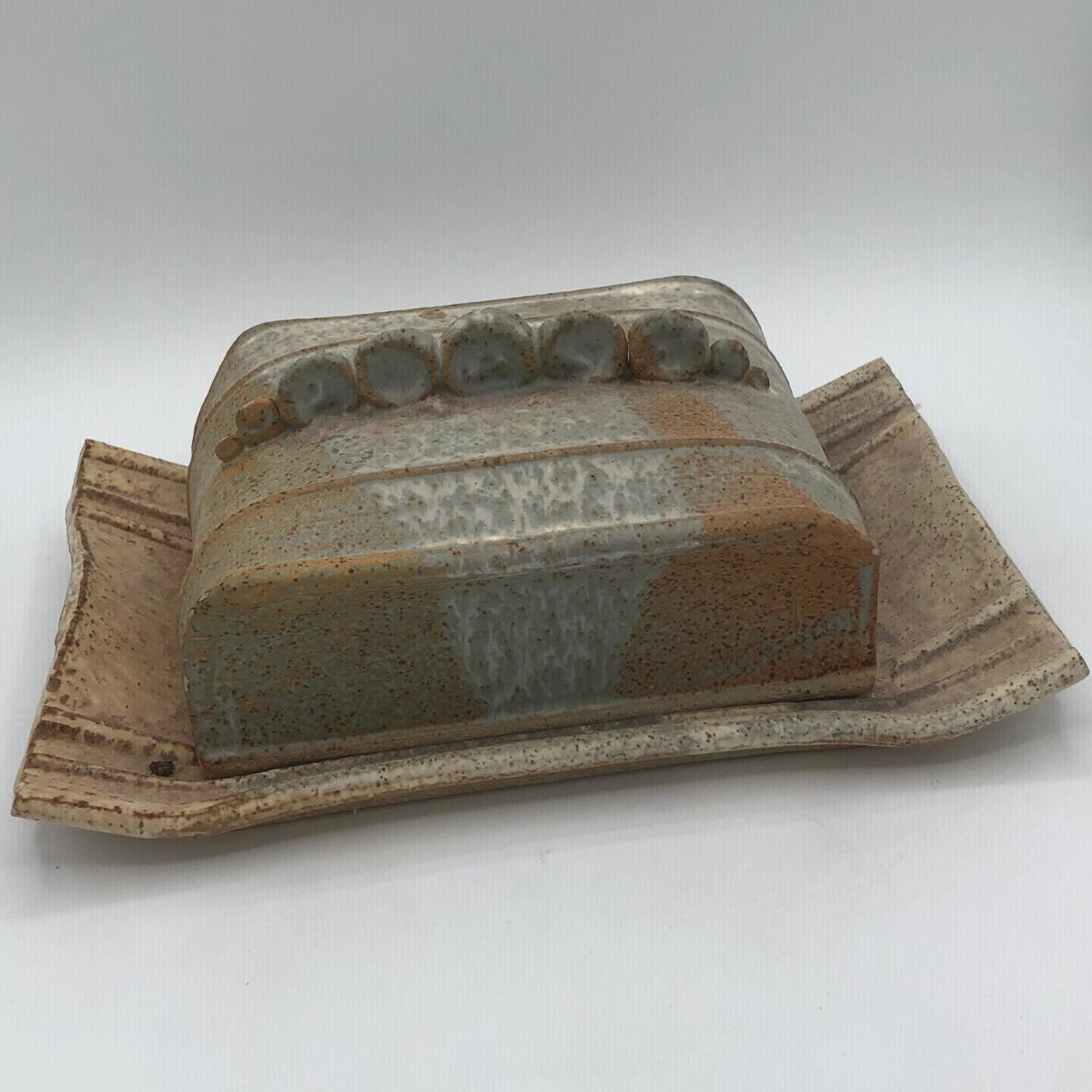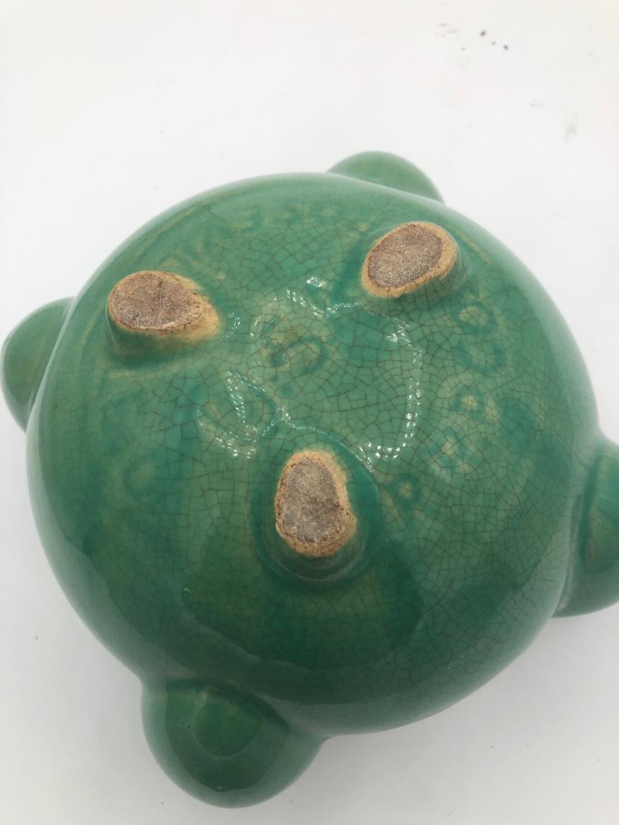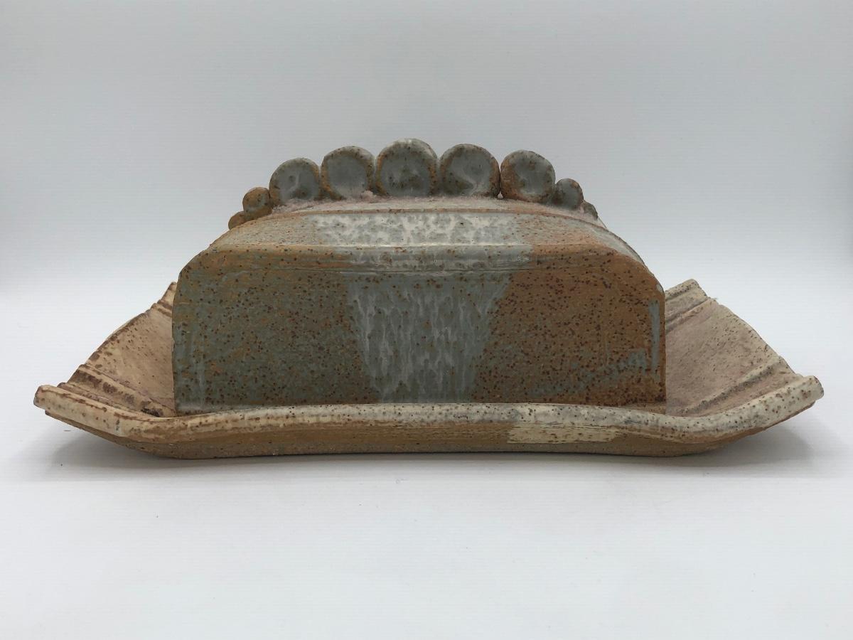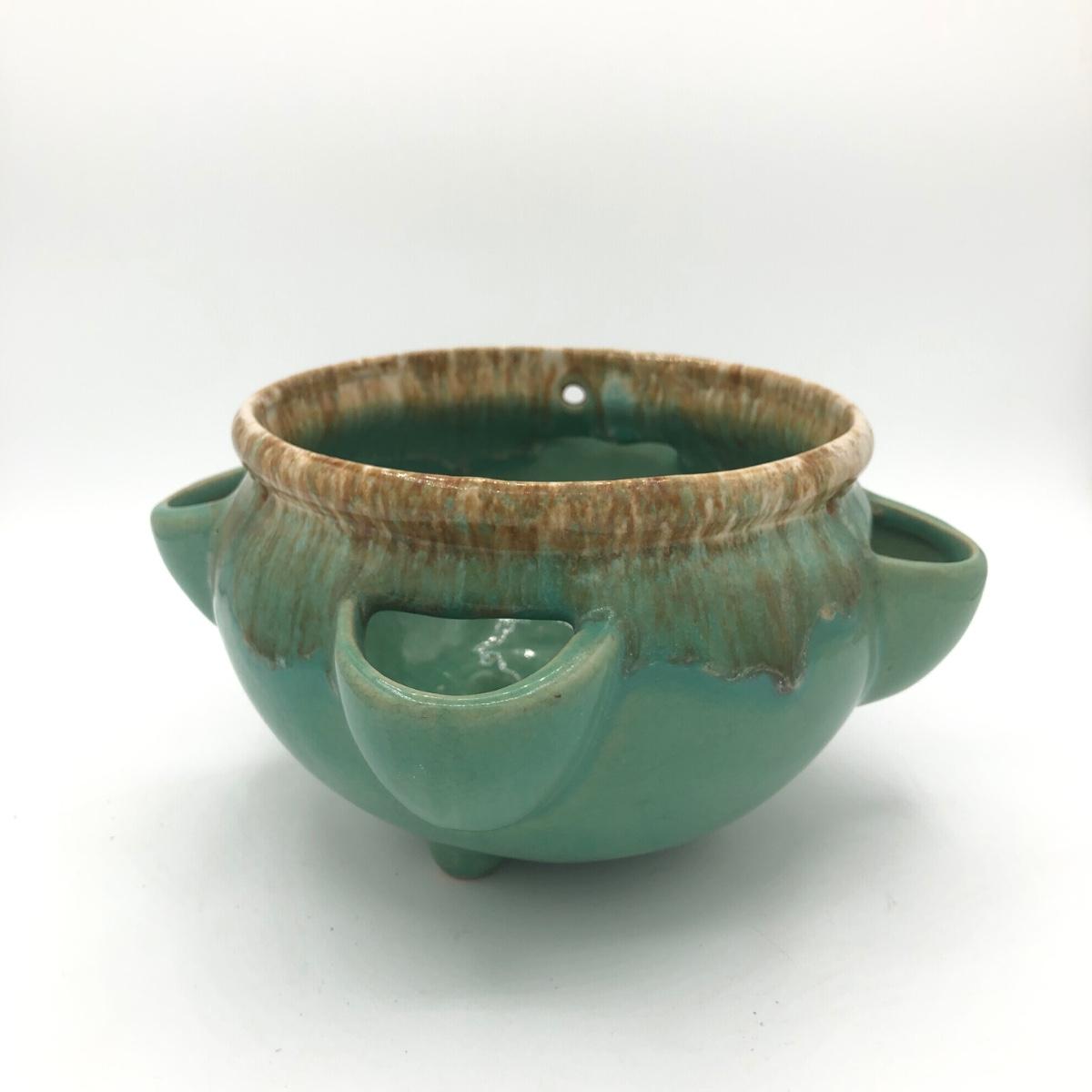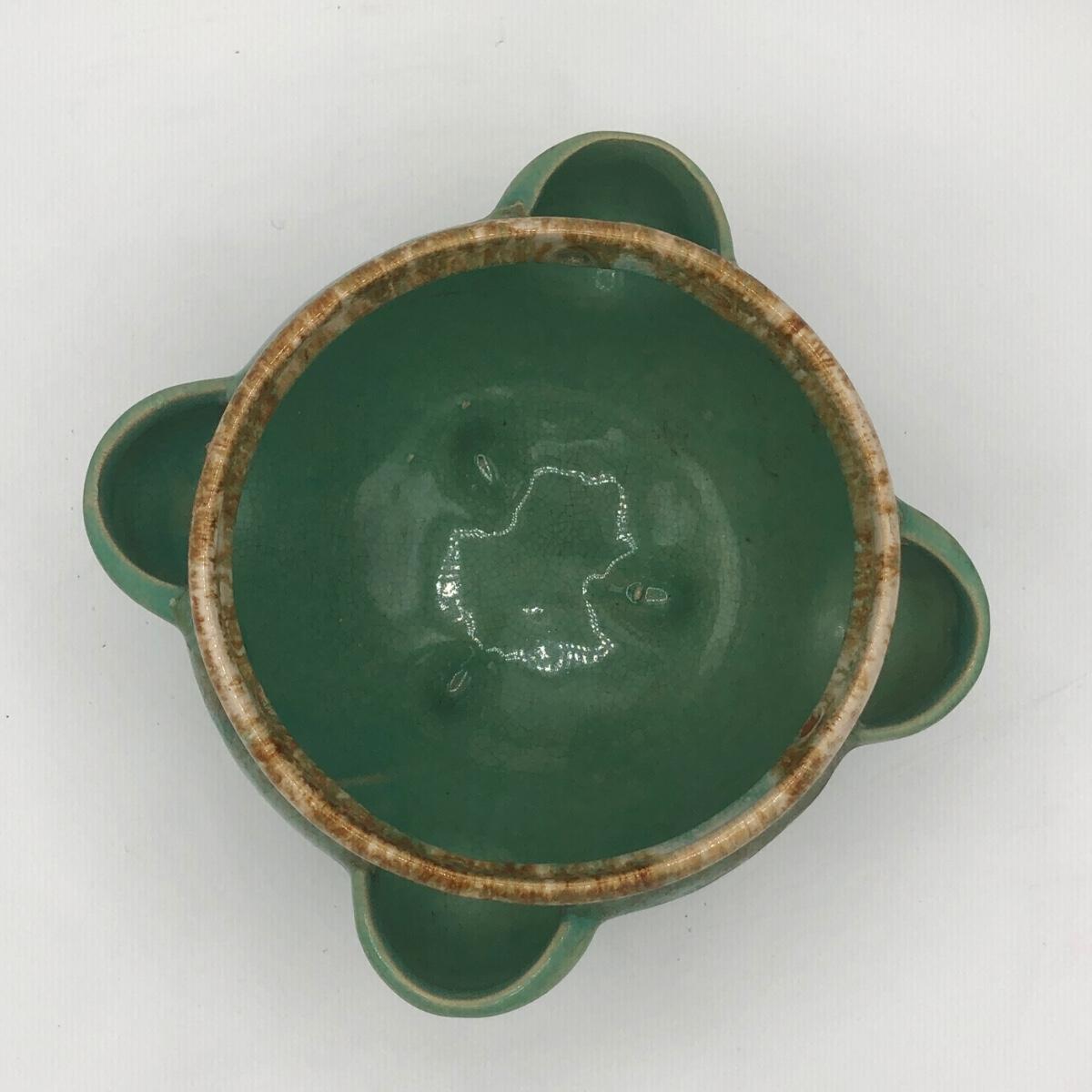 LOT 160: Sculpted Stoneware Pottery Lidded Dish w/ Two Teal Planters