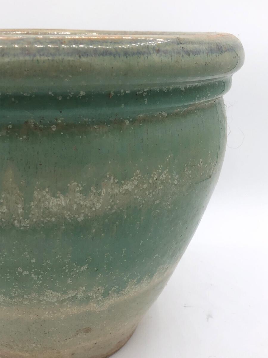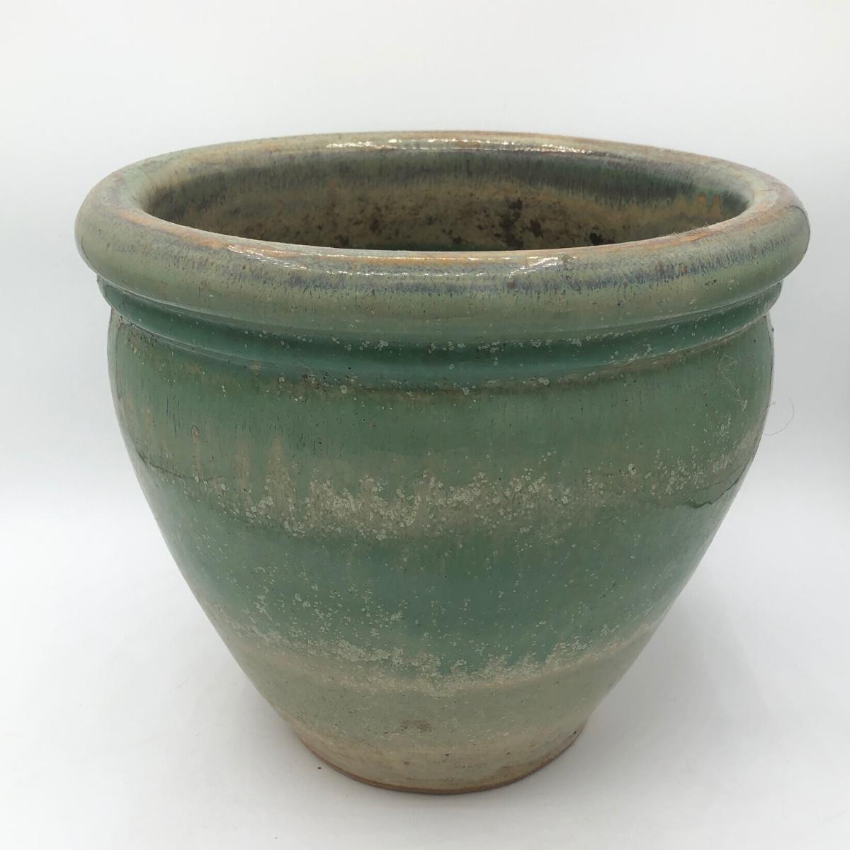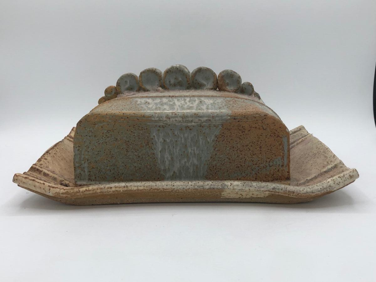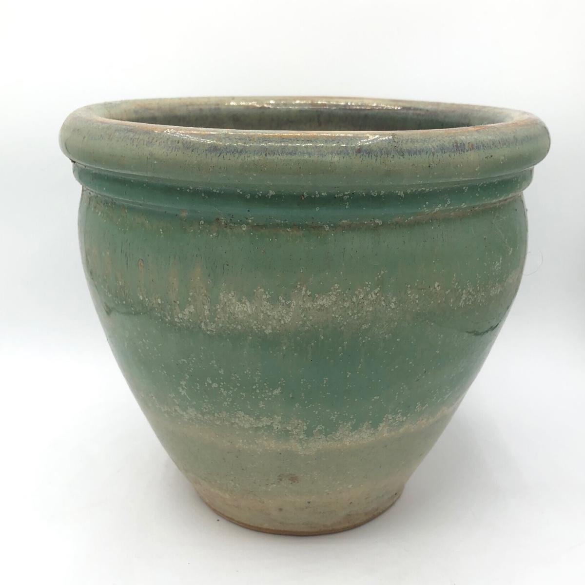 LOT 160: Sculpted Stoneware Pottery Lidded Dish w/ Two Teal Planters