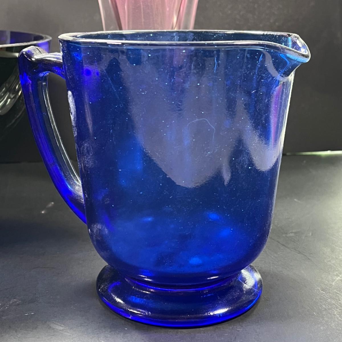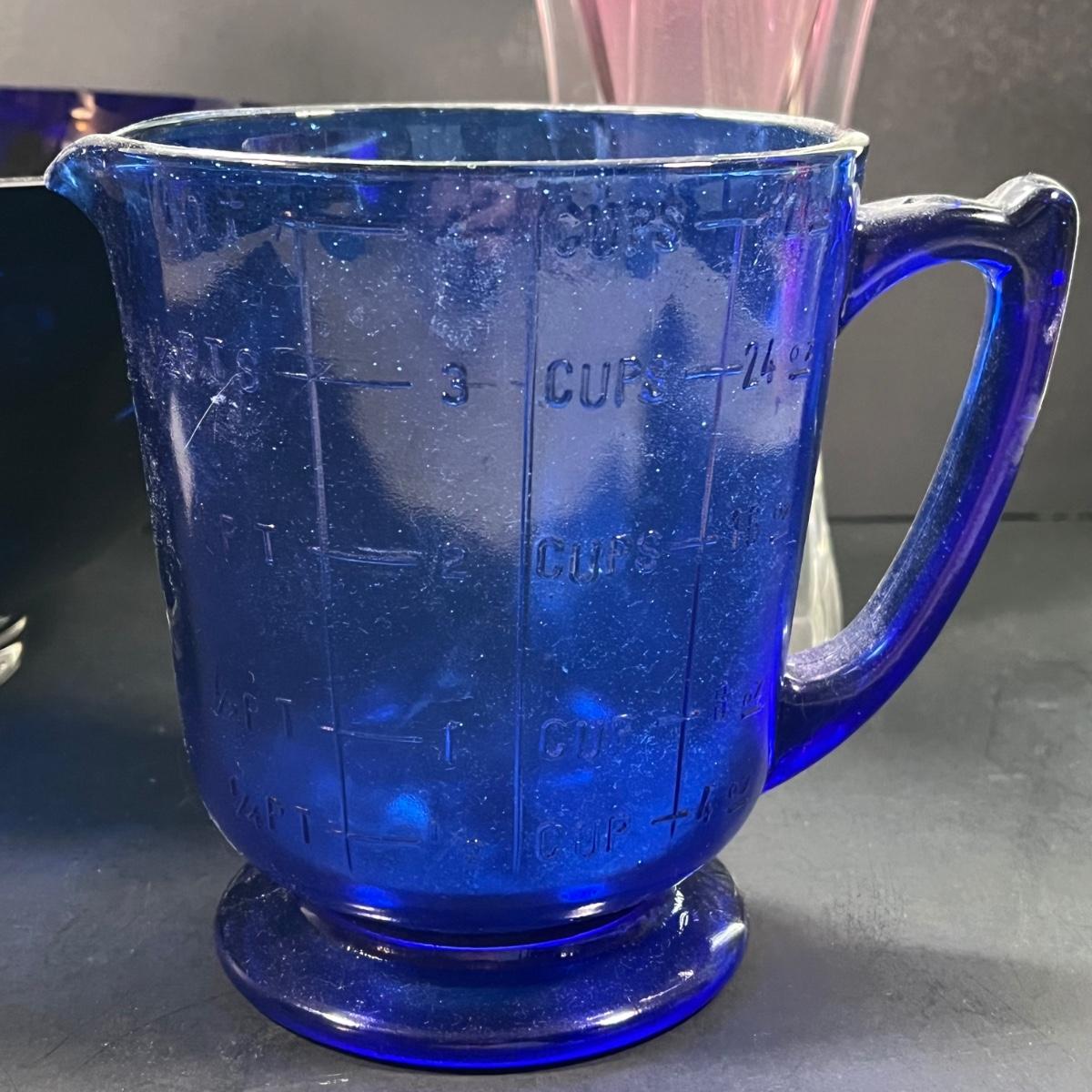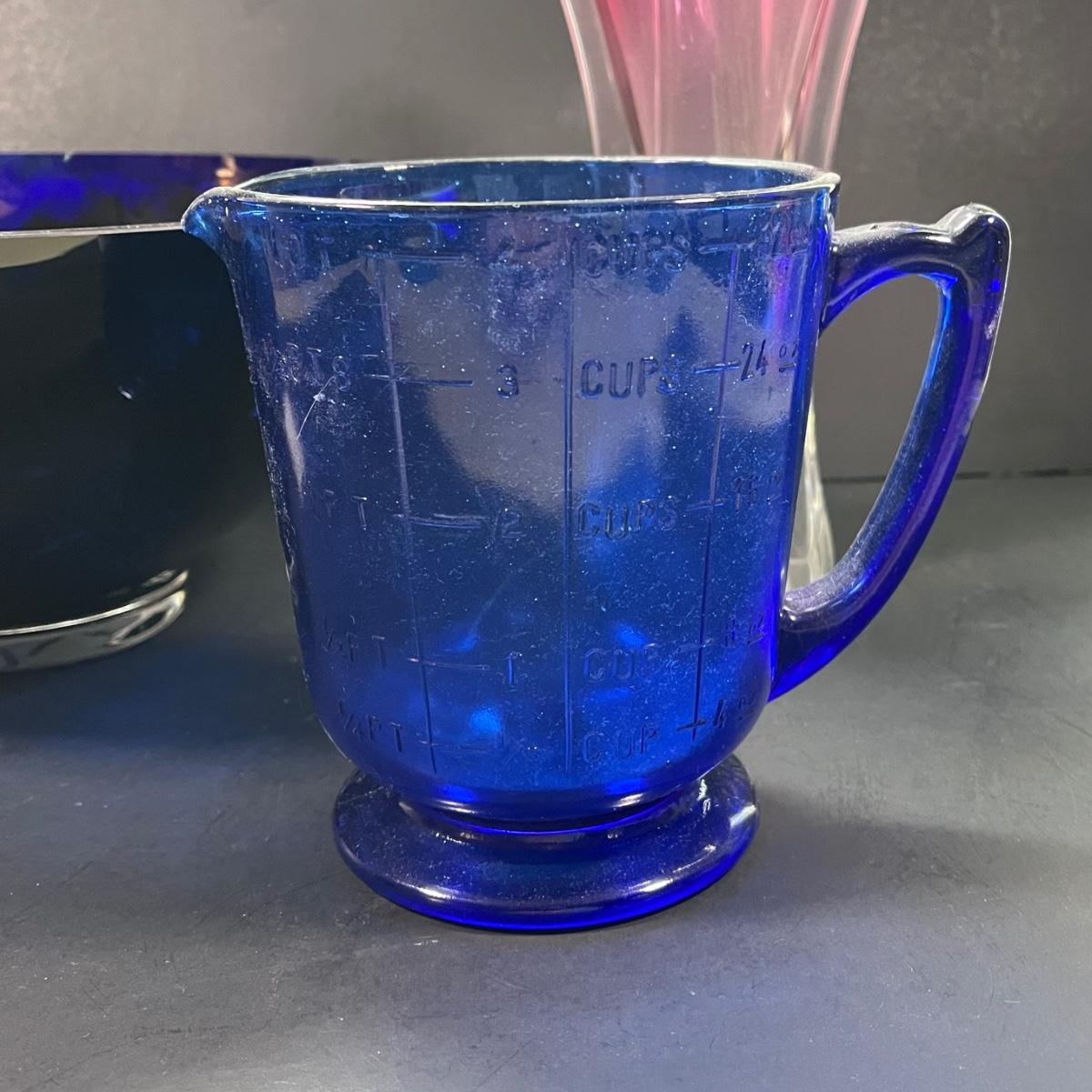 LOT 179: Glass Collection - Vase and Cobalt Blue Bowl and Measuring Cup