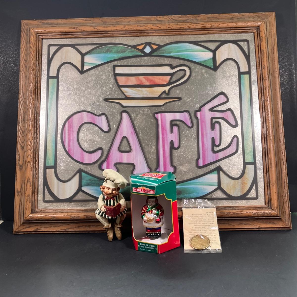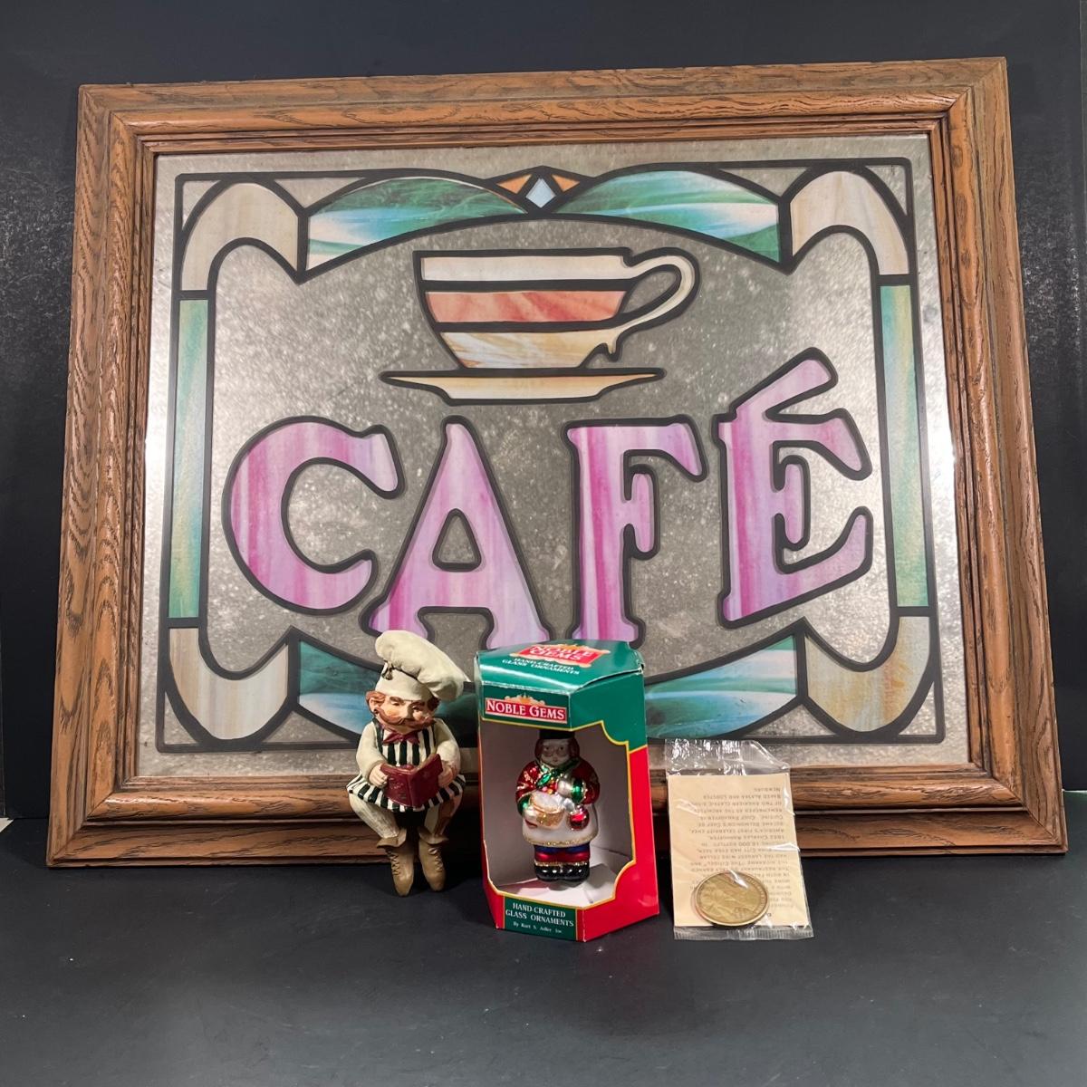 LOT 184: Cafe Mirror Sign and Chef Collection
