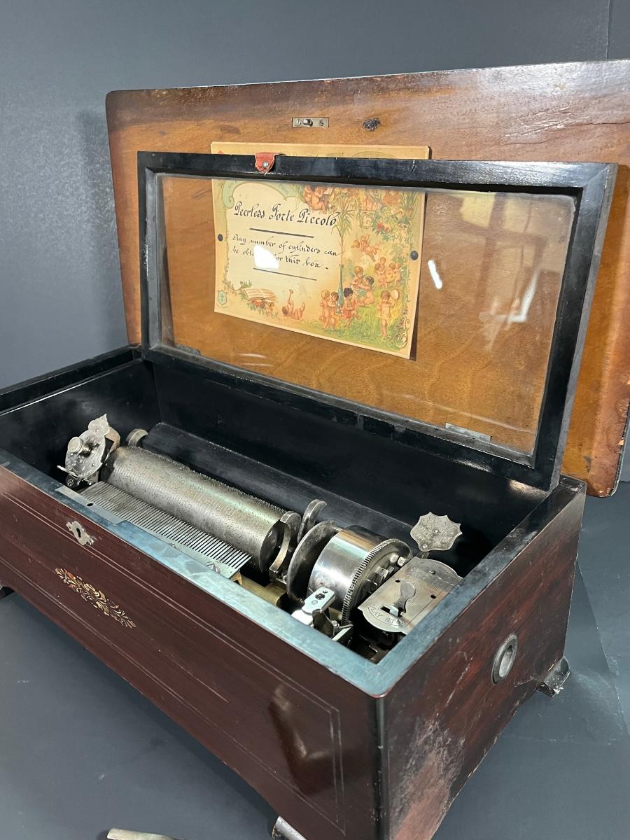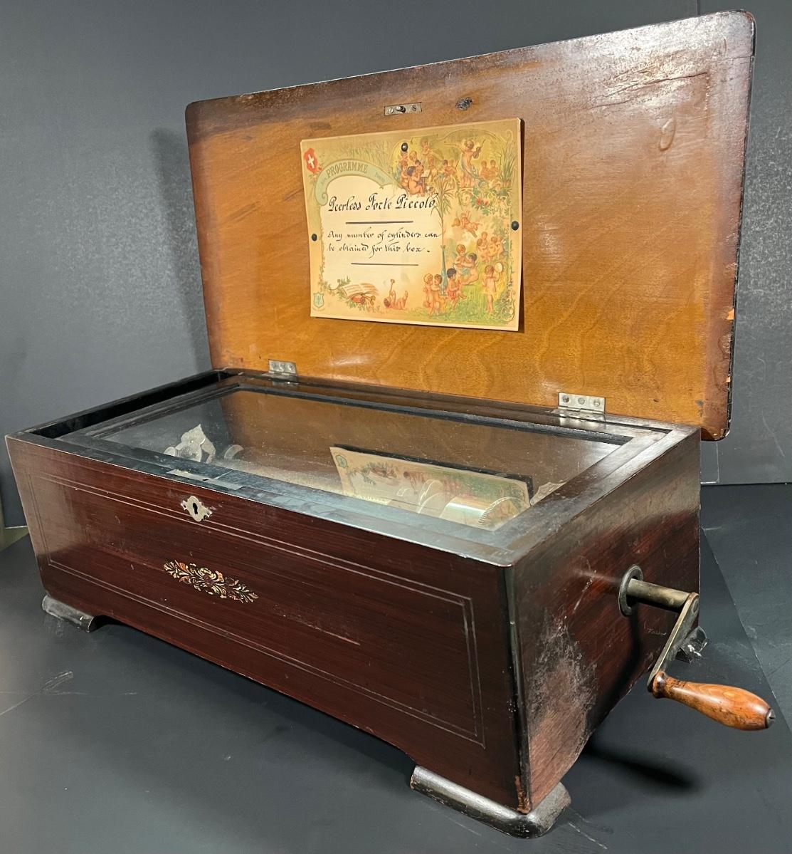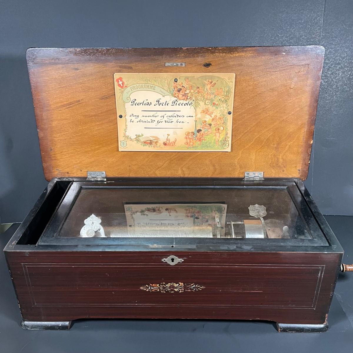 LOT 187: Antique 19th Century Swiss-Made Jacot Music Box - Peerless Forte Piccolo - w/ Additional Cylinders