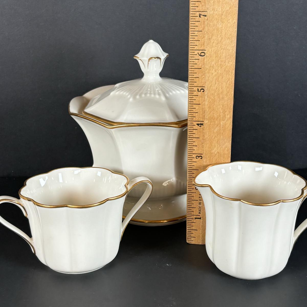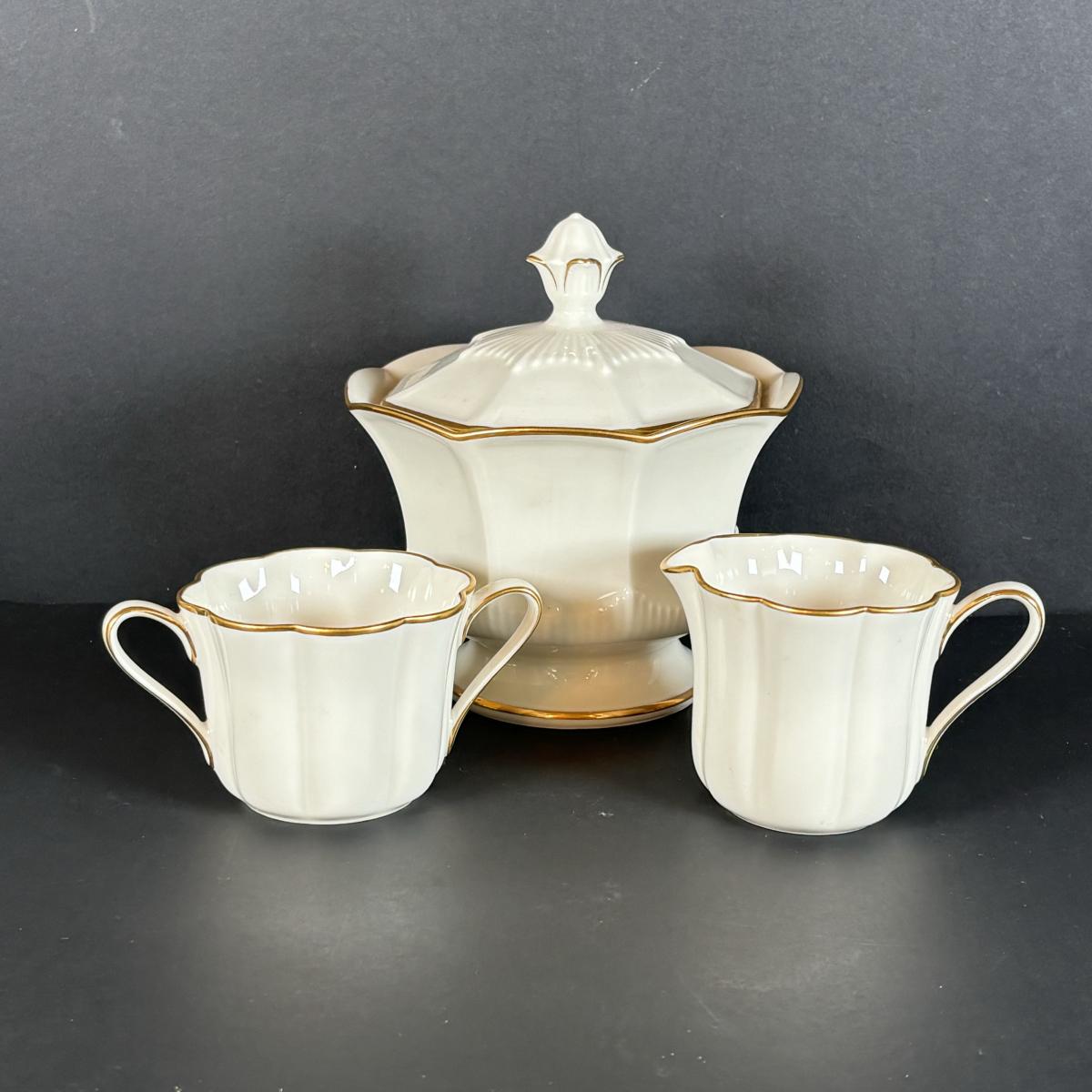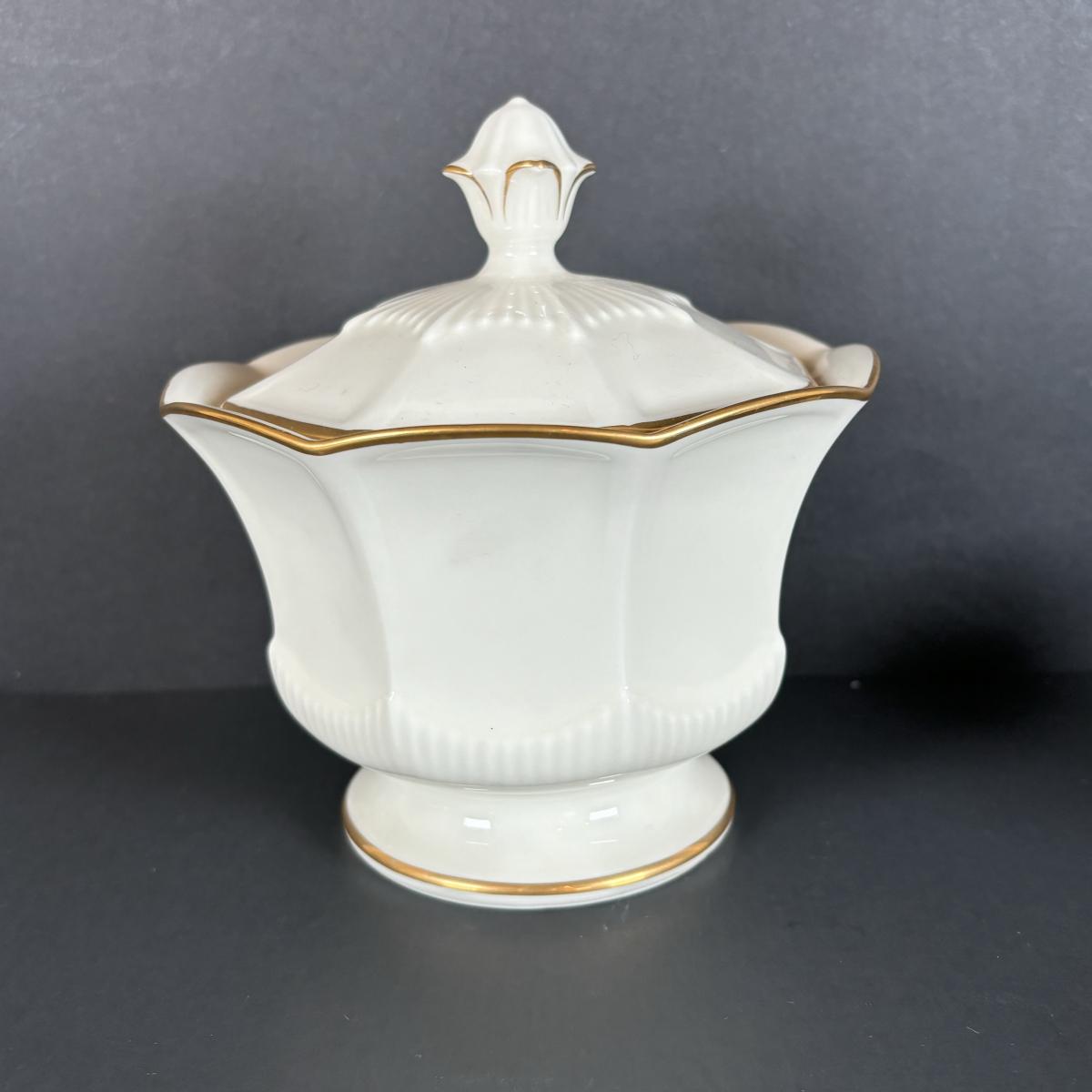 LOT 3: Vintage Fostoria Coin Glass Compote, Nut Bow & Serving Bowl, Noritake Sugar Bowl w/Creamer, Covered Bowl & More