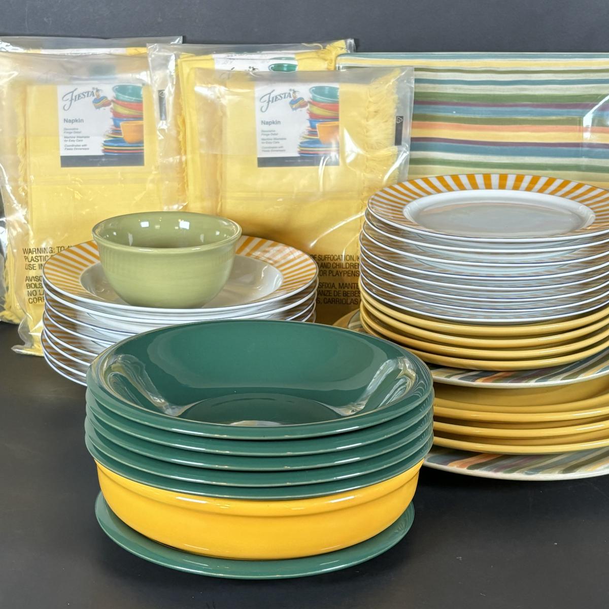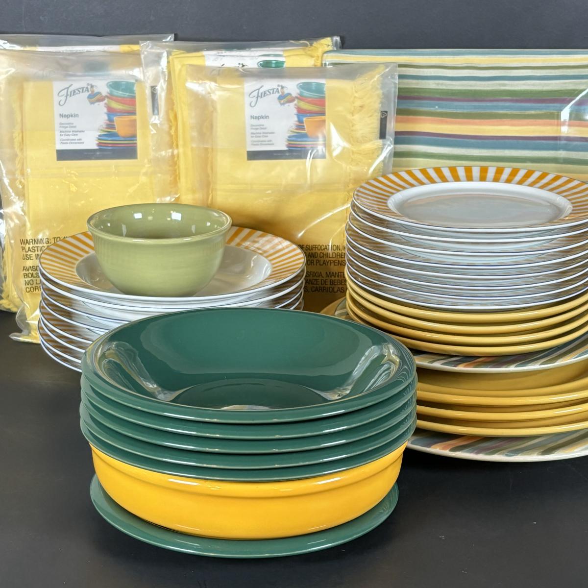 LOT 13: Plates & More: Fiesta Napkins (NIP), Tabletop Gallery Hand Painted, Lynns Stoneware. Ikea, Stoneware, Waechtersbach