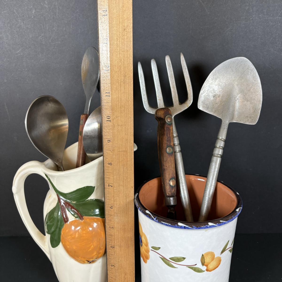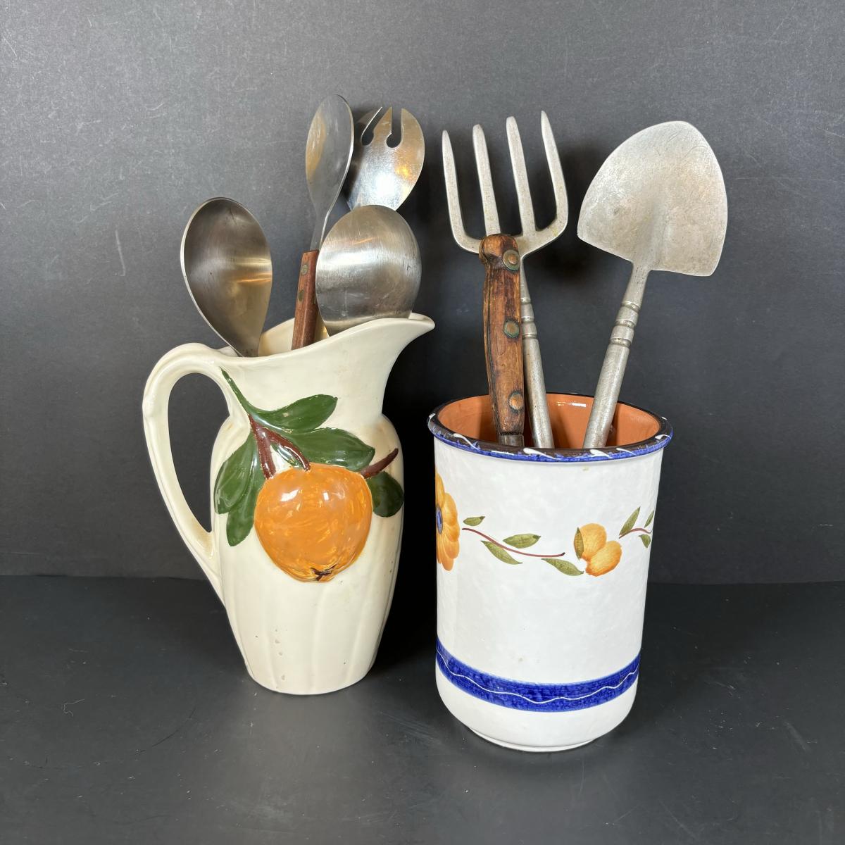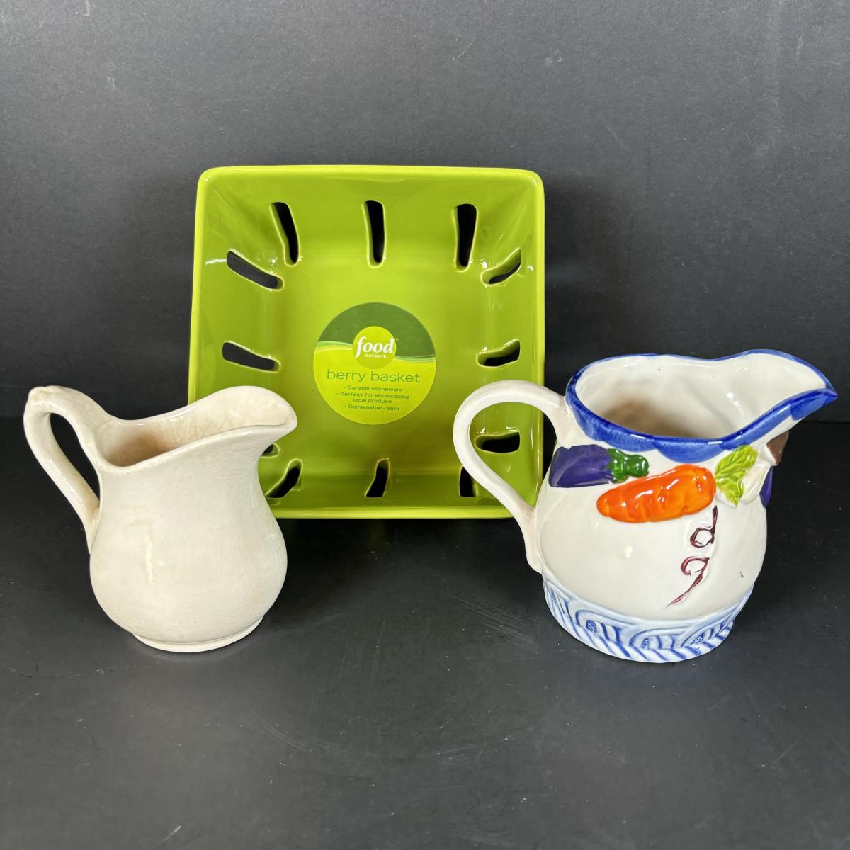 LOT 15: Willaims-Sonoma Heirloom 4pc. Bowl Set, Serving Utensils, Food Network Ceramic Berry Basket, Holland Mold Ceramic Lettuce Set, & More