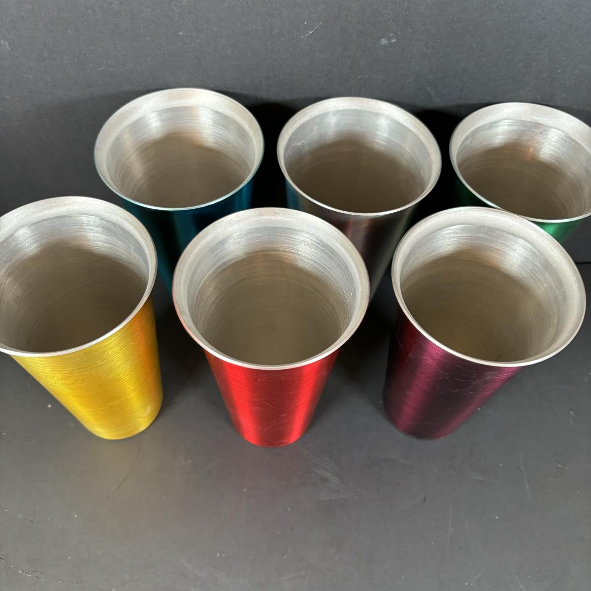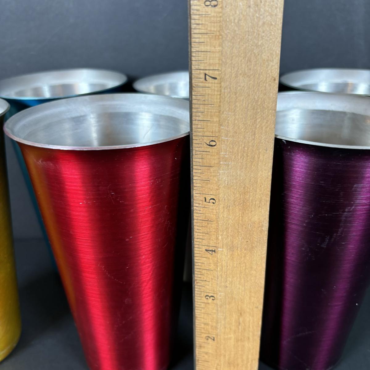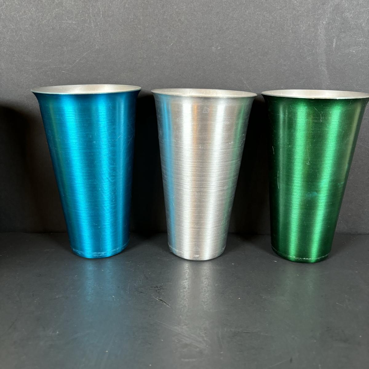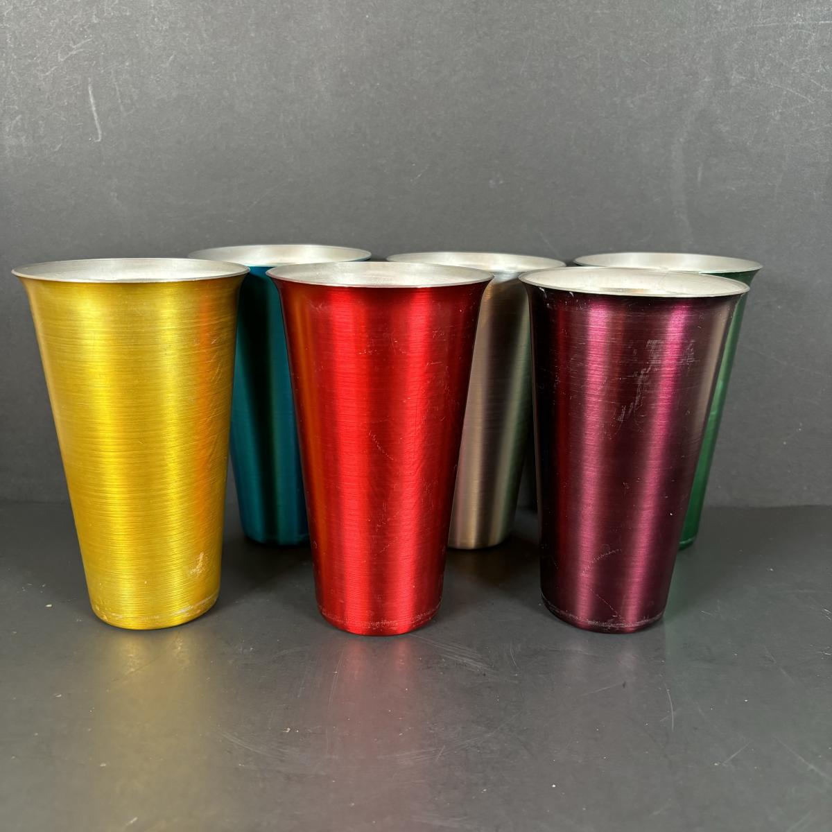 LOT 16: Vintage Candy Stripe Frosted Glasses, Vintage Limoges, Buffalo China, Vintage Kitchen Utensils, Retro Aluminum Tumblers, Wear-Ever Cookie Gun, Rachel Ray Retro Mixing Bowl