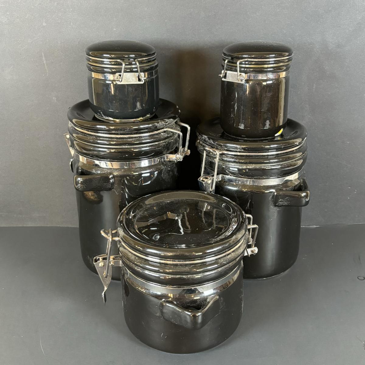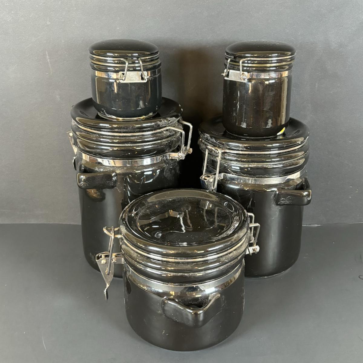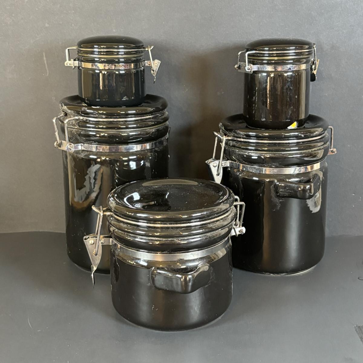 LOT 17: Chef's Choice Knife Sharpener, Chicago Cutlery Knives, Black Ceramic Canisters