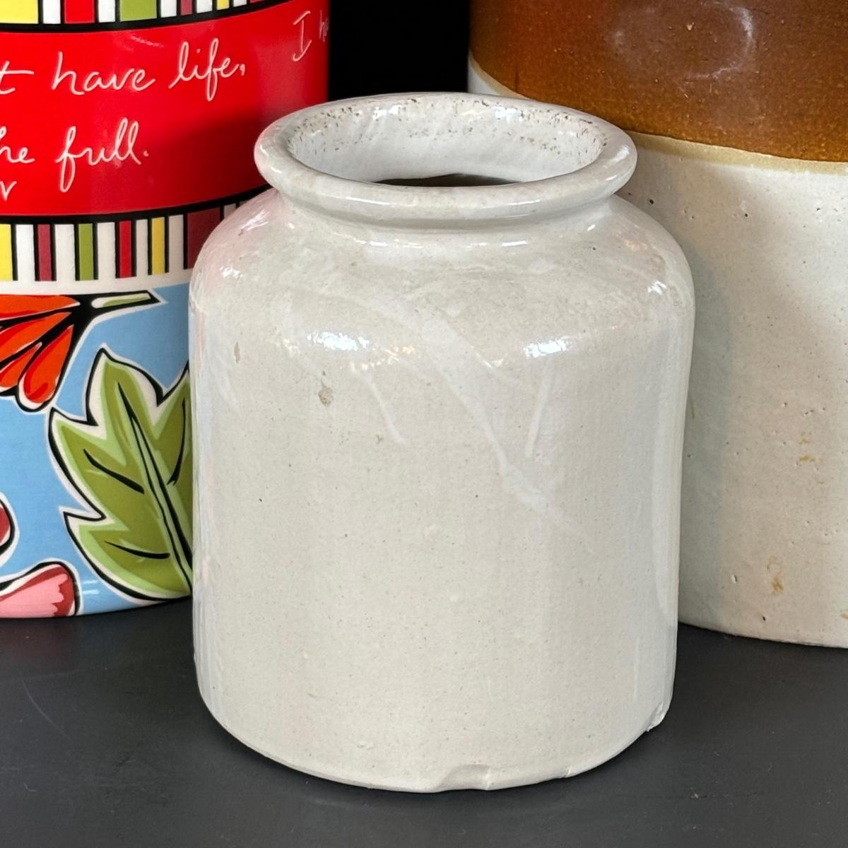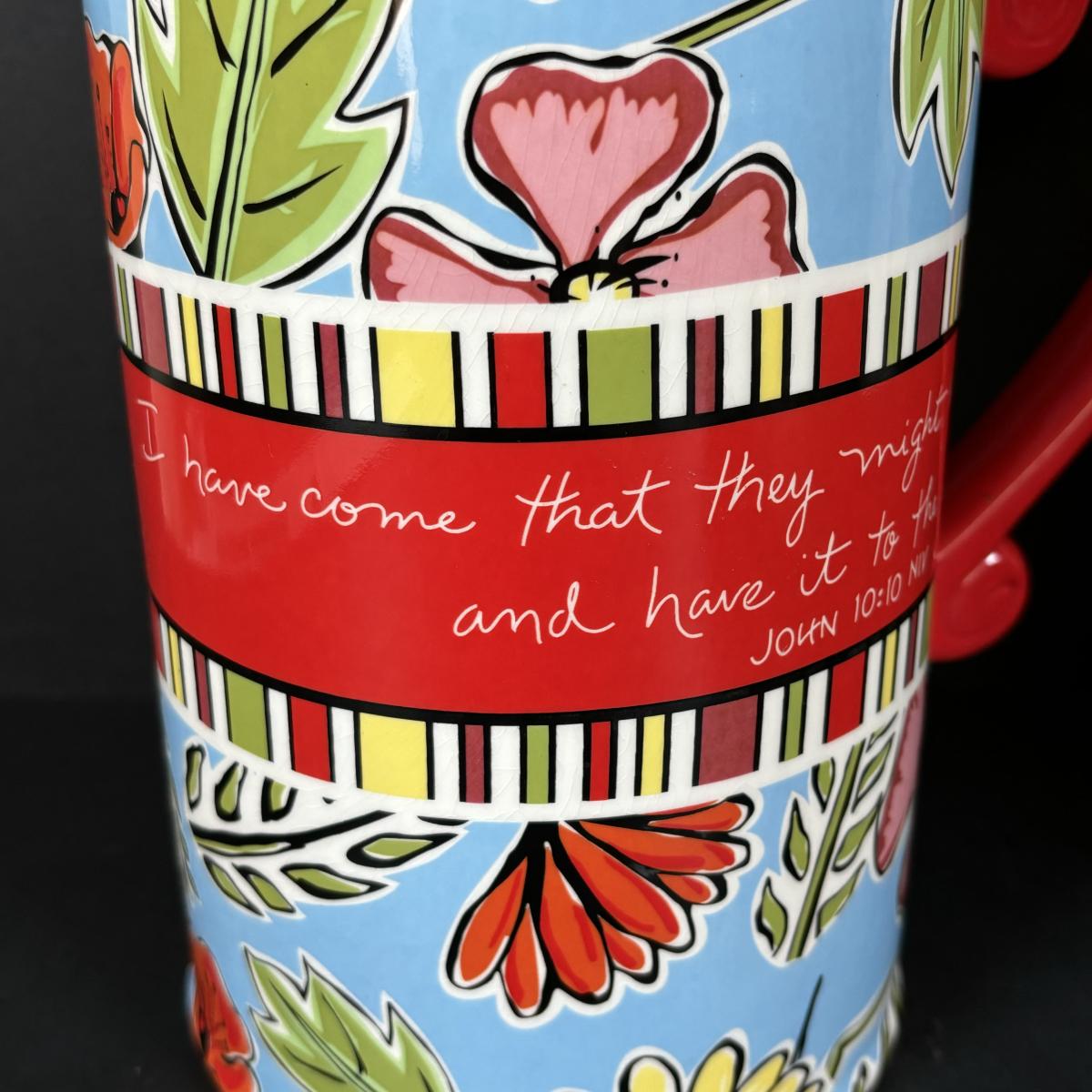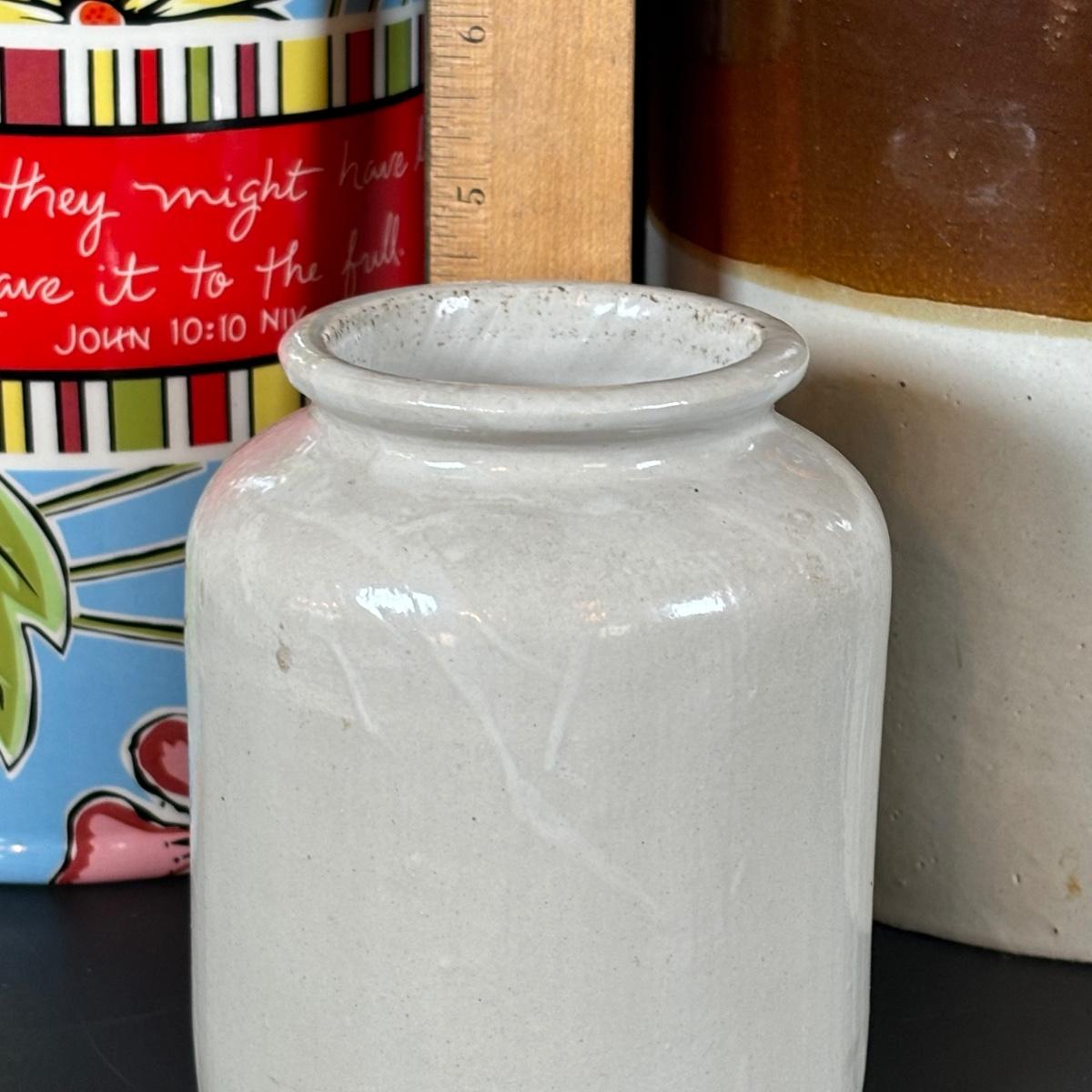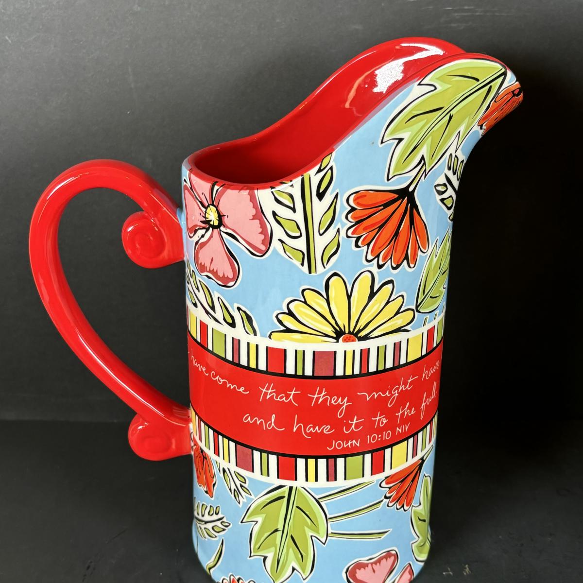 LOT 22: Stoneware Crock w/Wooden Utensils, Inspirational Dayspring 10" Pitcher & Unmarked Stoneware Jar