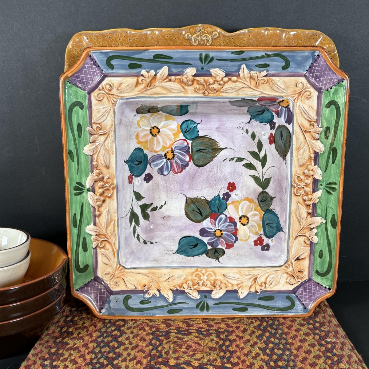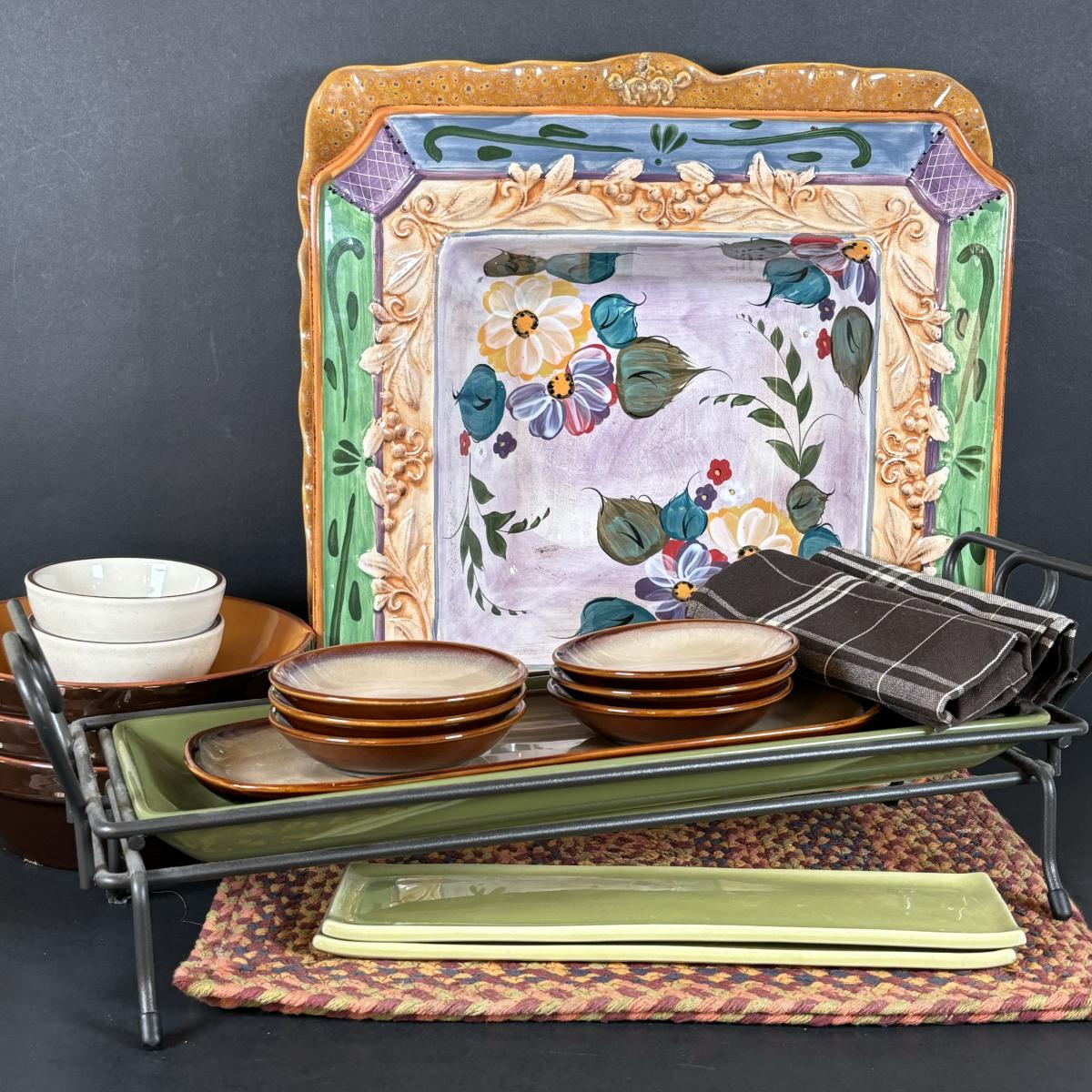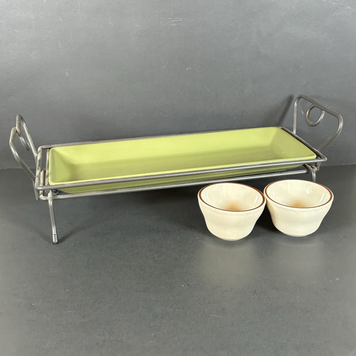 LOT 24: Pampered Chef Simple Additions Green Rectangular Tray 16”x 6” w/Stand & More