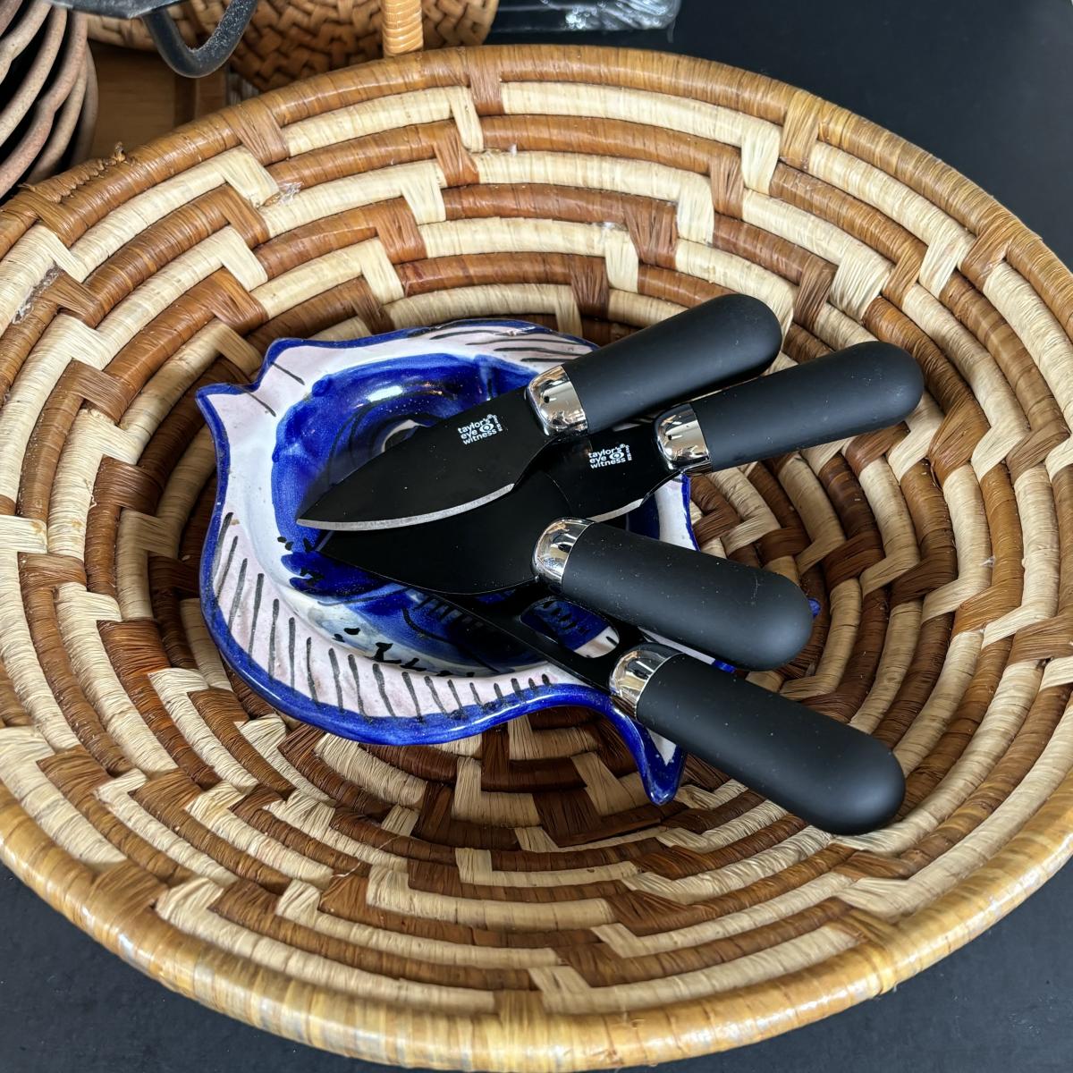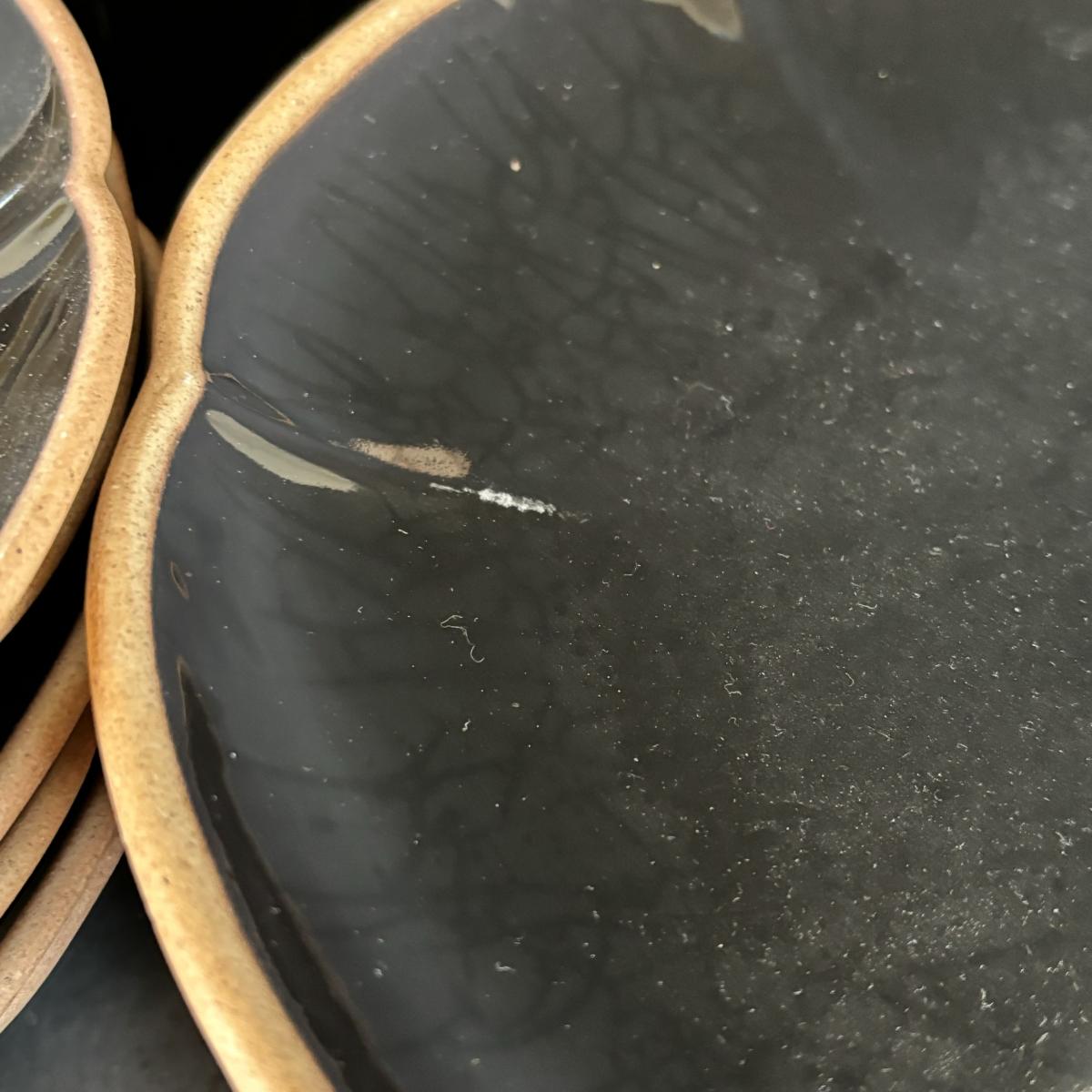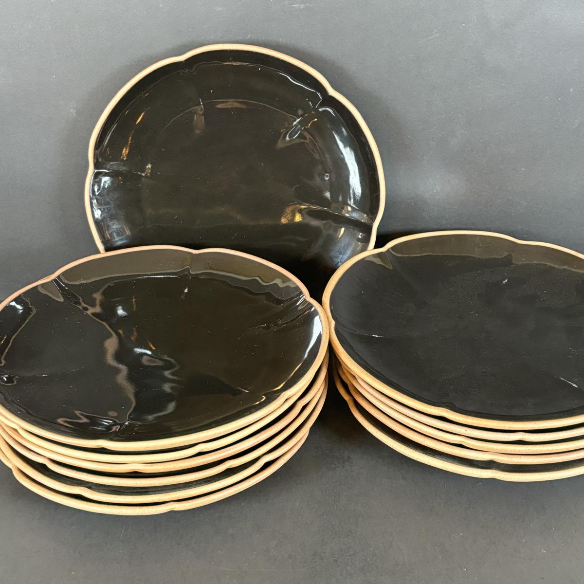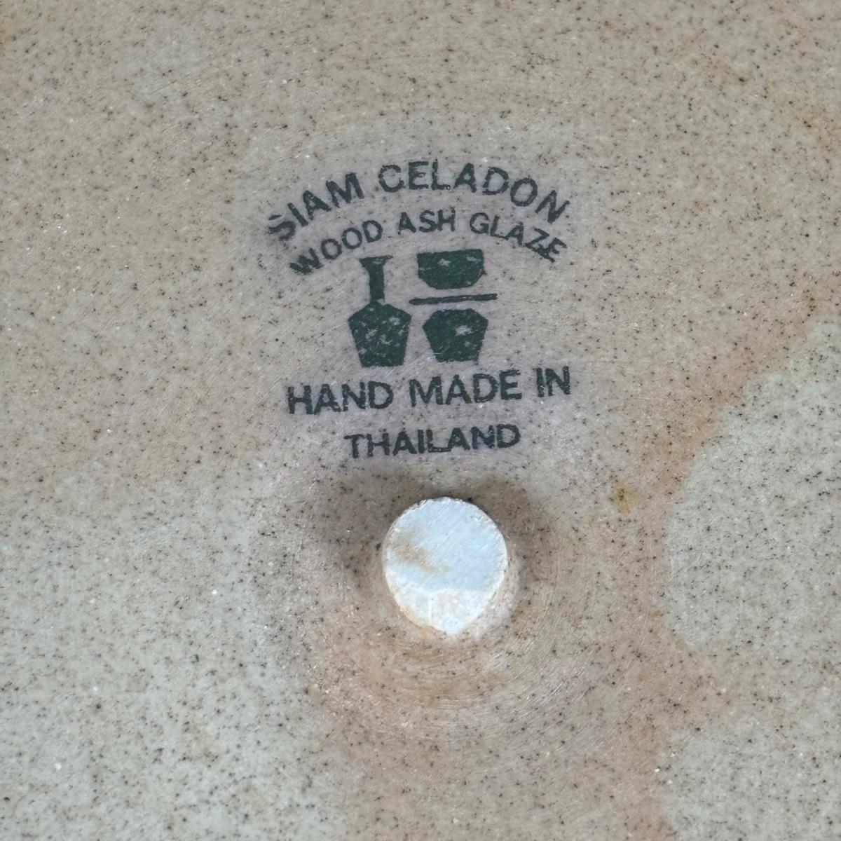LOT 25: Vintage Siam Celadon Wood Ash Glaze Plates, NIP Cutting Board, Black Metal Candle Holder & More