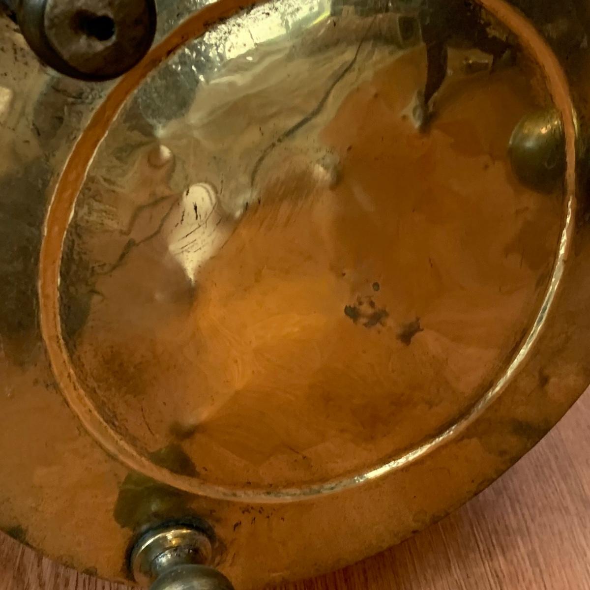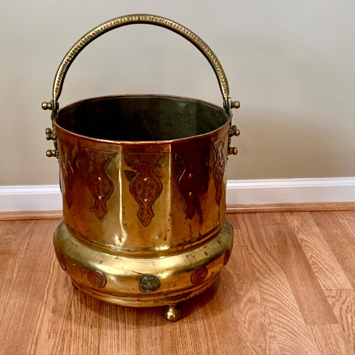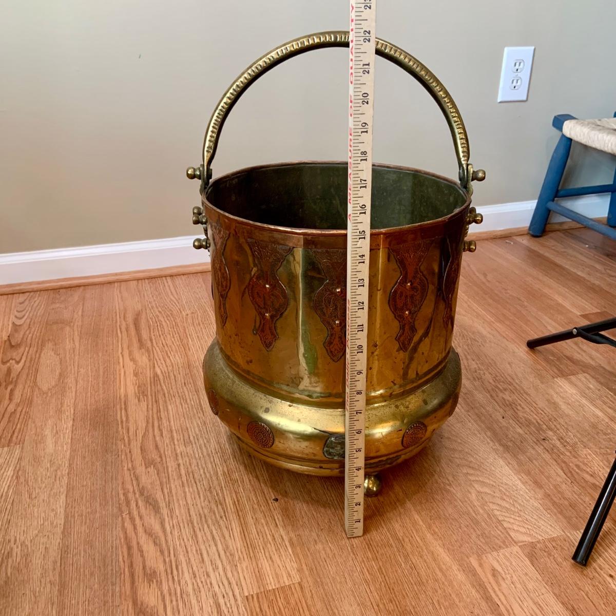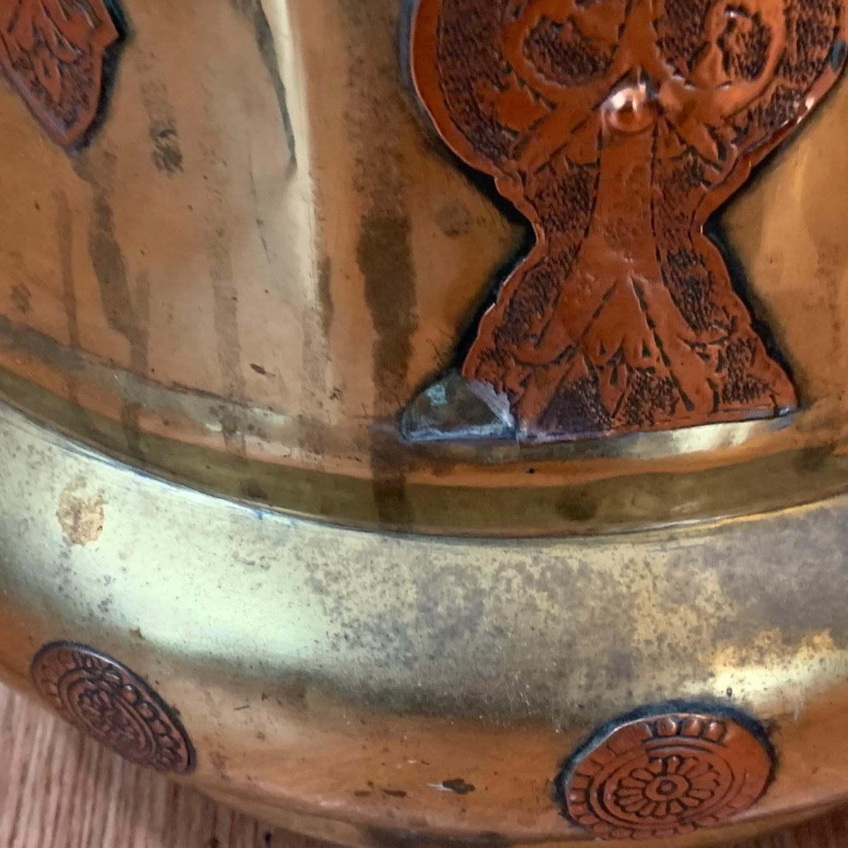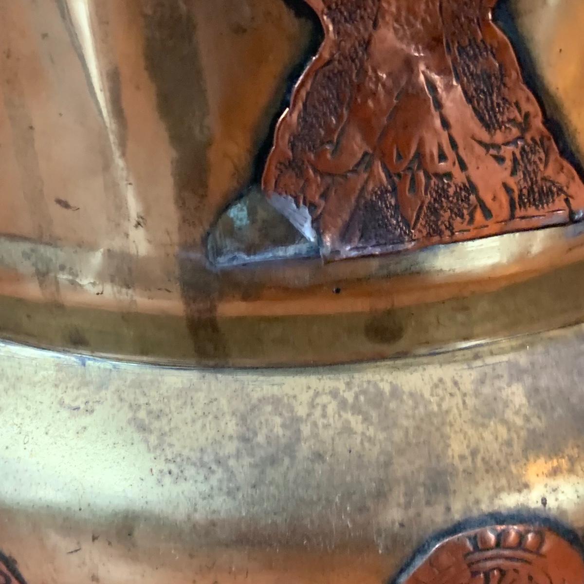 LOT:34: Antique/ Vintage Large Brass with Cooper Kettle/Cauldron with Handle and Feet.