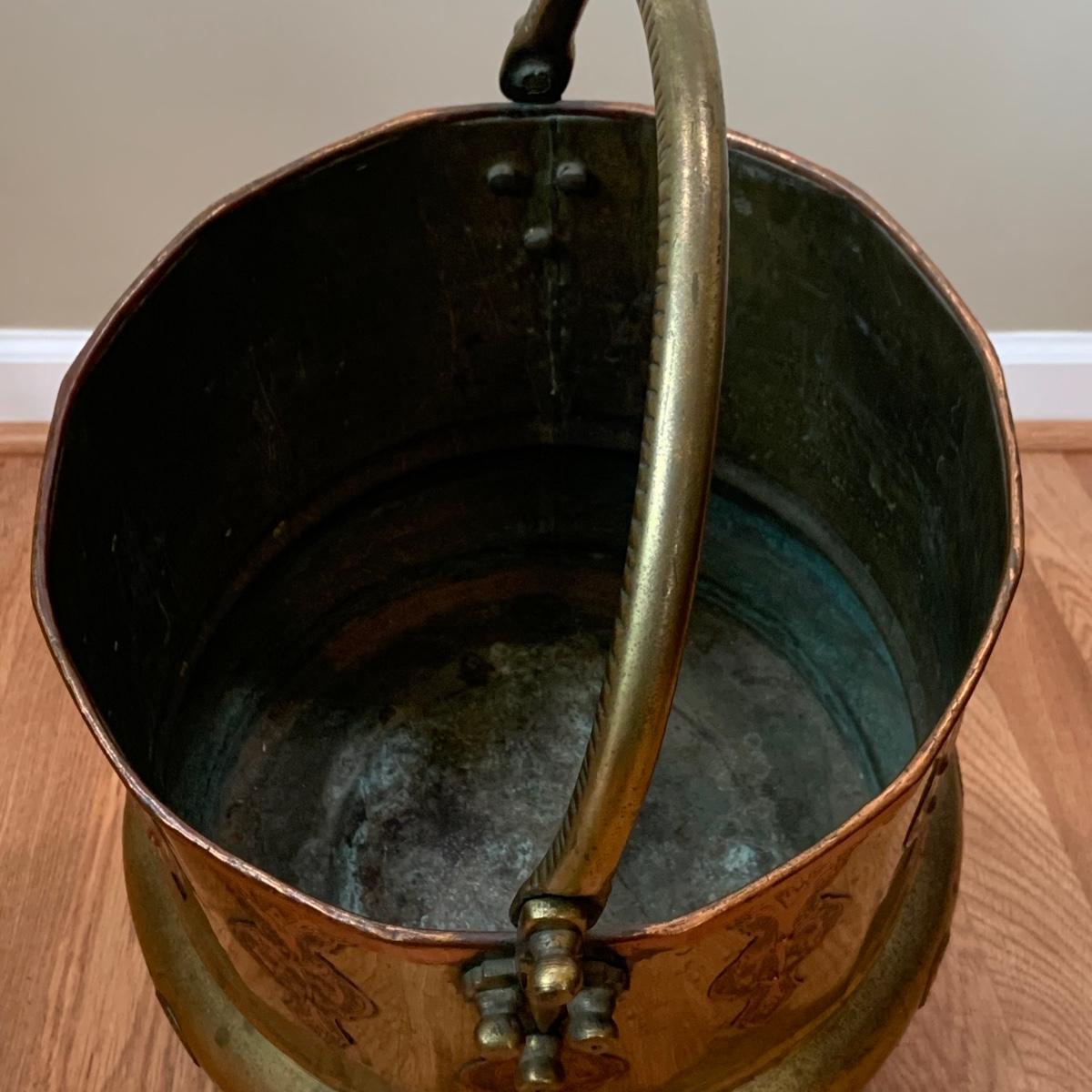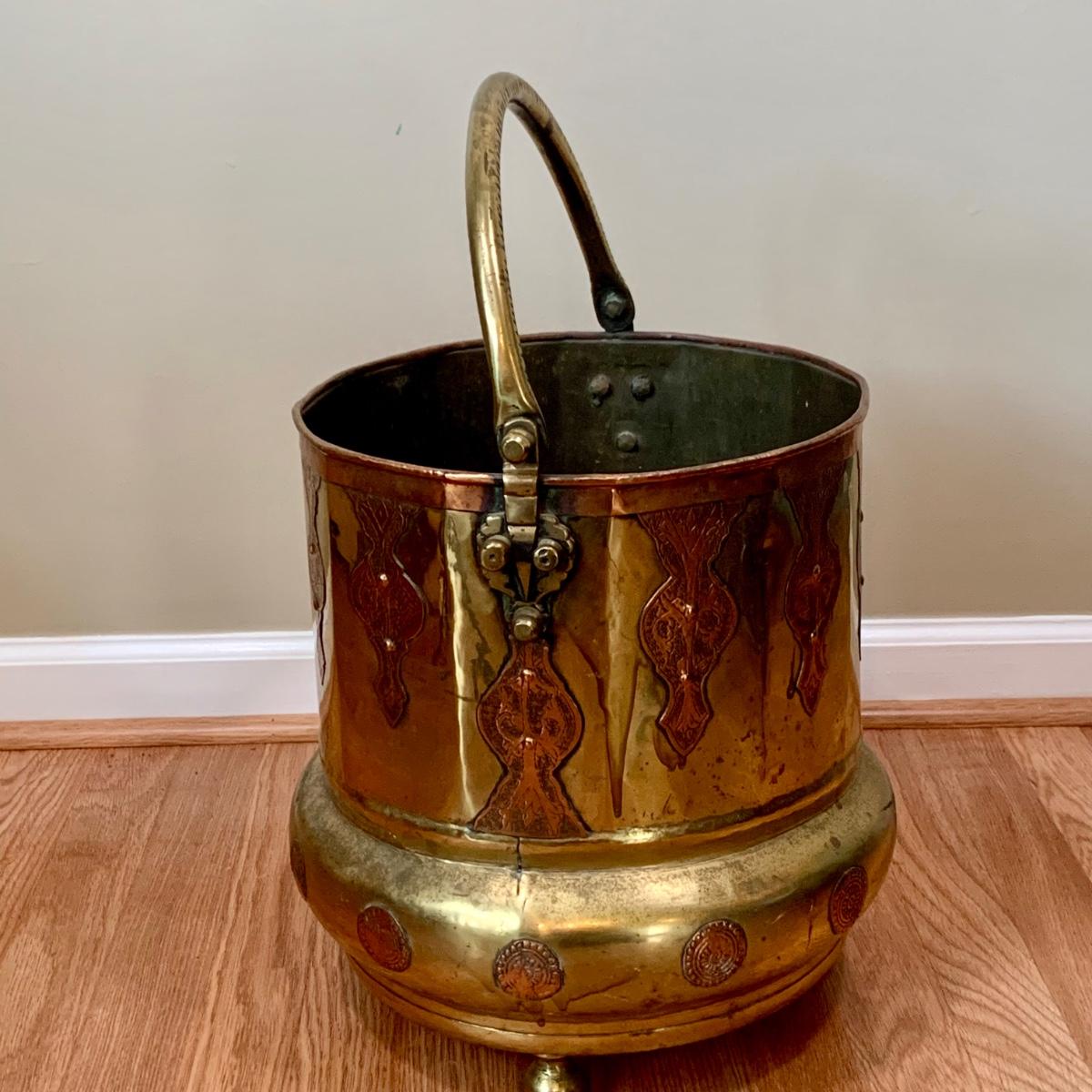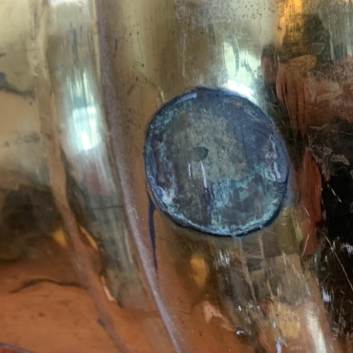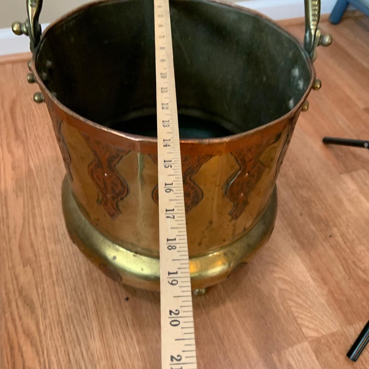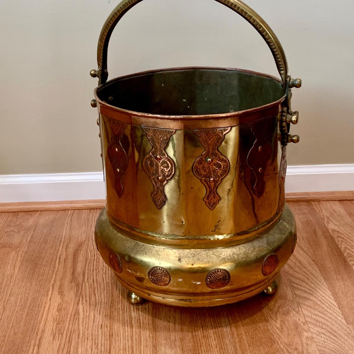 LOT:34: Antique/ Vintage Large Brass with Cooper Kettle/Cauldron with Handle and Feet.