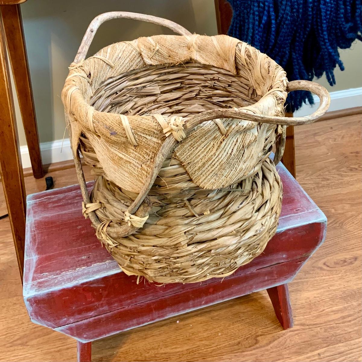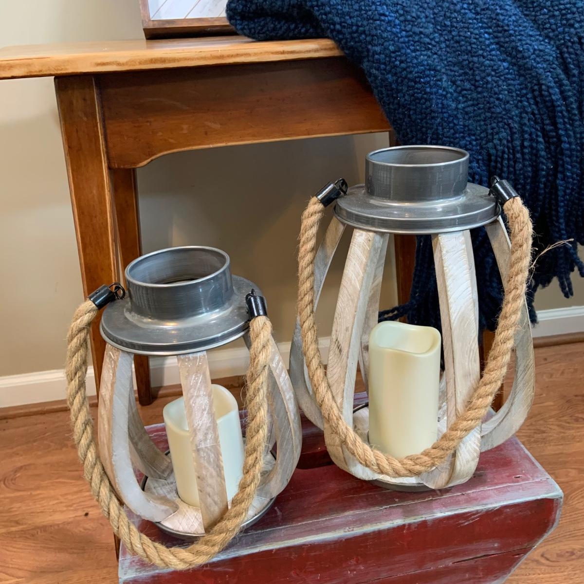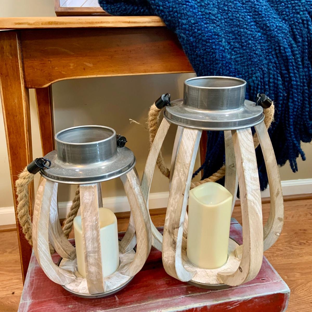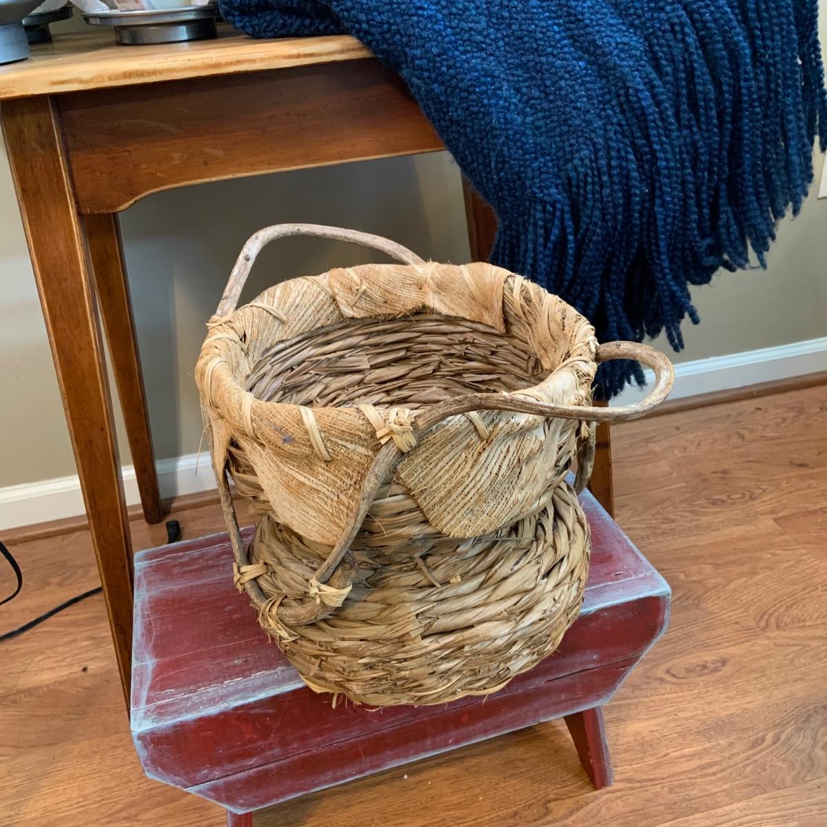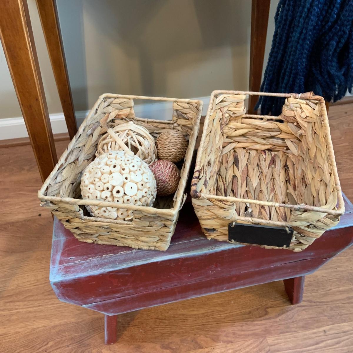 LOT:47:Baskets, Blanket and Lanterns, Featuring a Large Rustic Woven Basket, Blue Woven Baskets, Metal Lanterns, a Wax Warmer, Drawer Storage Box and More