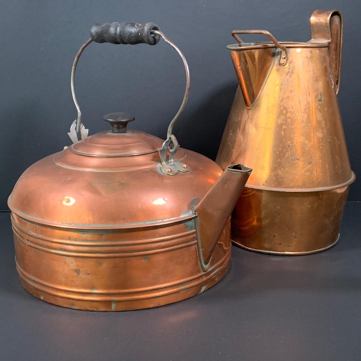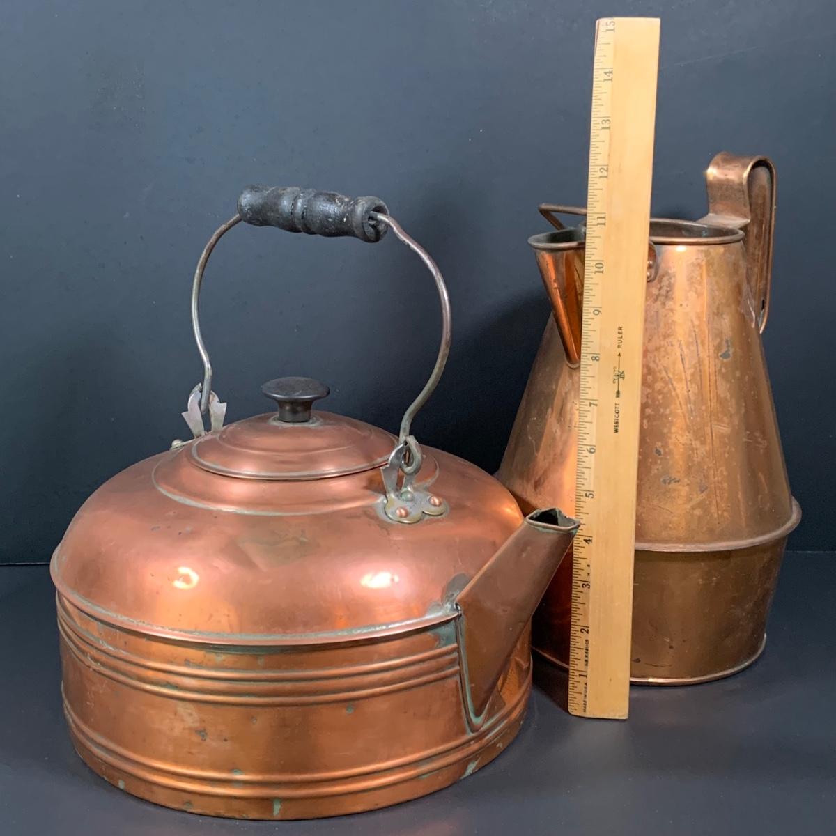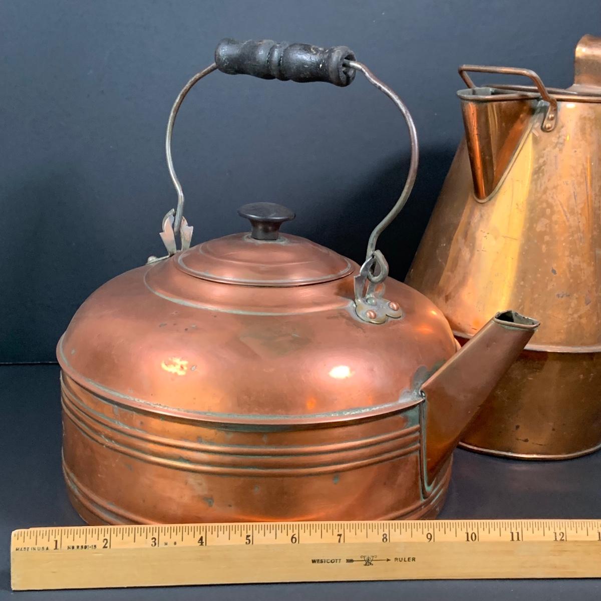 LOT:55: Vintage/Antique Copper Tea Kettle and Coffee Pot