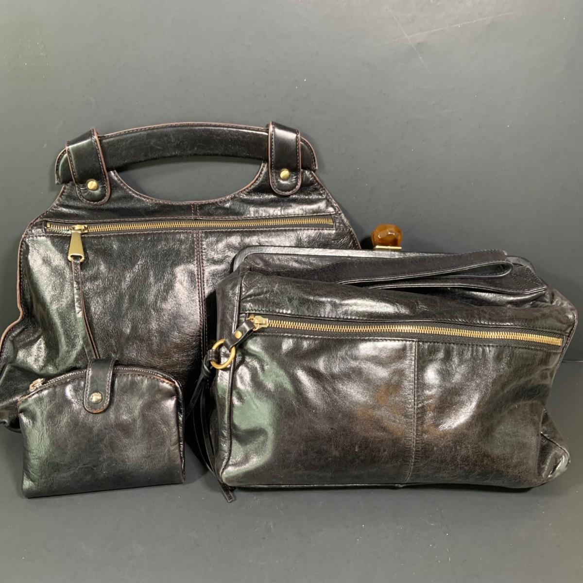LOT:59: Collection of 2 Hobo Brand Black Leather Purses and Black Wallet