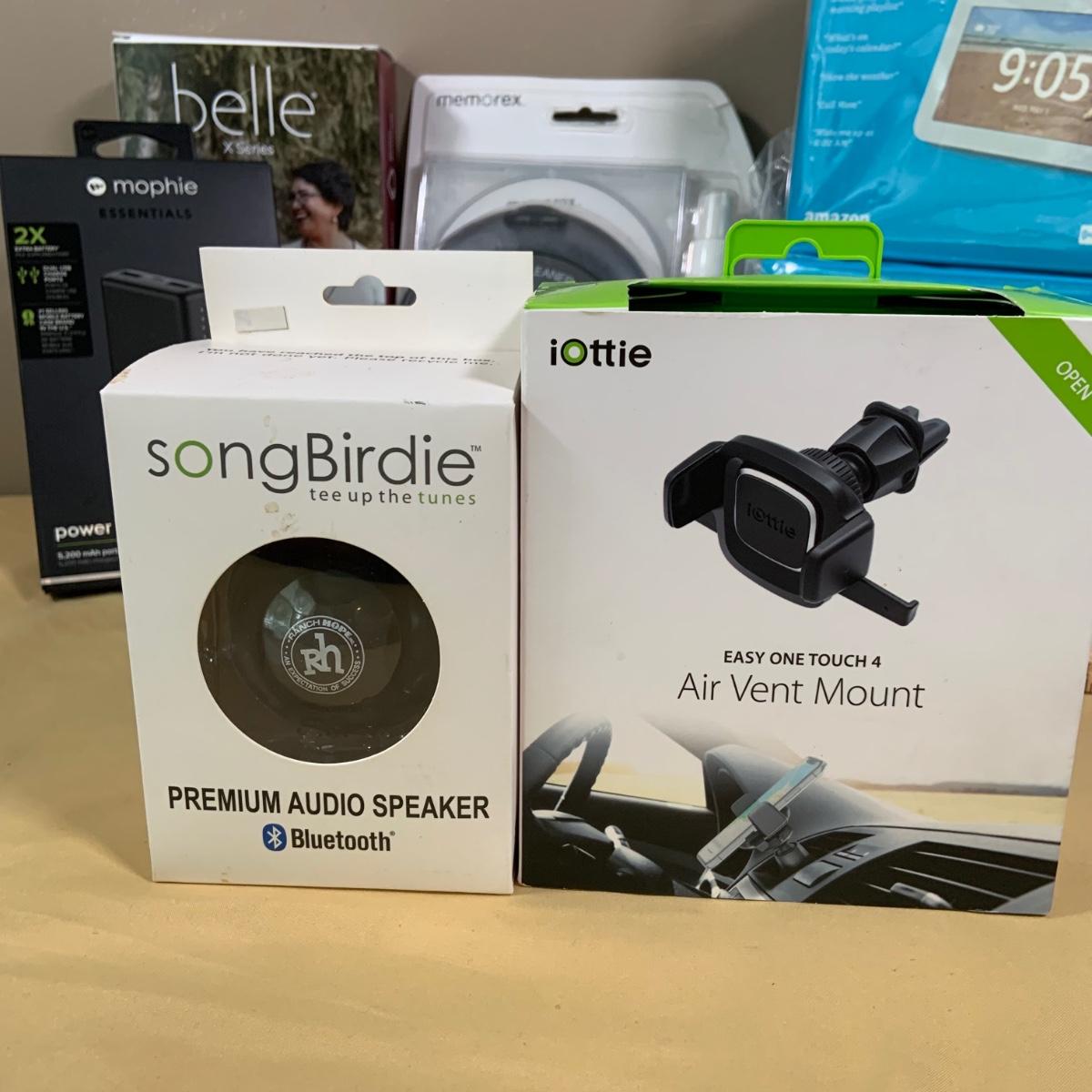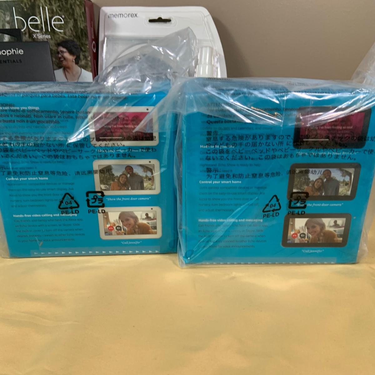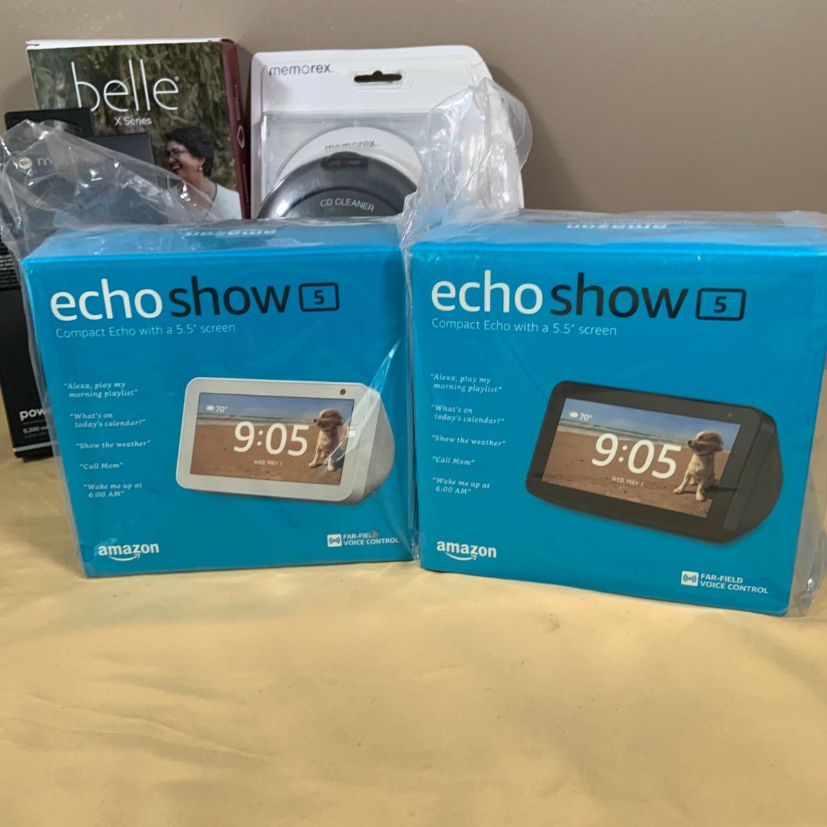 LOT:67: An Assortment of New or Unused Gagets Featuring 2 Amazon Echo Show (5) Belle Medical Alert, Speakers, Charges and Much More