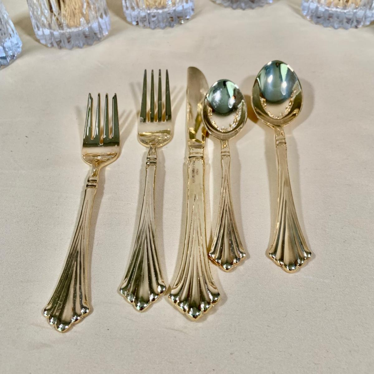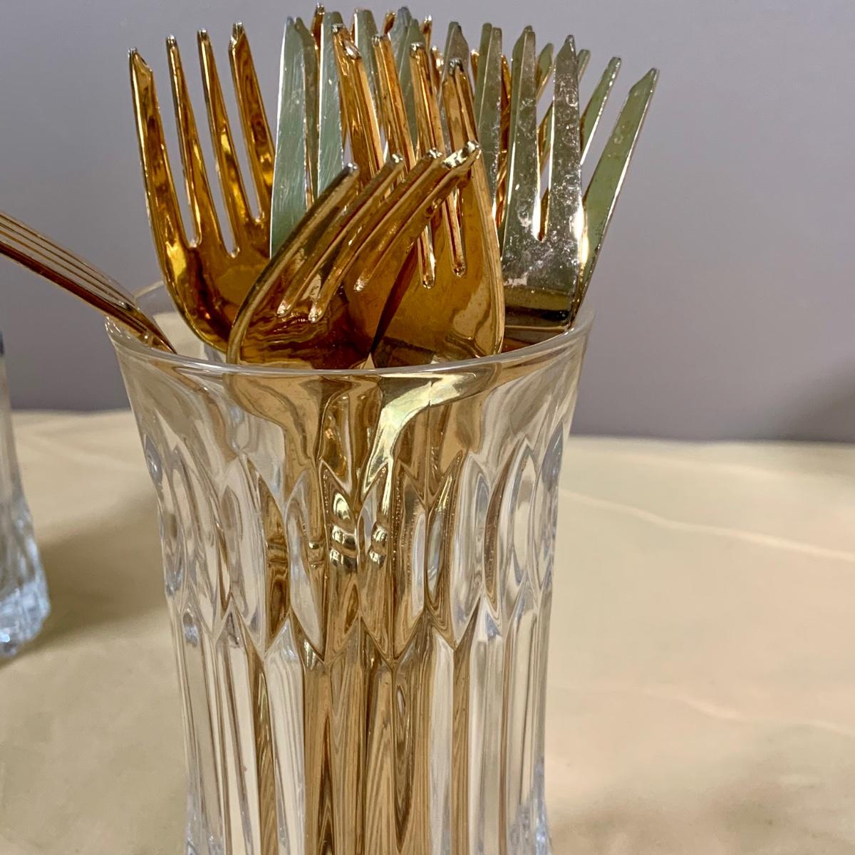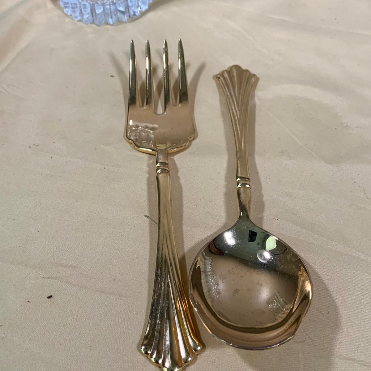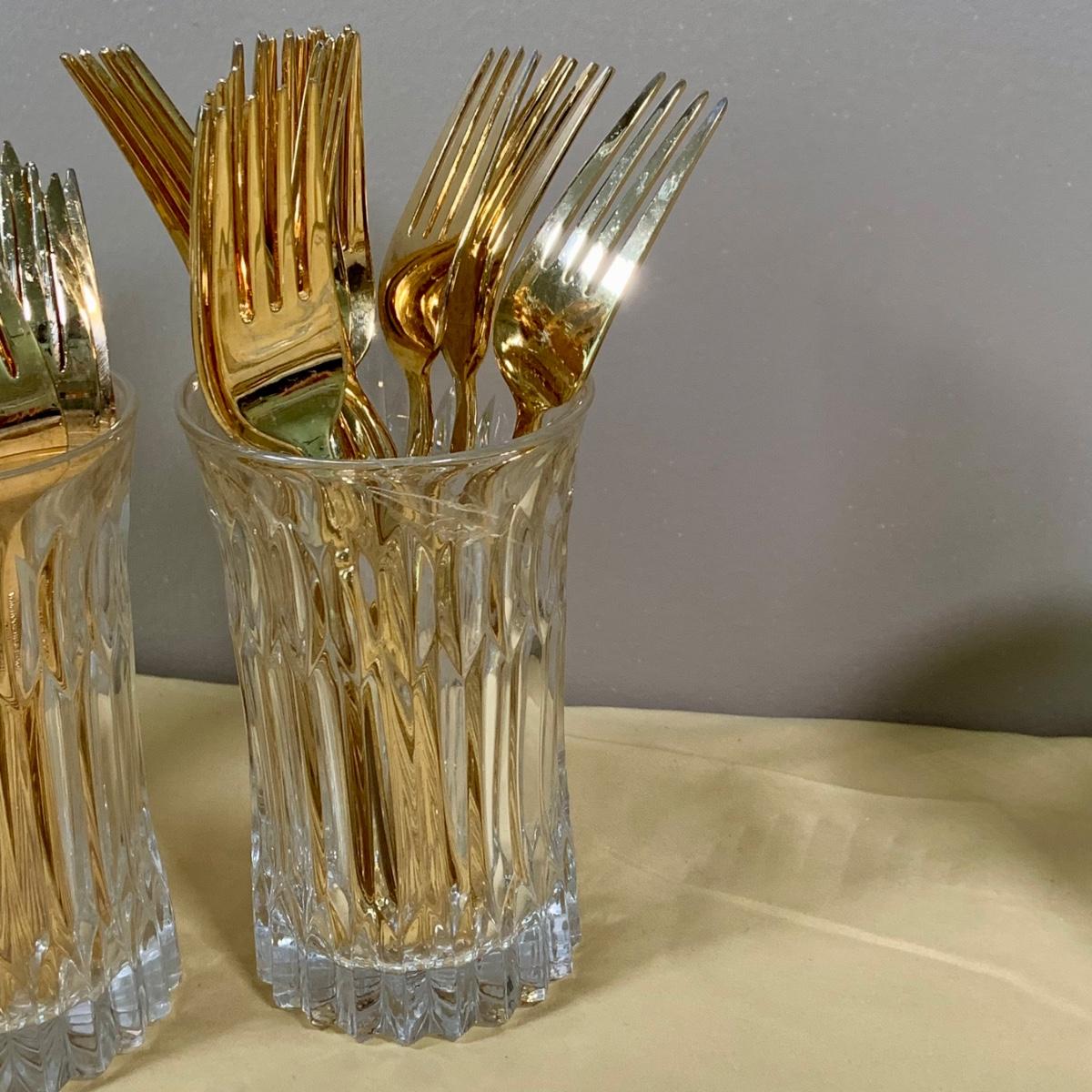 LOT:68: Goldtone Flatware and Service Set and Set of 6 Glasses