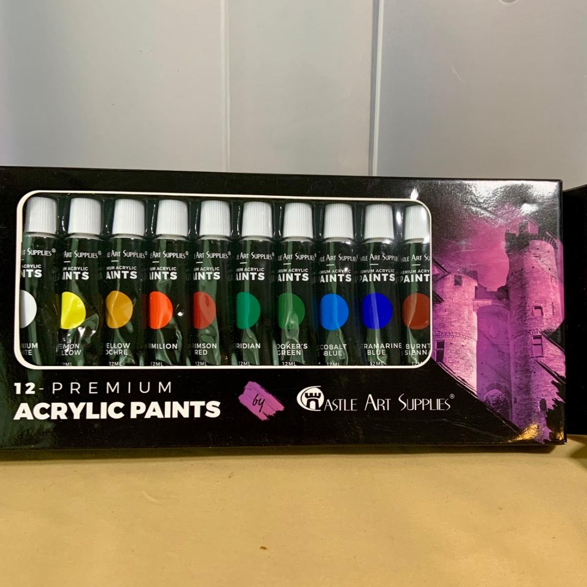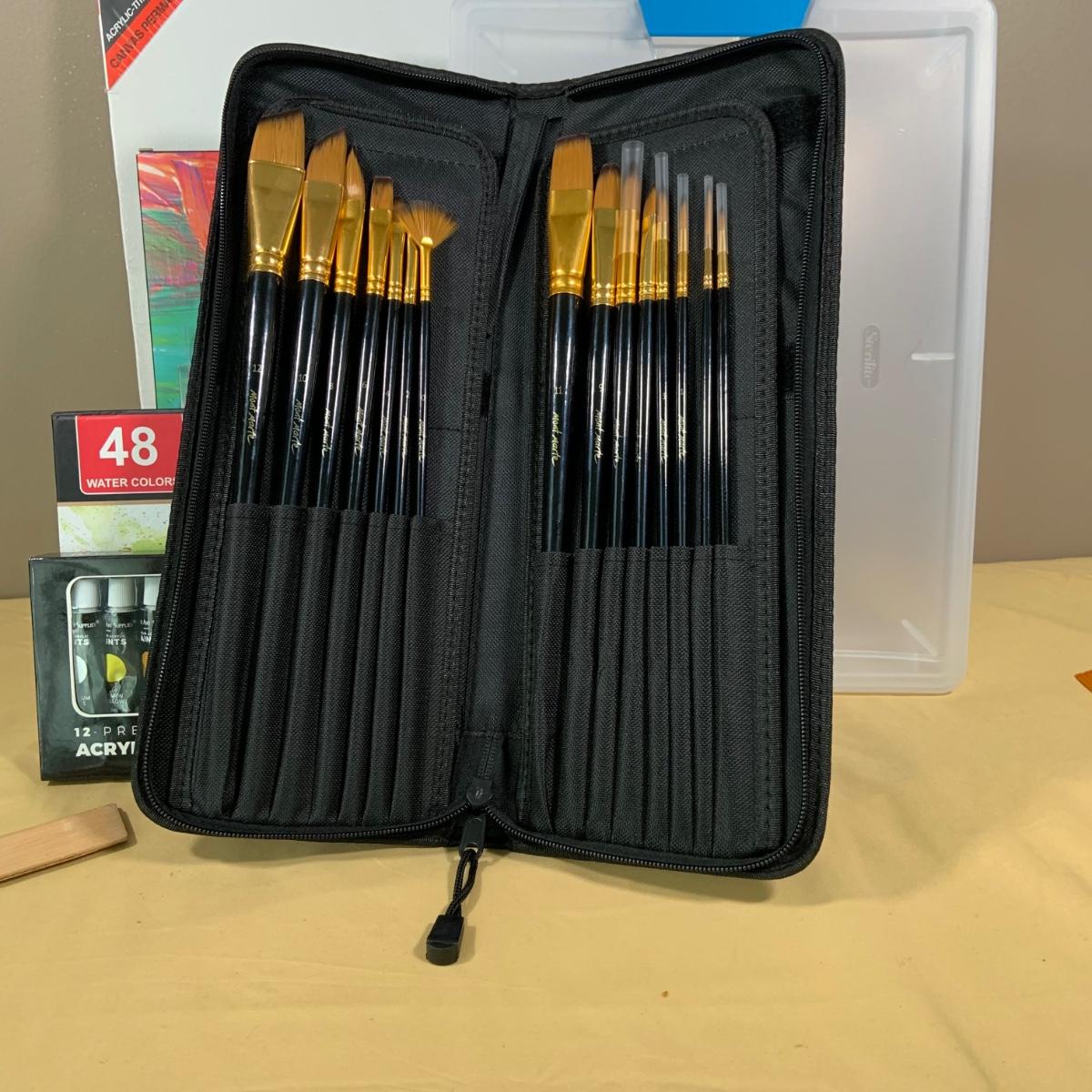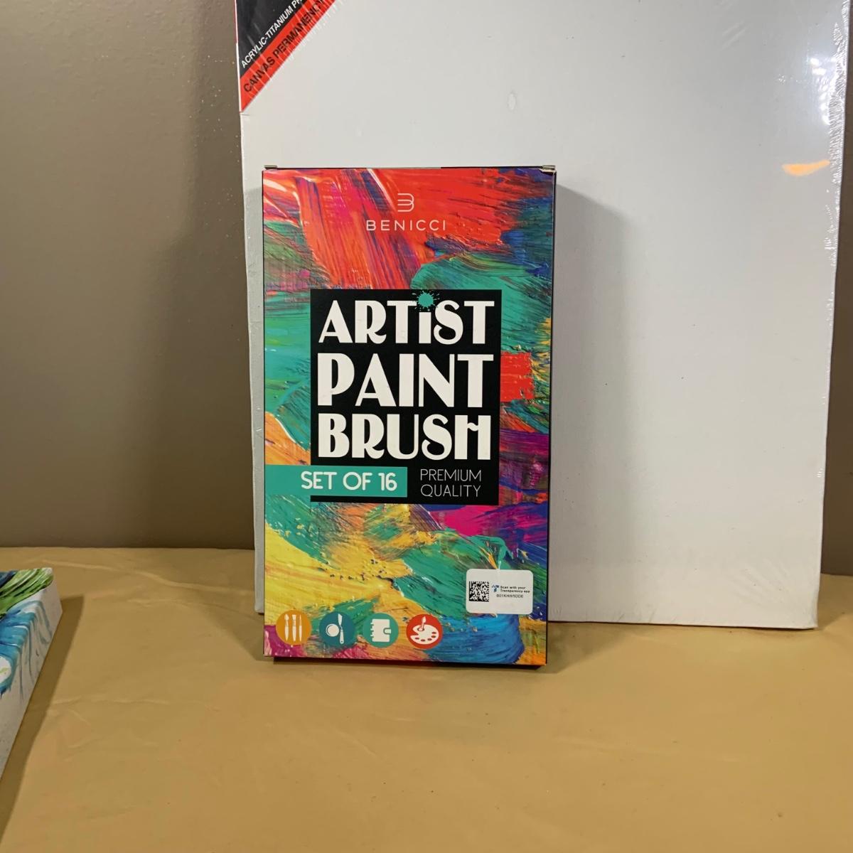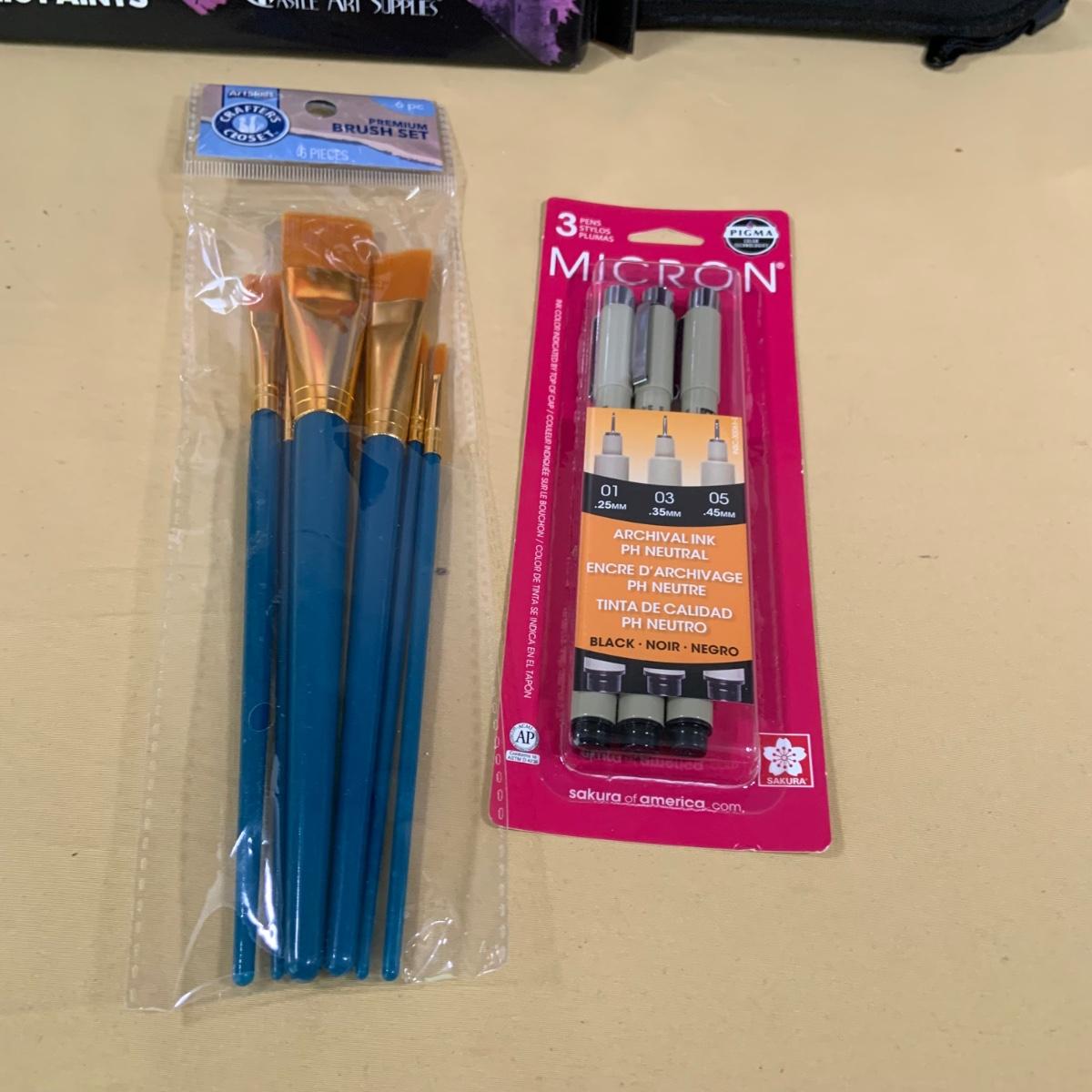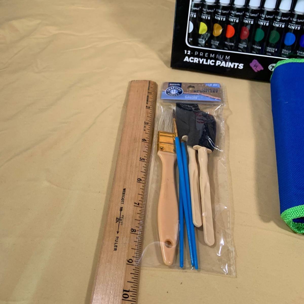 LOT69:: Selection of Art Supplies Most New or Unused Including Canvas, Brushes, Water Color and Acrylic Paint and More