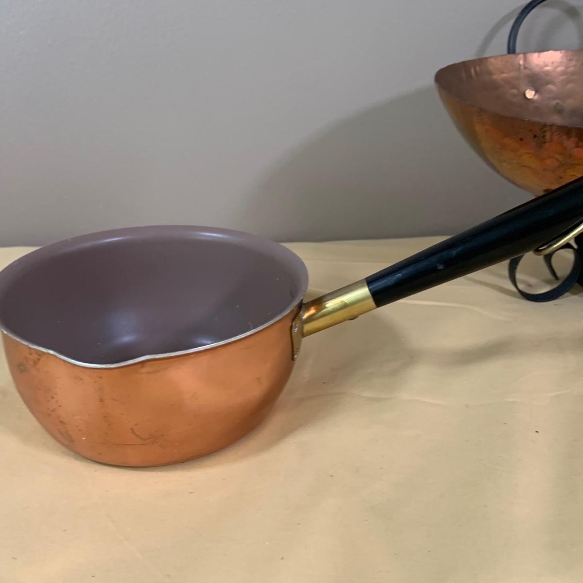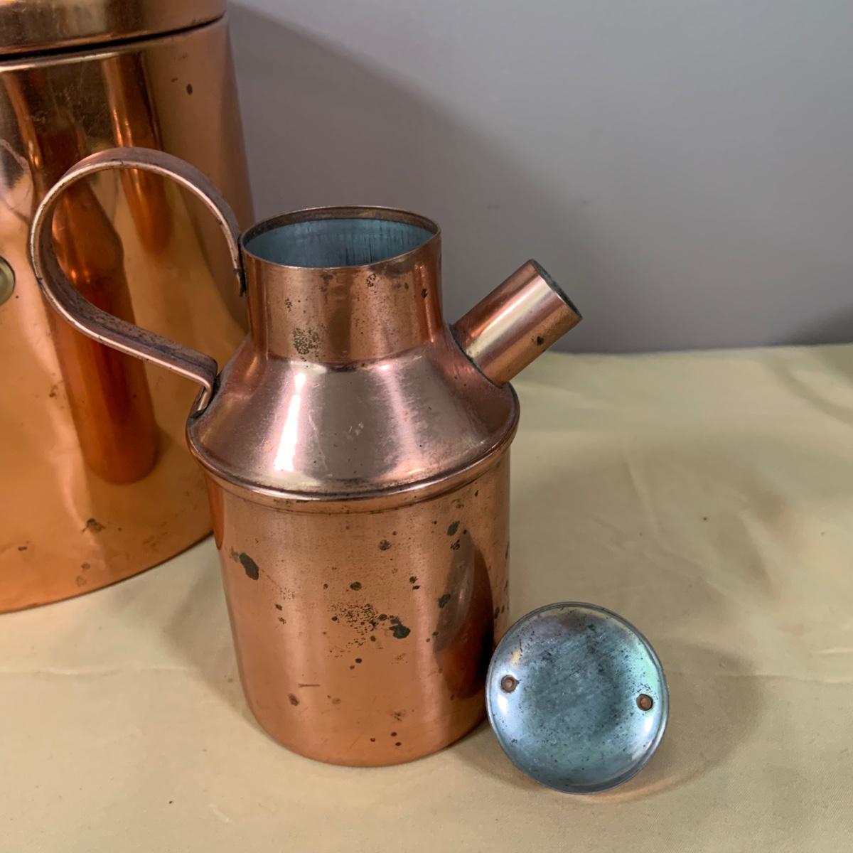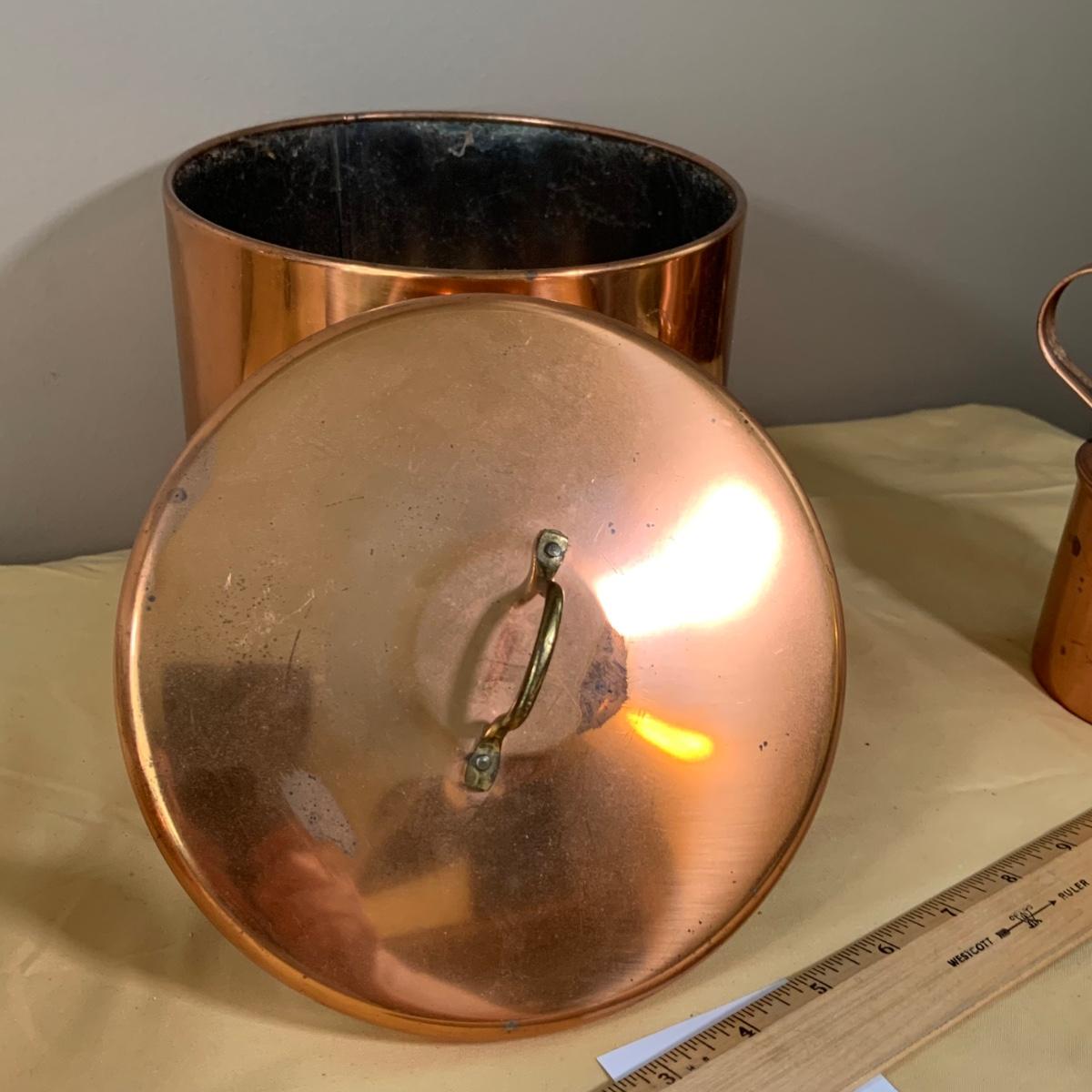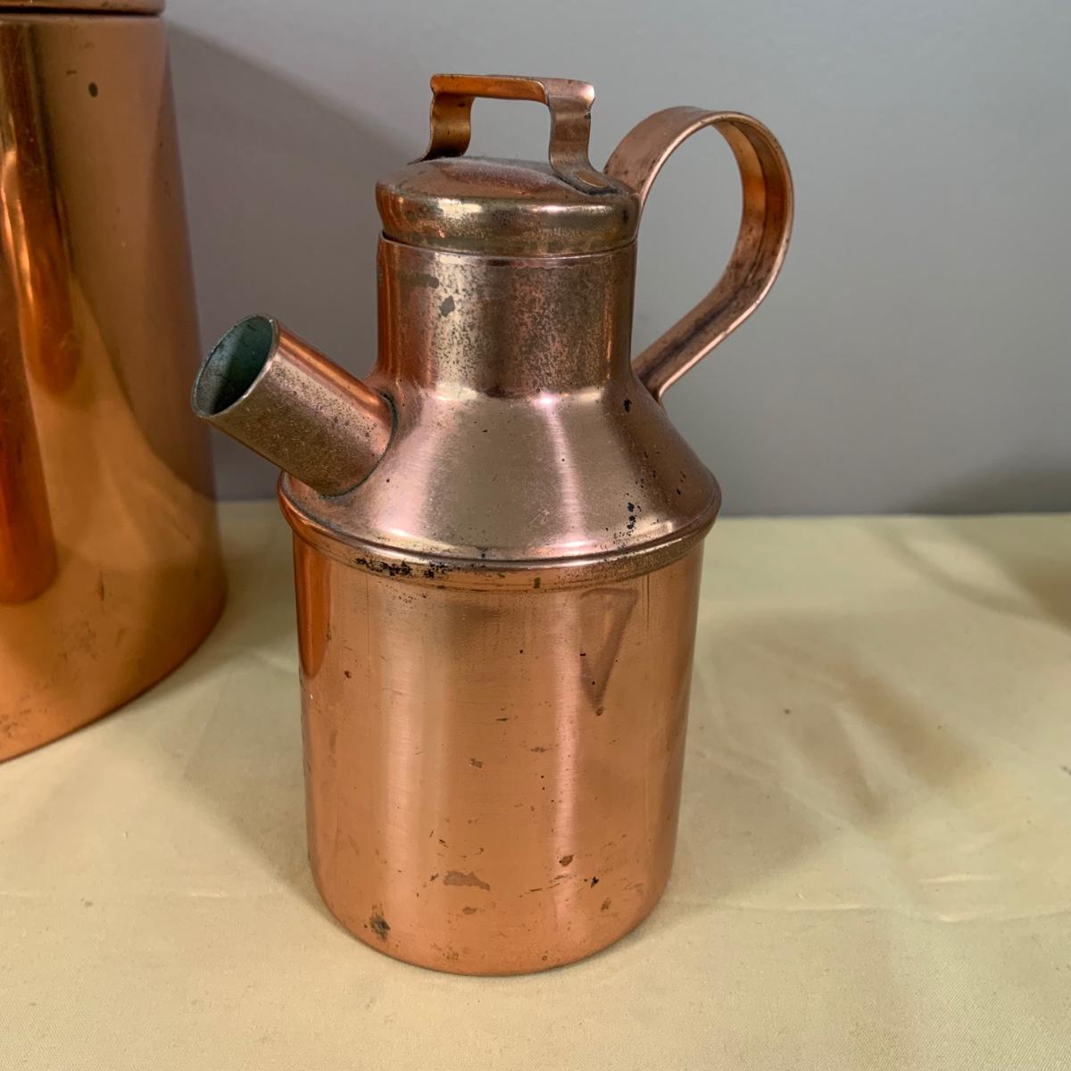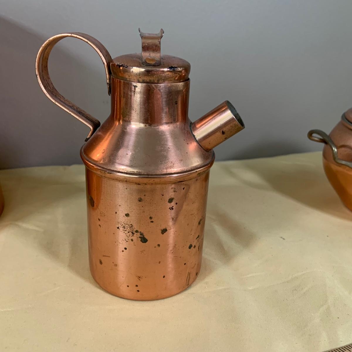 LOT:71: Copper Canisters, Calander, Pan, Bowl and Milk Jug/Creamer