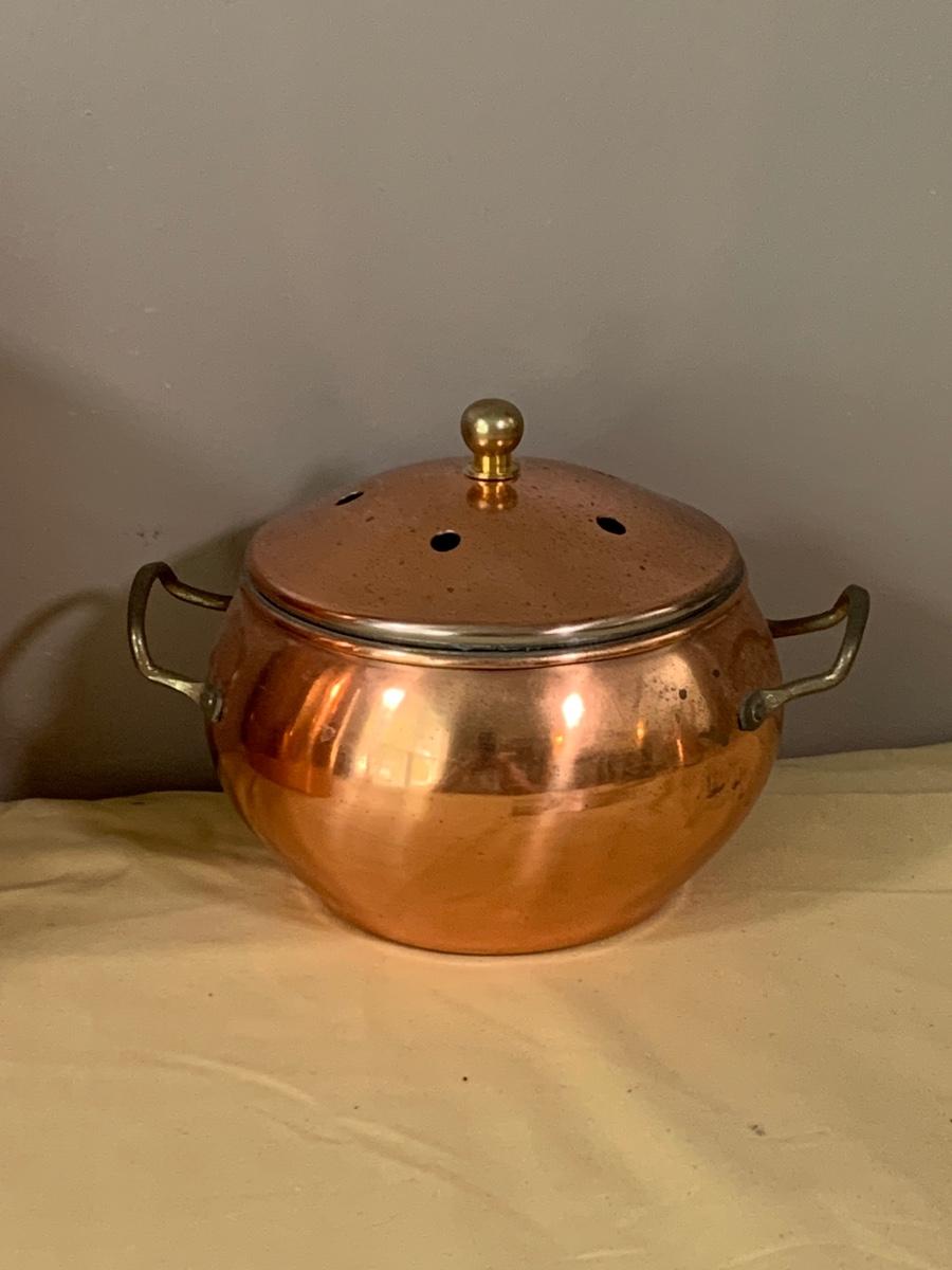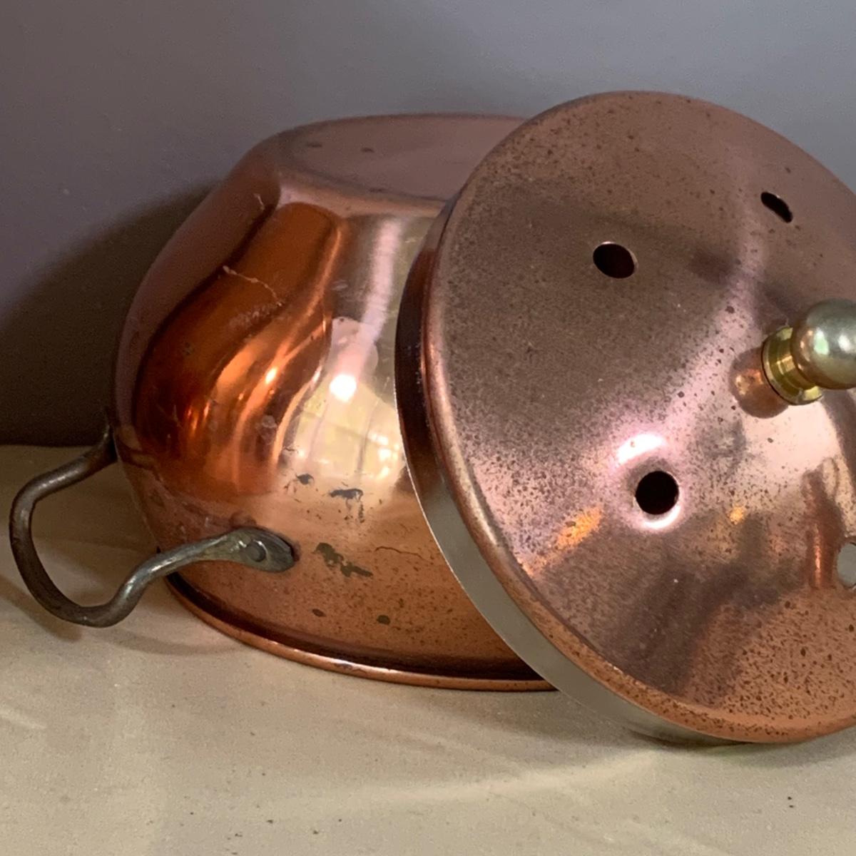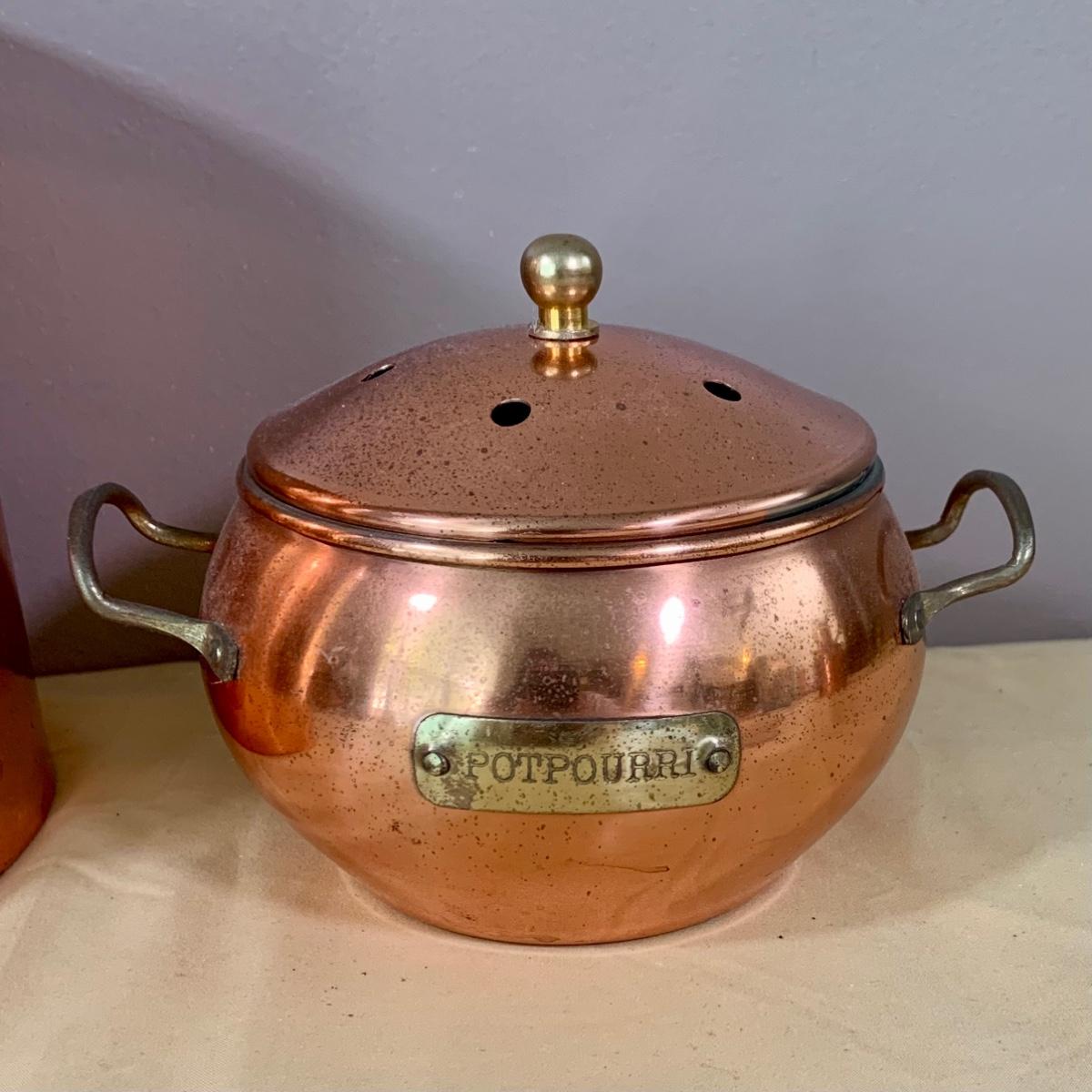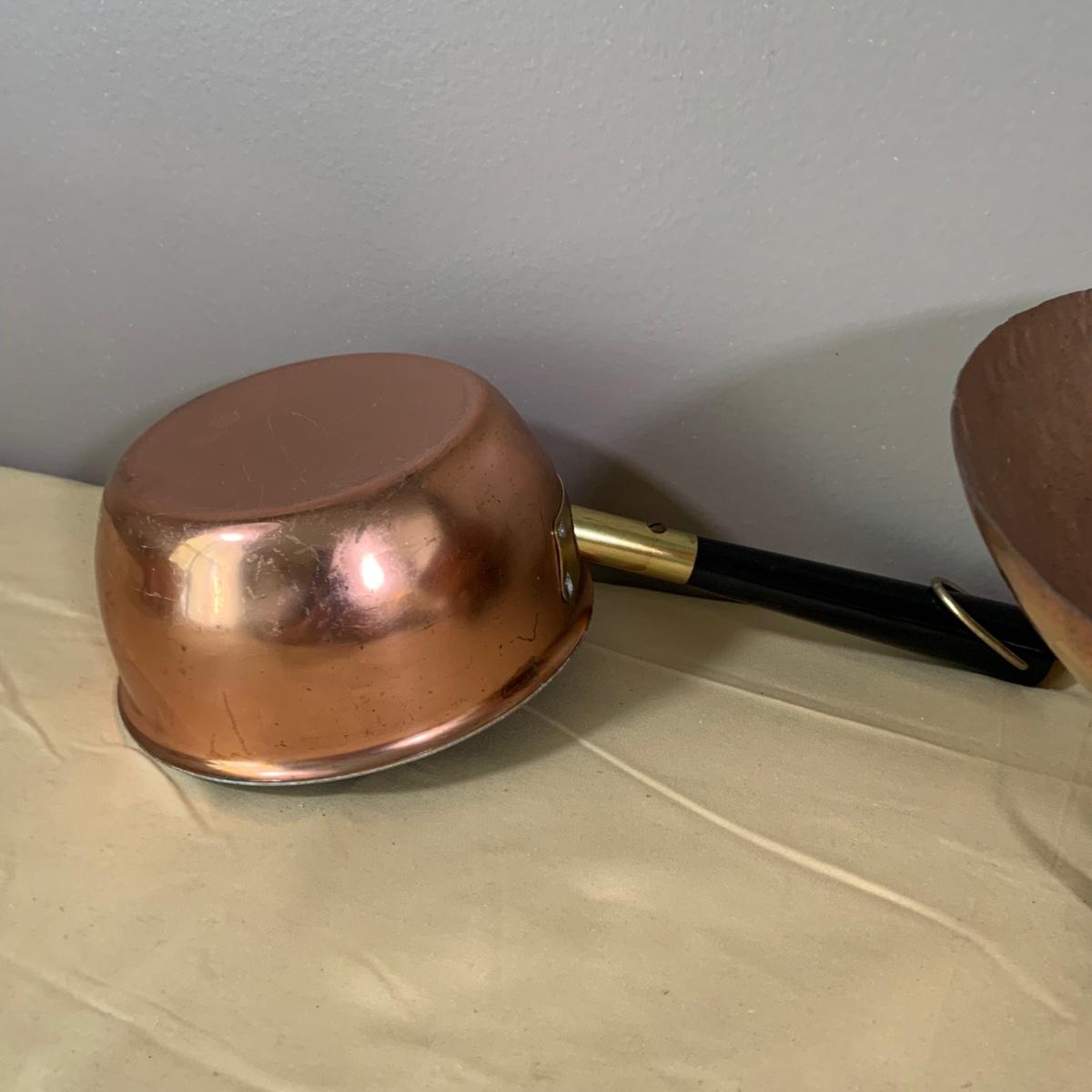 LOT:71: Copper Canisters, Calander, Pan, Bowl and Milk Jug/Creamer