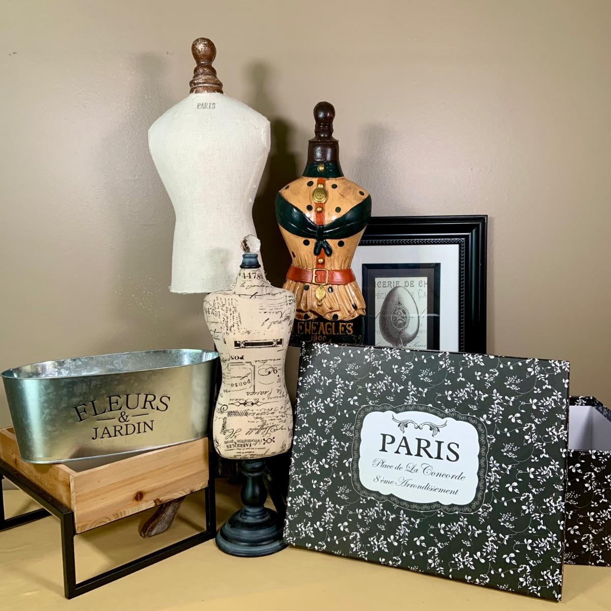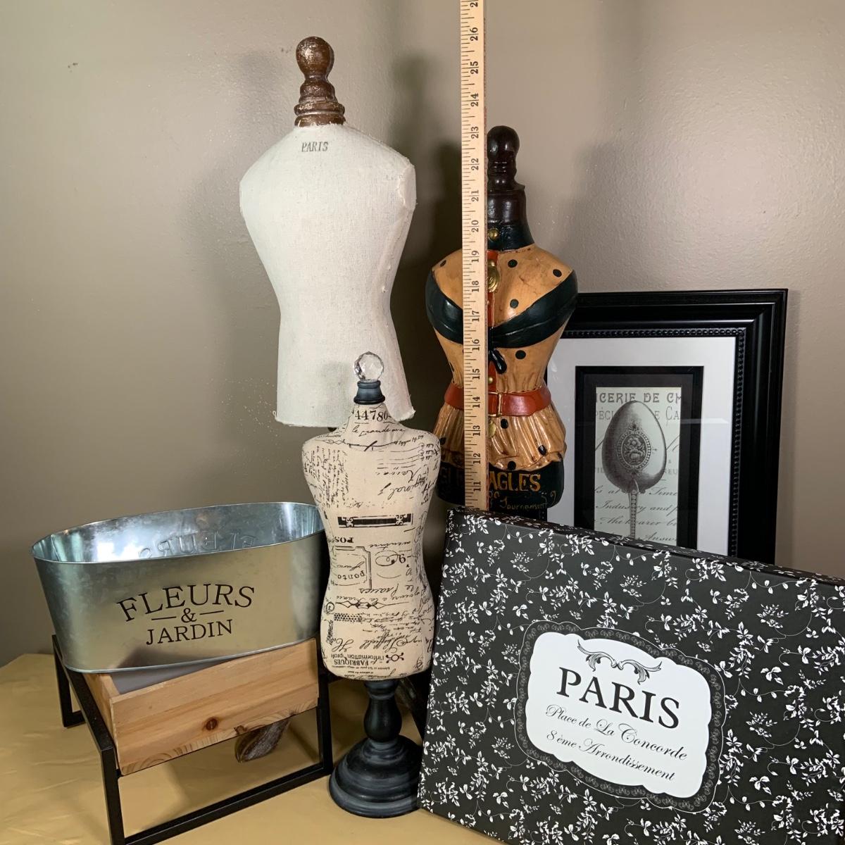 LOT::76 Who Doesn't Love Paris - Miniture Maniquins, Wall Art, Storage Box, Metal Planter and More