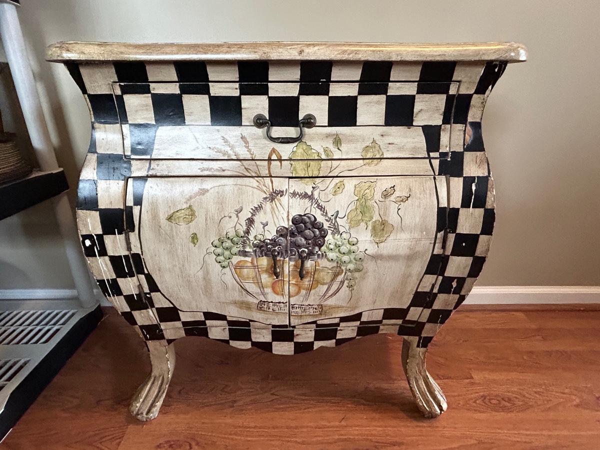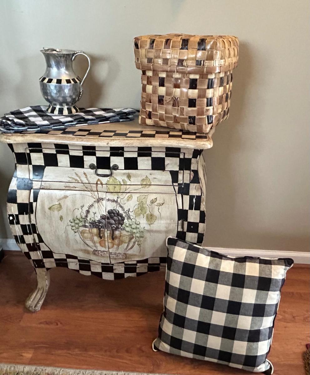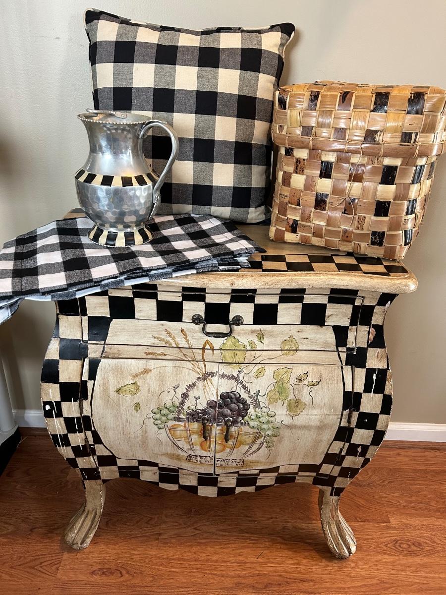 LOT 88: Hand Painted Cabinet & Matching Accessories - Placemats, Pillow, Basket and more