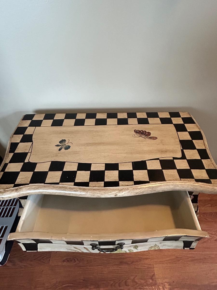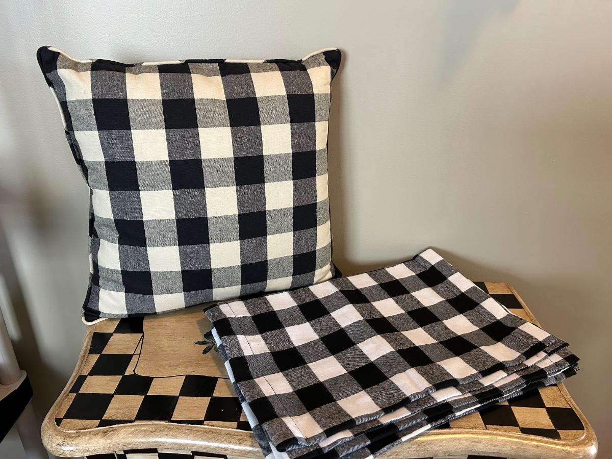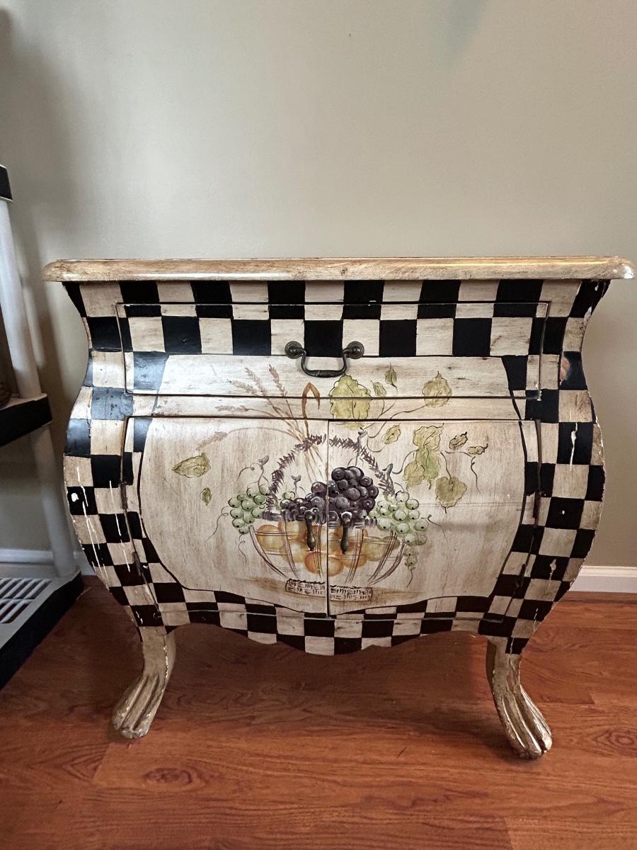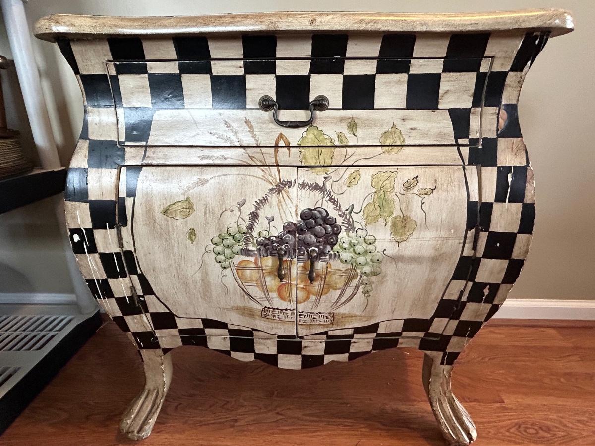 LOT 88: Hand Painted Cabinet & Matching Accessories - Placemats, Pillow, Basket and more