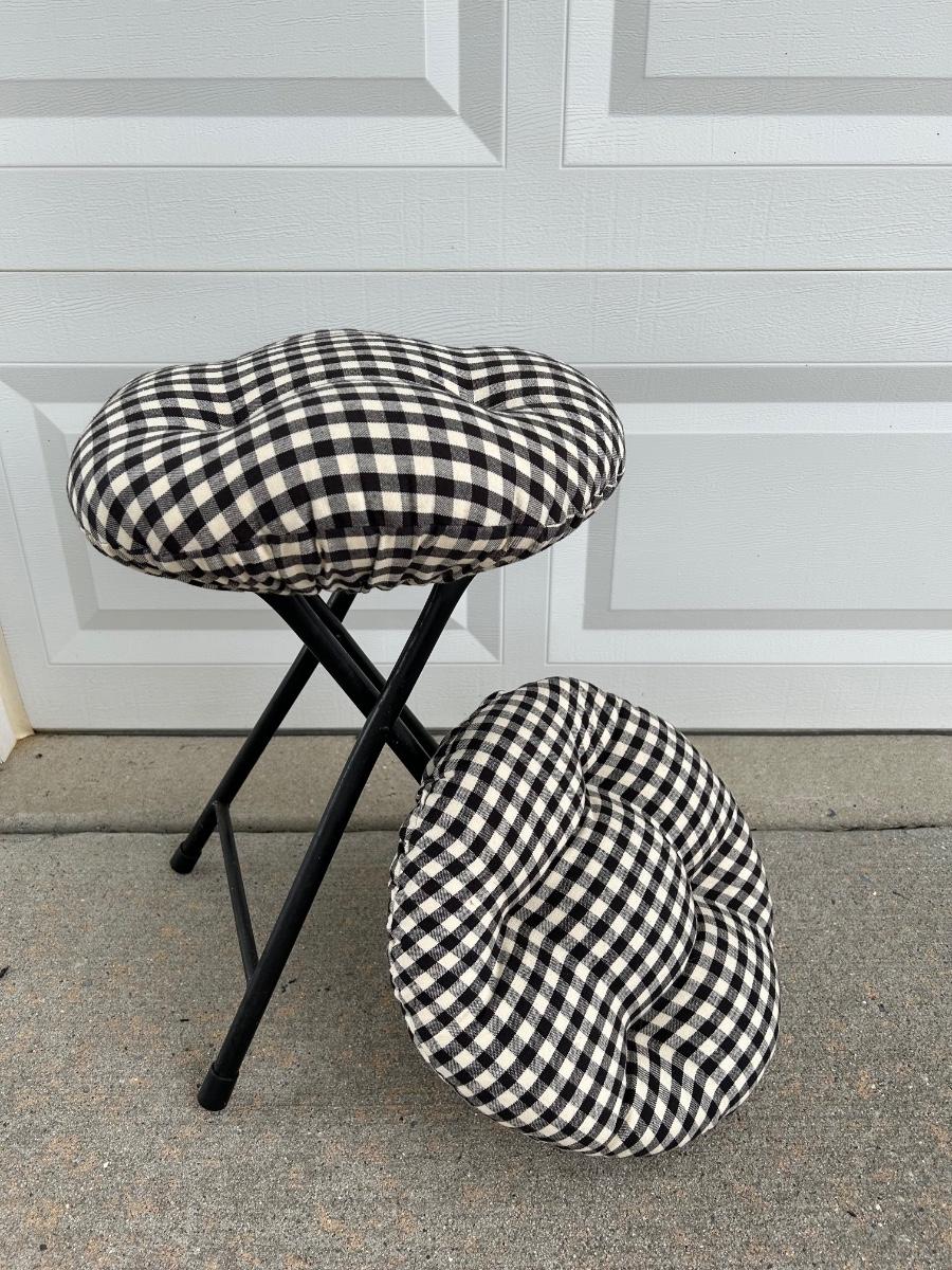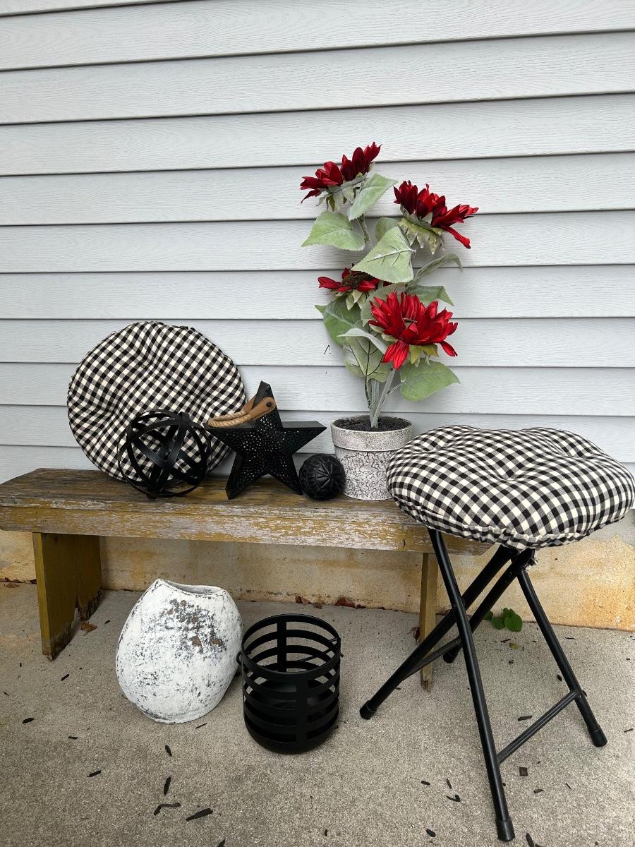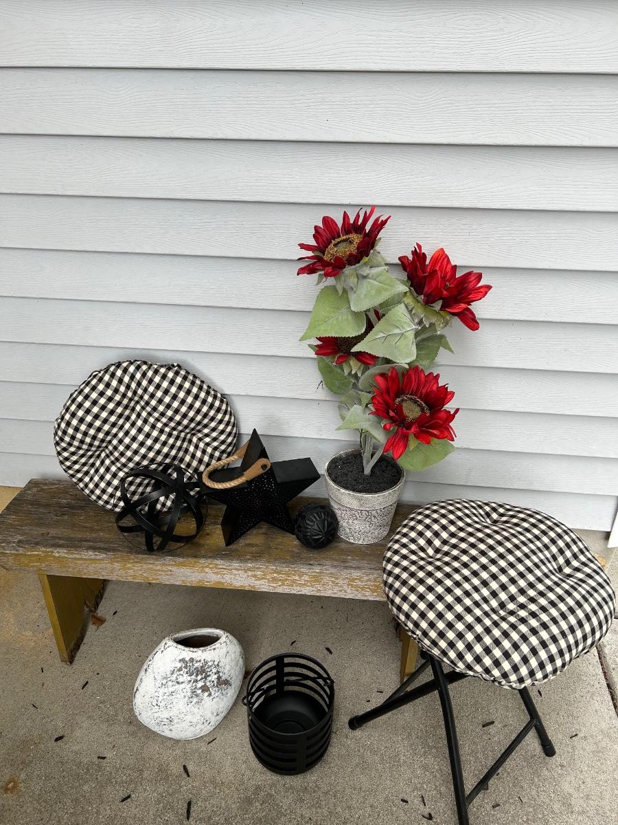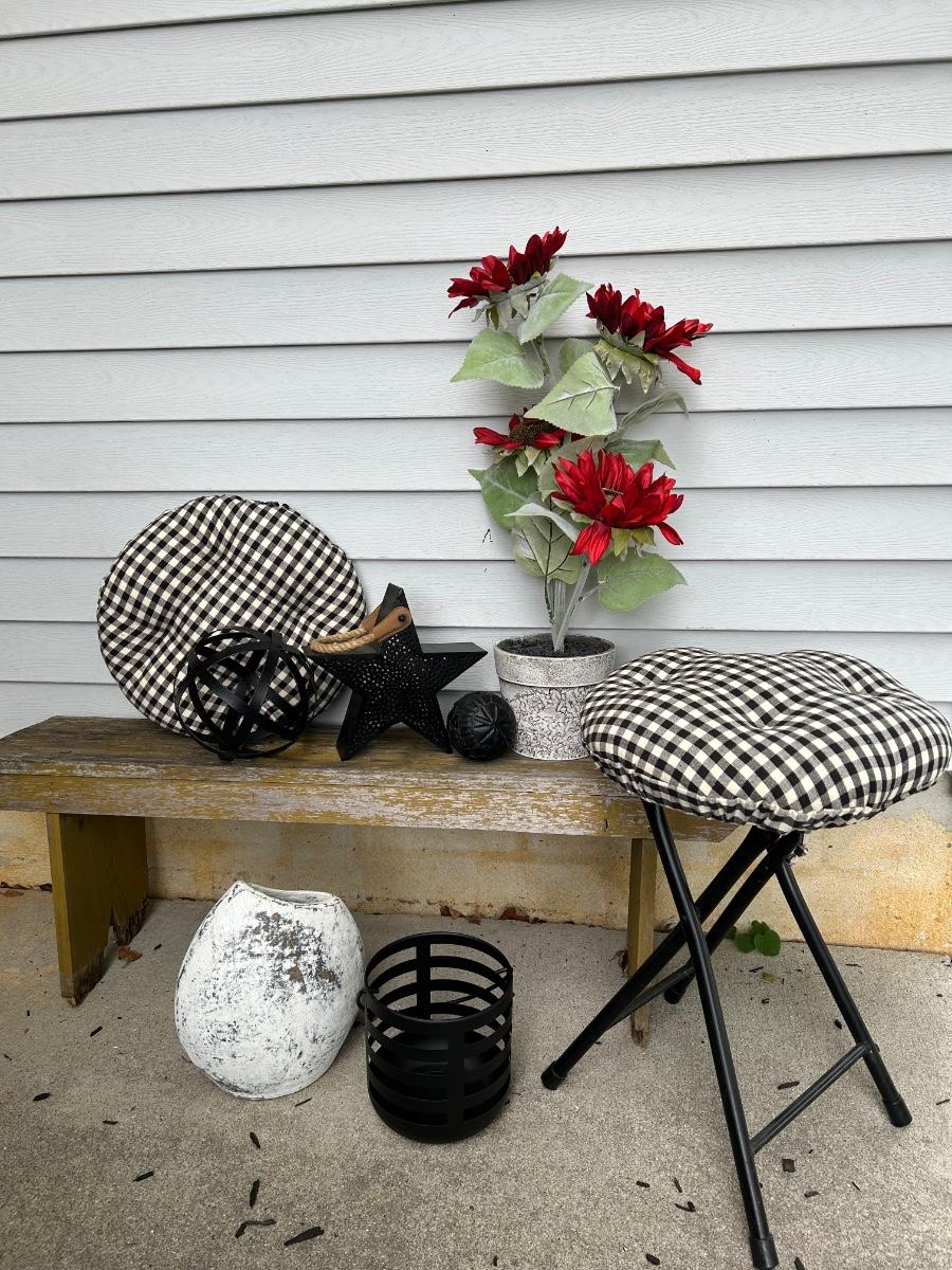 LOT 89: Home Accent Pieces - Stool & Padded Covers, Flower in Pot, Metal Basket, Vase and more
