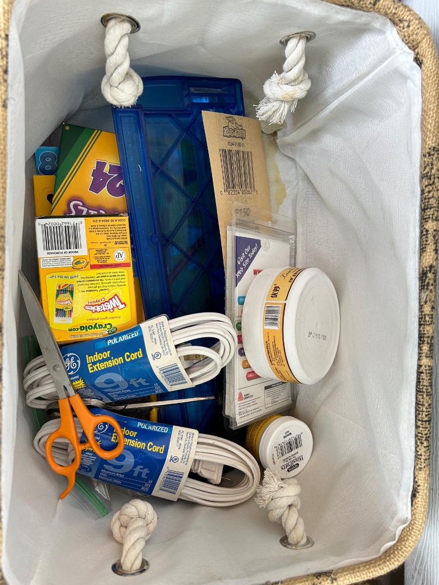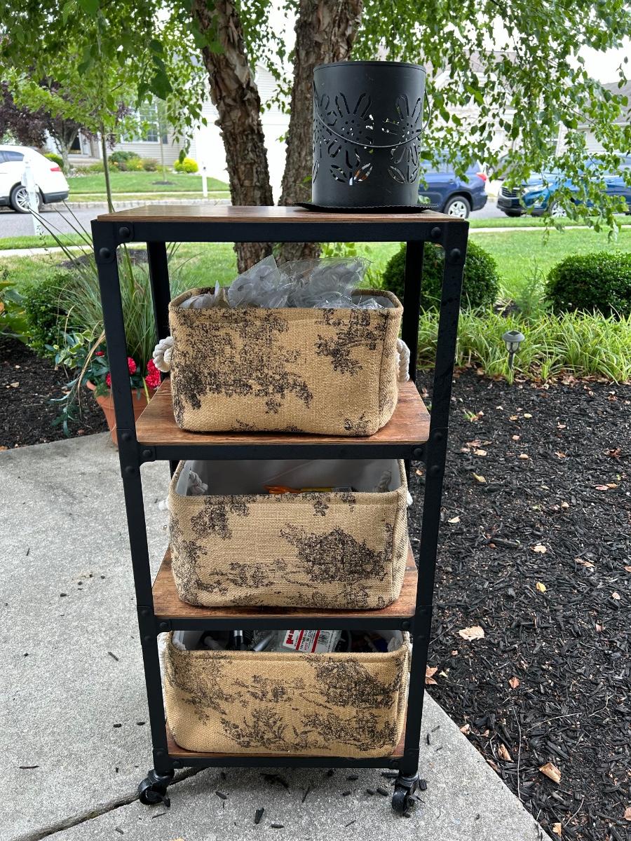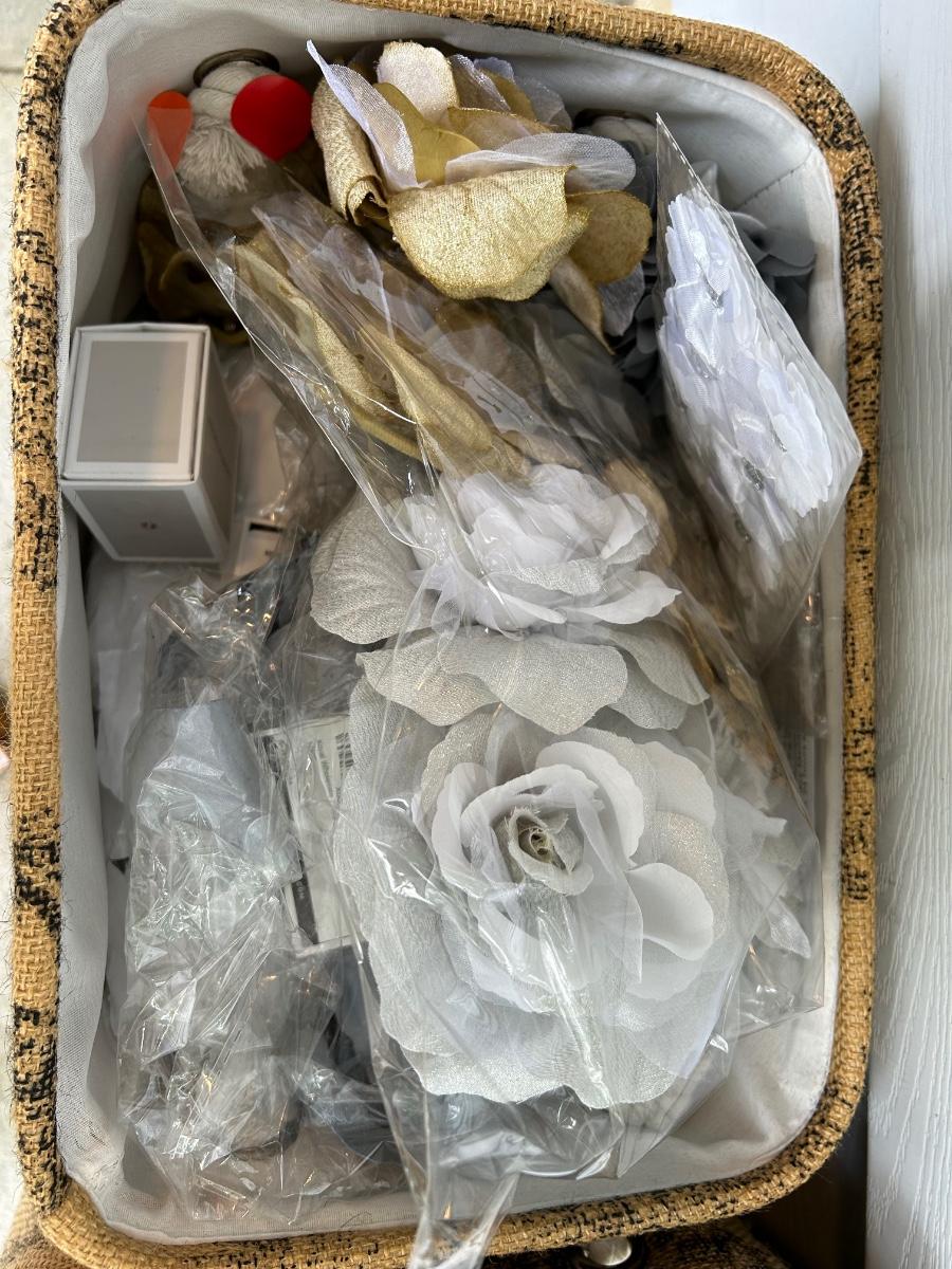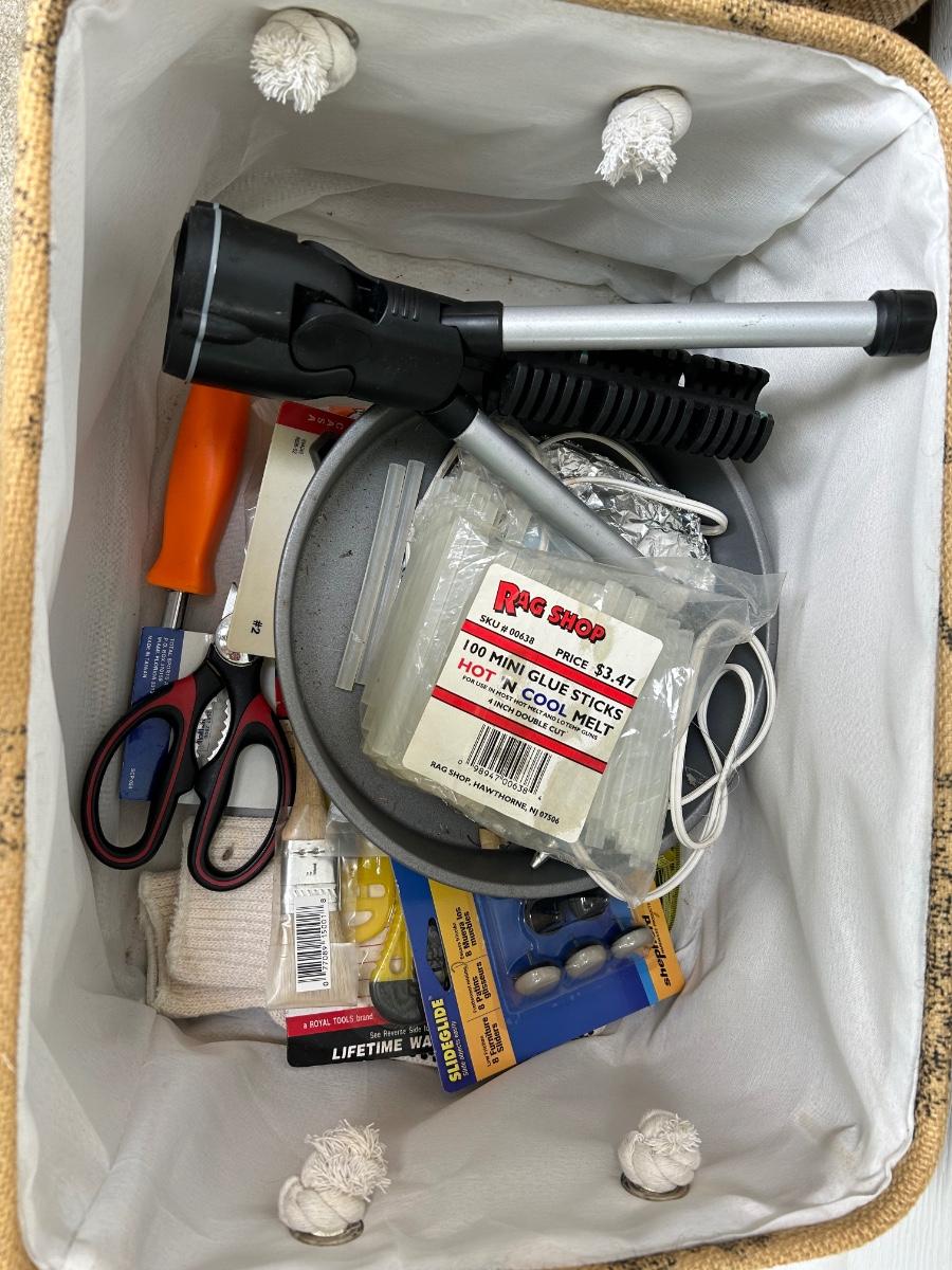 LOT 90: 41” Storage Table & Baskets- Filled With Craft and Home Basics