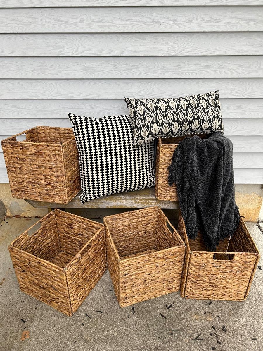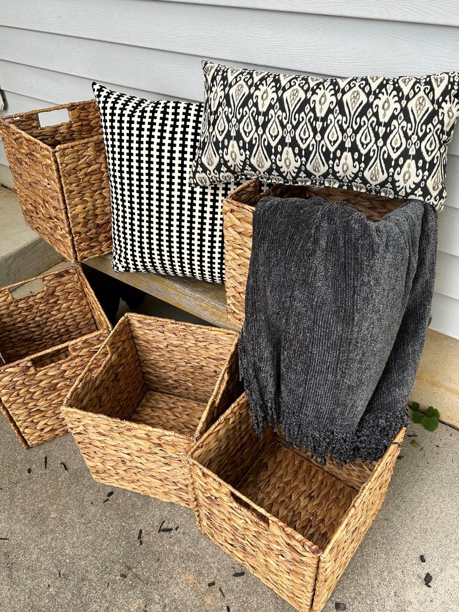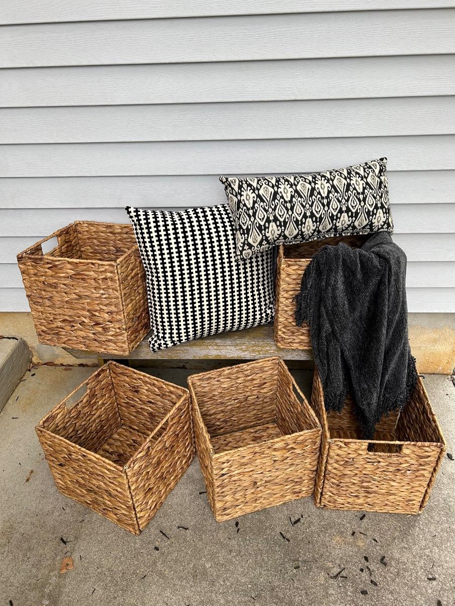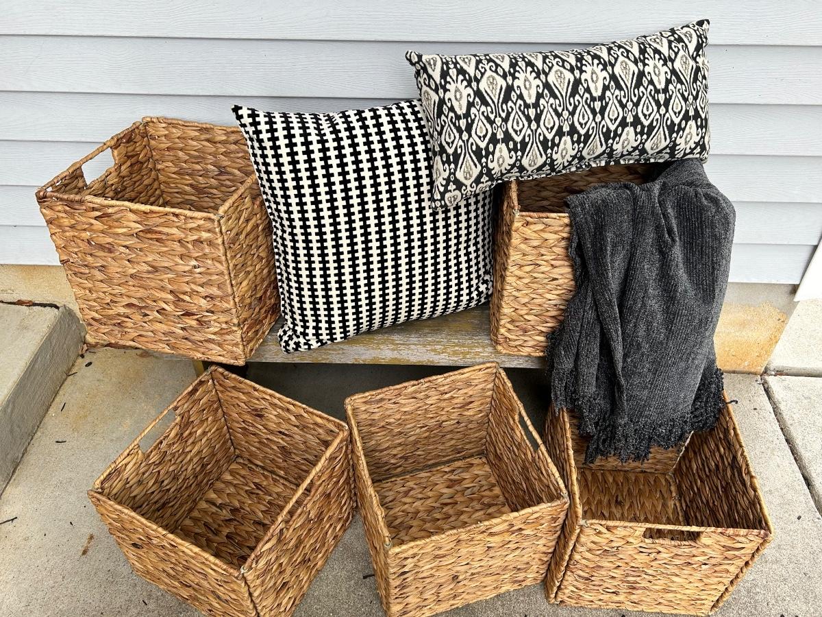 LOT 91: Five Matching Storage Baskets, Throw Pillows & Blanket