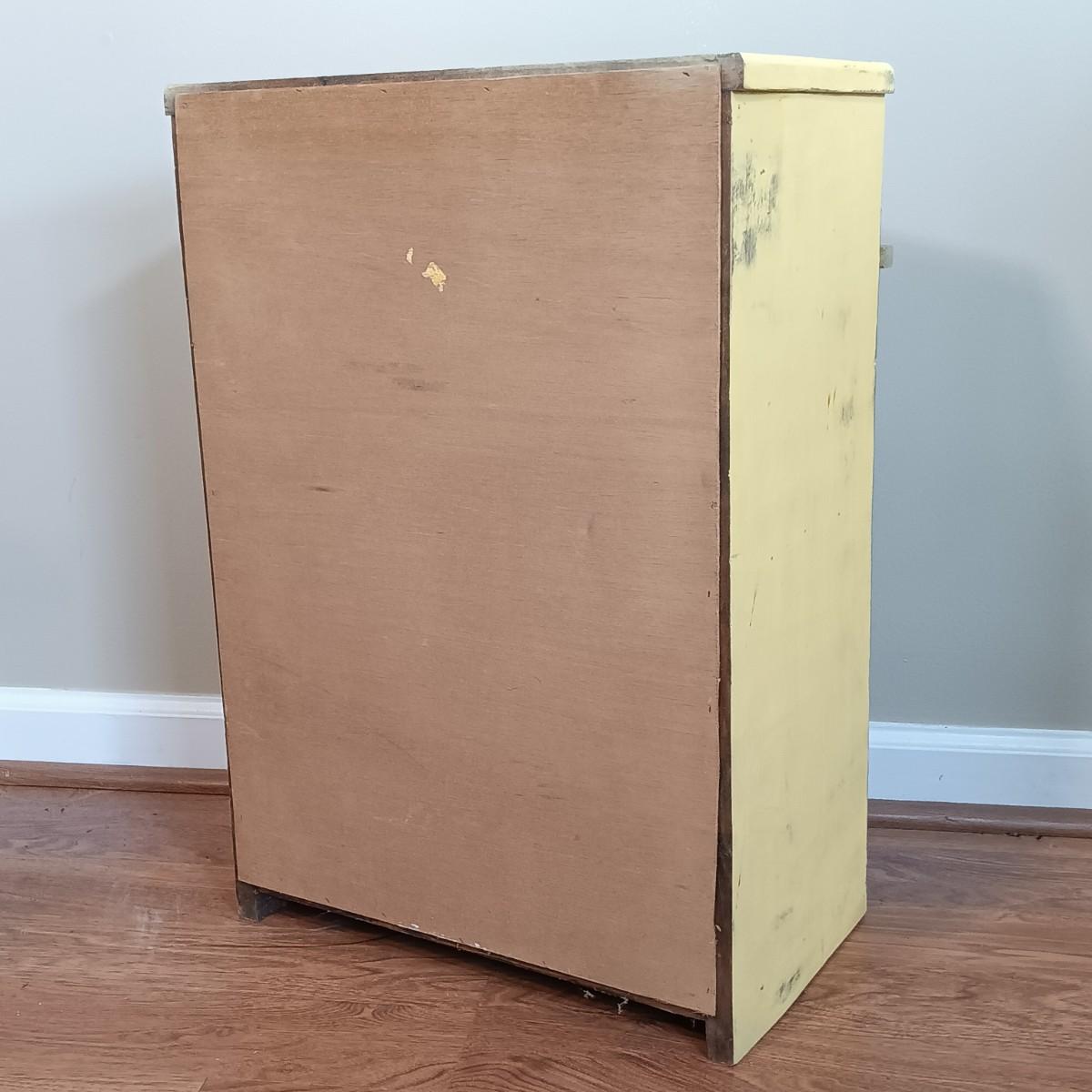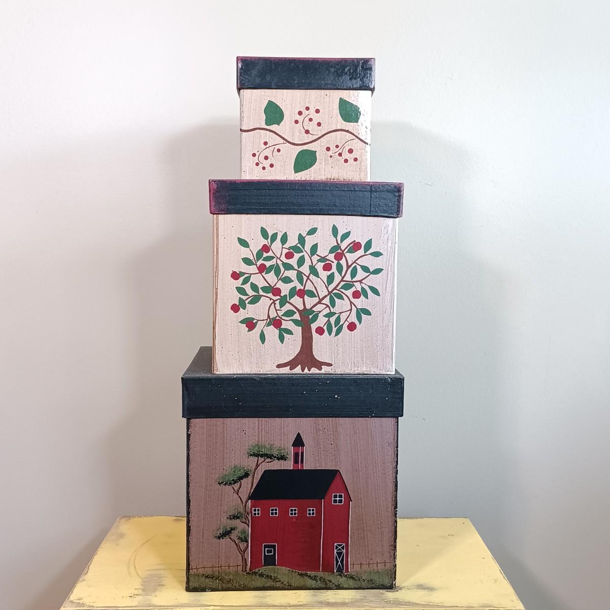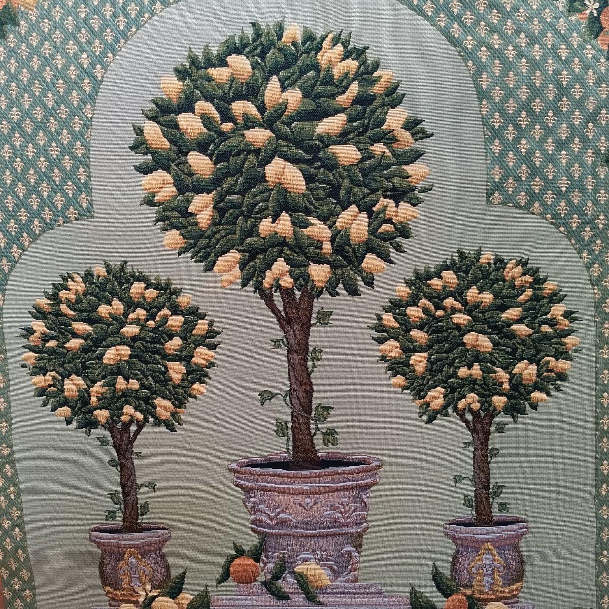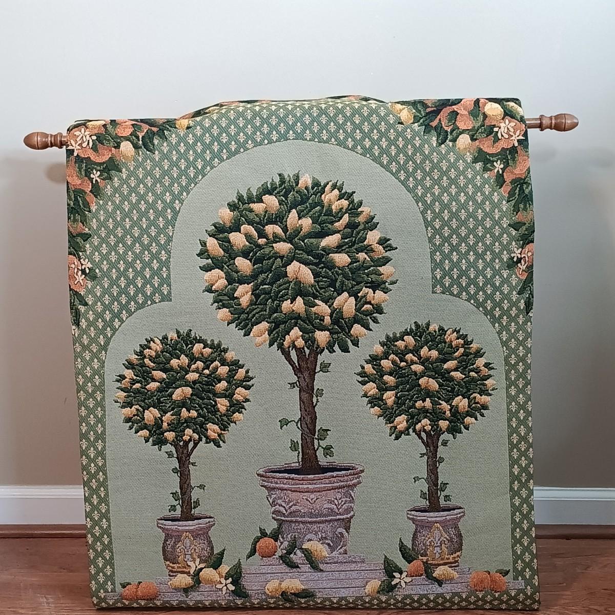 LOT 113: Lemon Topiary Tapestry 35x26 w/ a Small Primitive / Country Cabinet, Basket & Storage Boxes