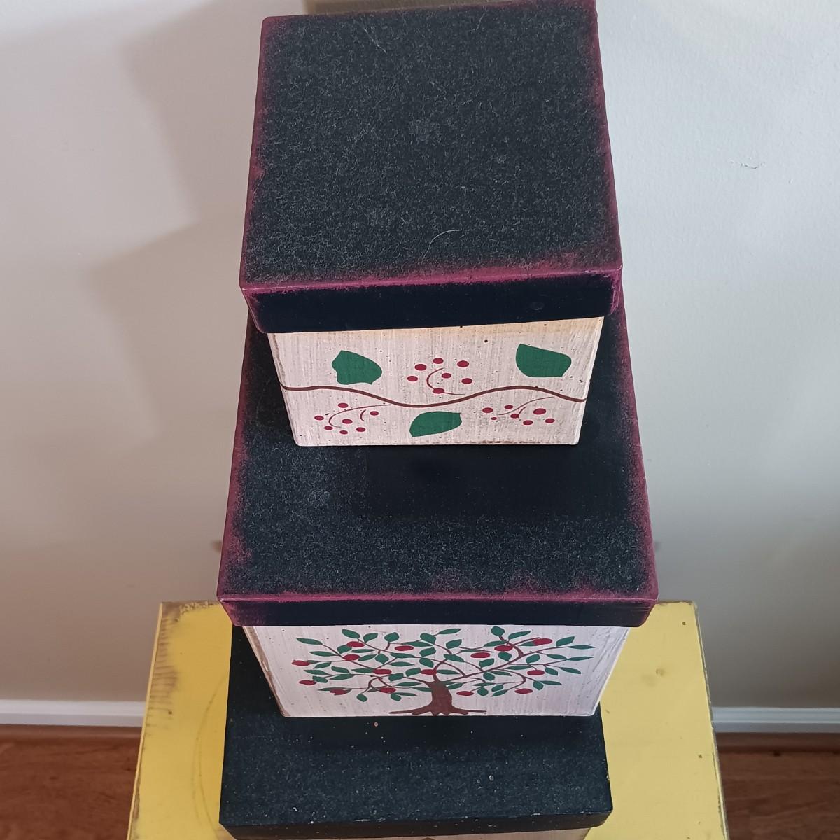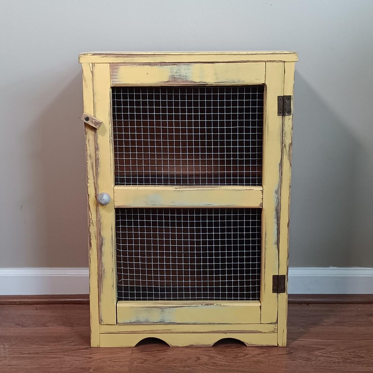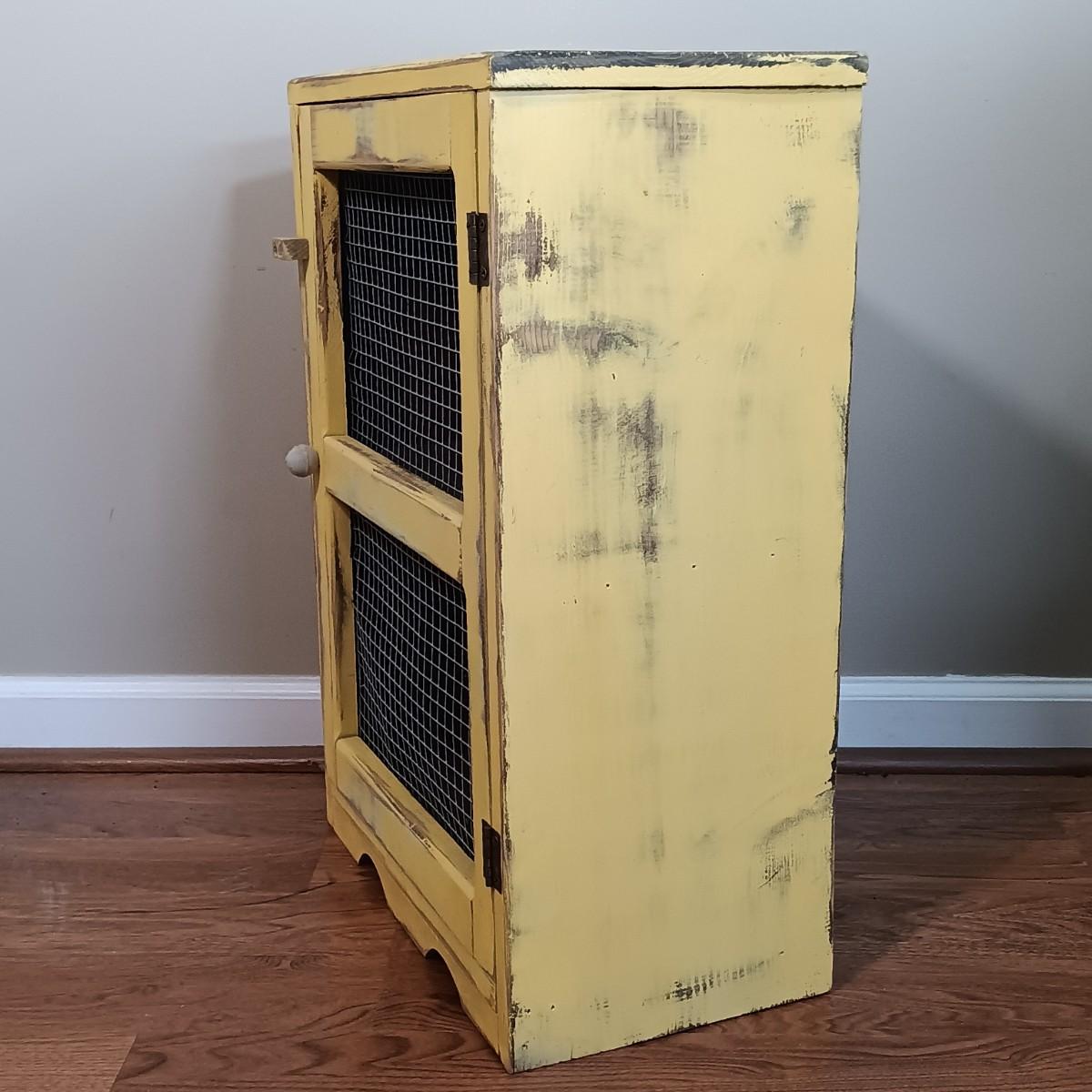 LOT 113: Lemon Topiary Tapestry 35x26 w/ a Small Primitive / Country Cabinet, Basket & Storage Boxes