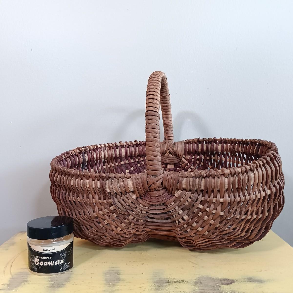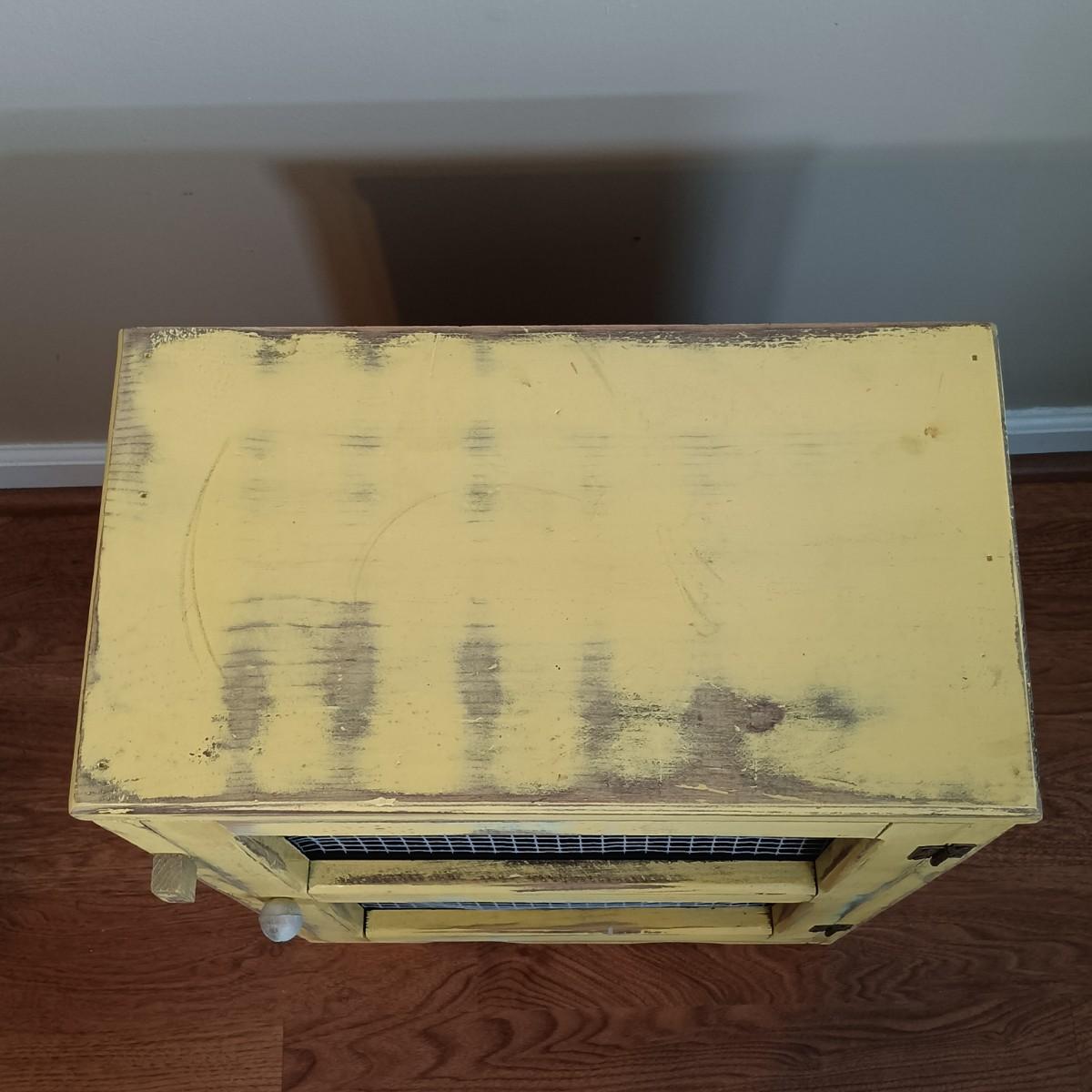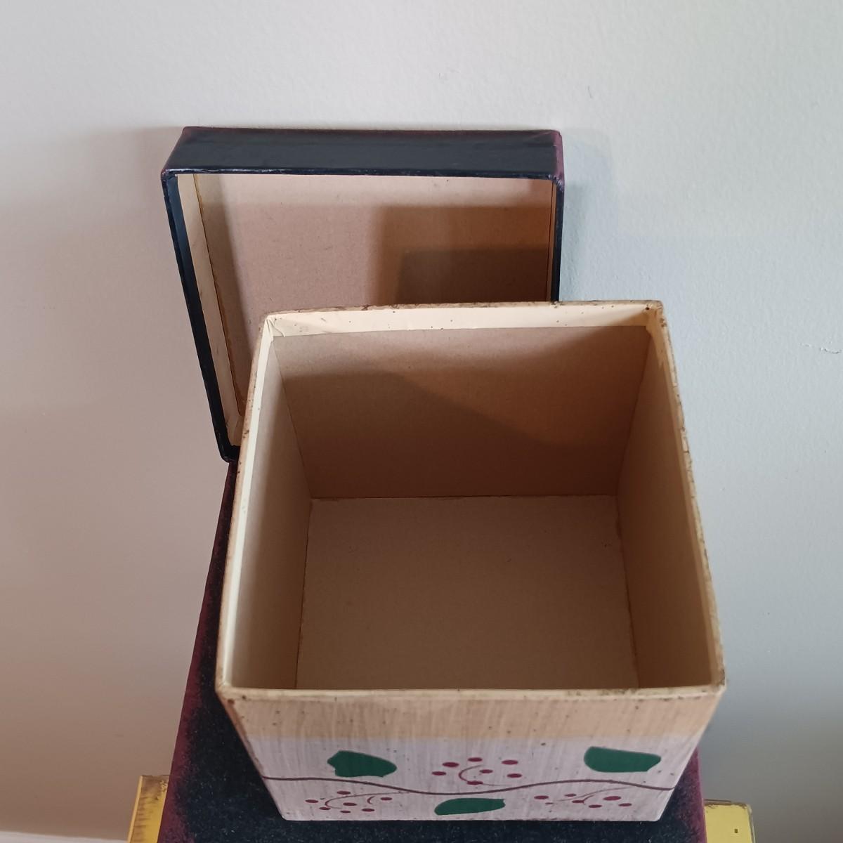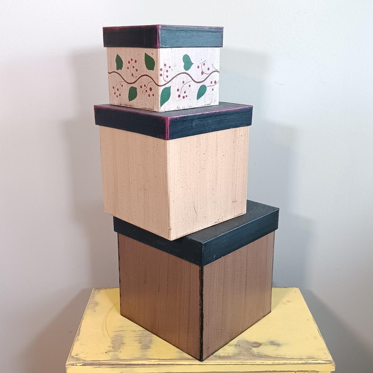 LOT 113: Lemon Topiary Tapestry 35x26 w/ a Small Primitive / Country Cabinet, Basket & Storage Boxes