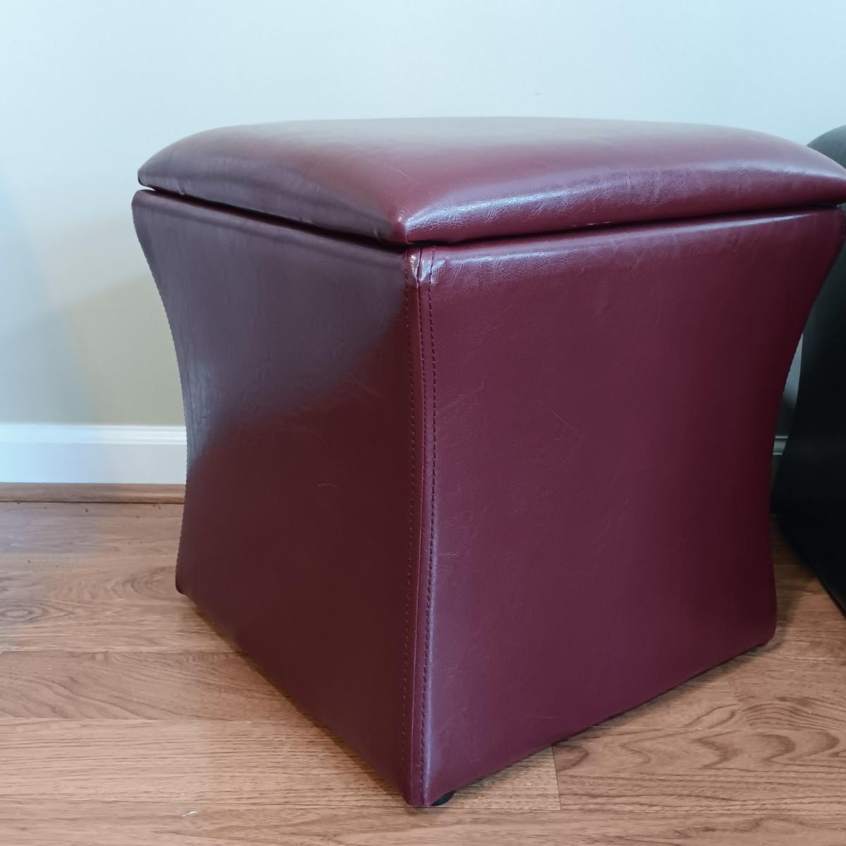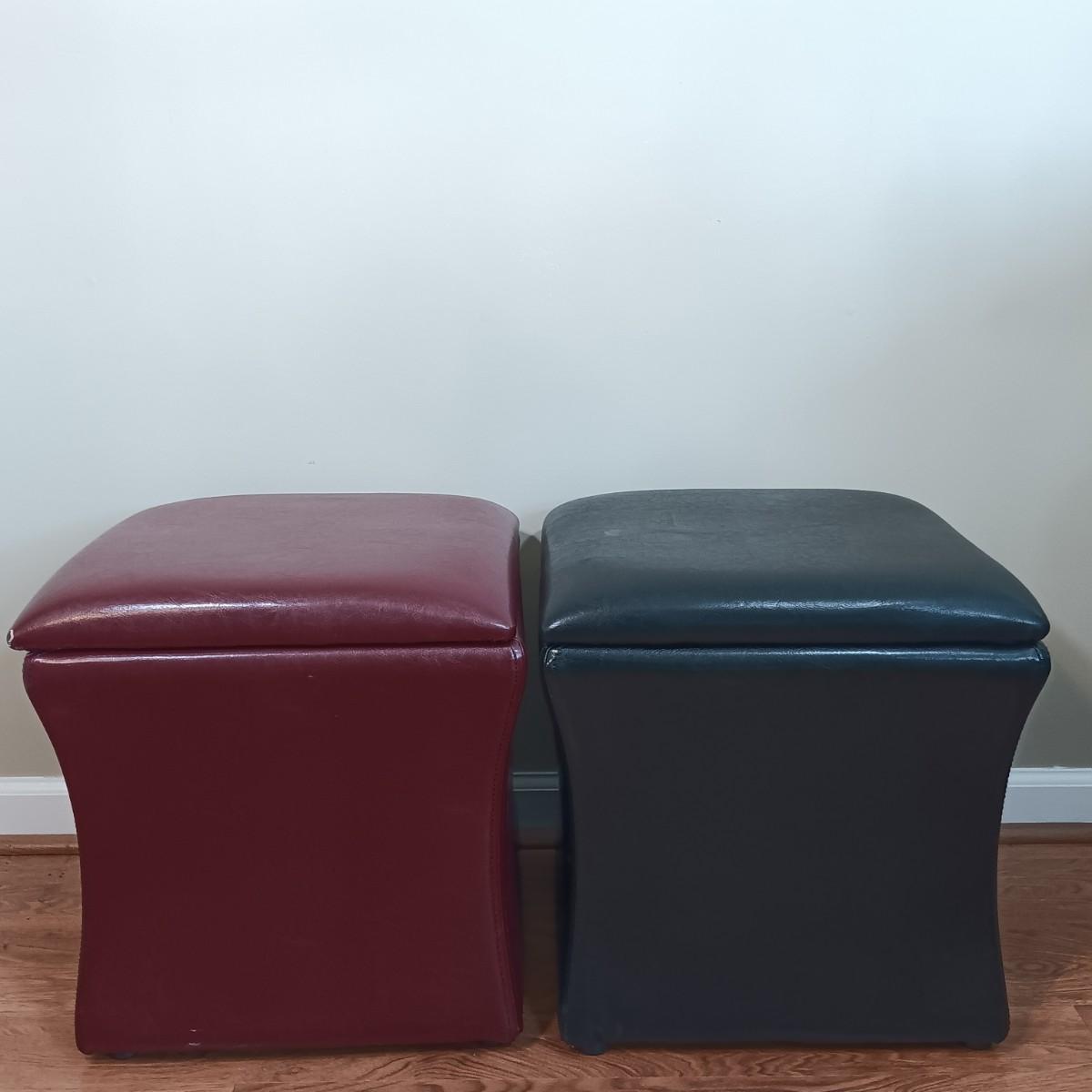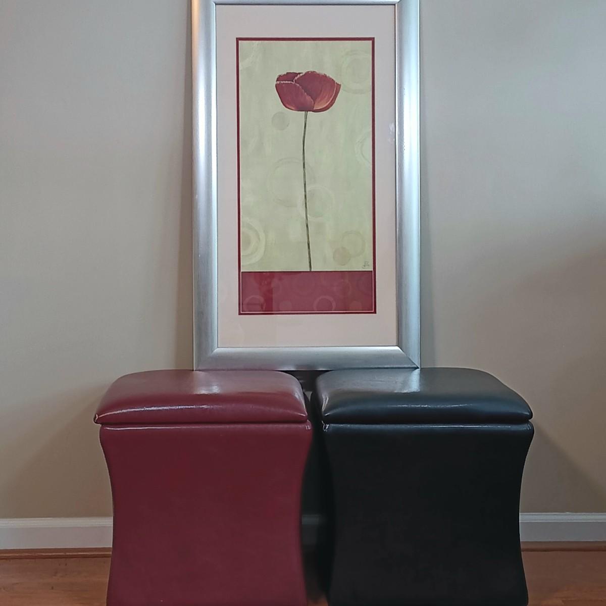 LOT 120: Set of 2 Ottamans w/ Framed B. Daphne Print 20x34