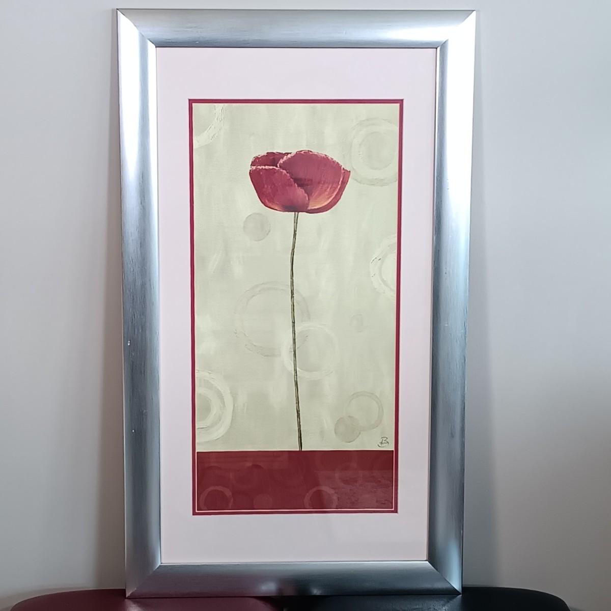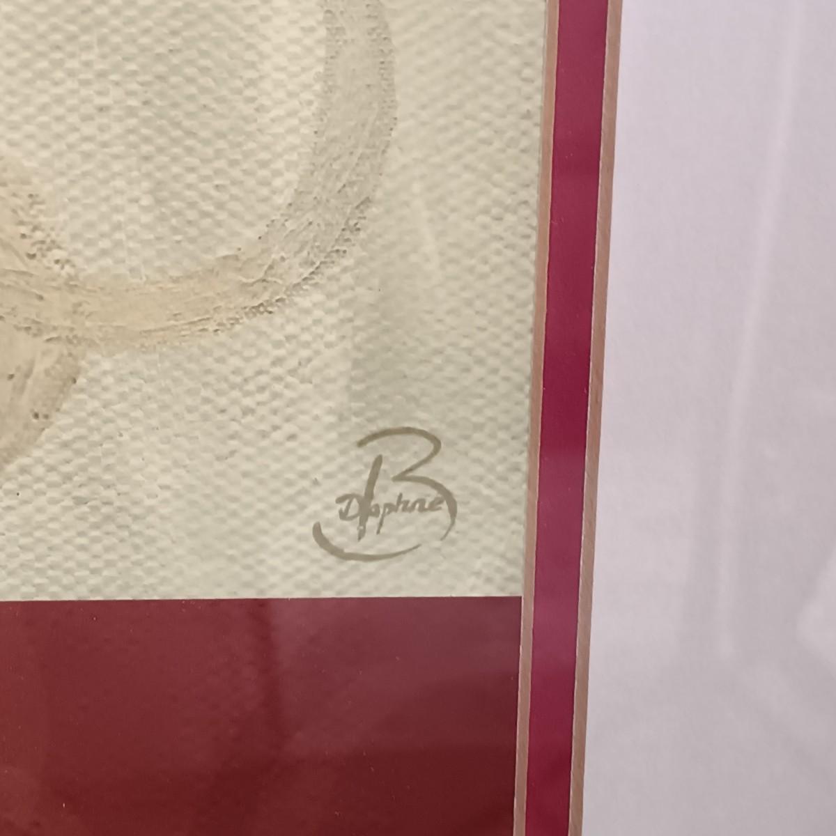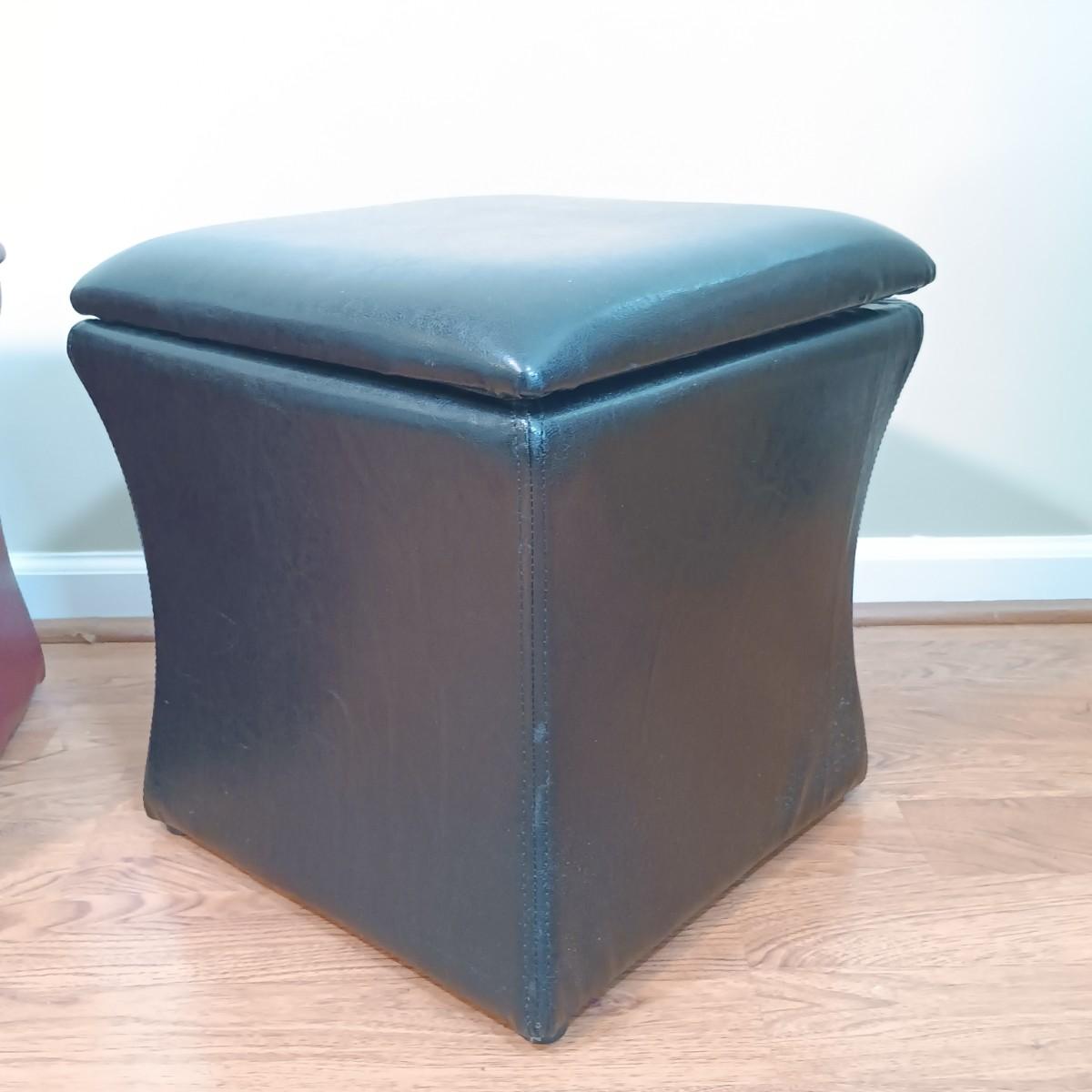LOT 120: Set of 2 Ottamans w/ Framed B. Daphne Print 20x34