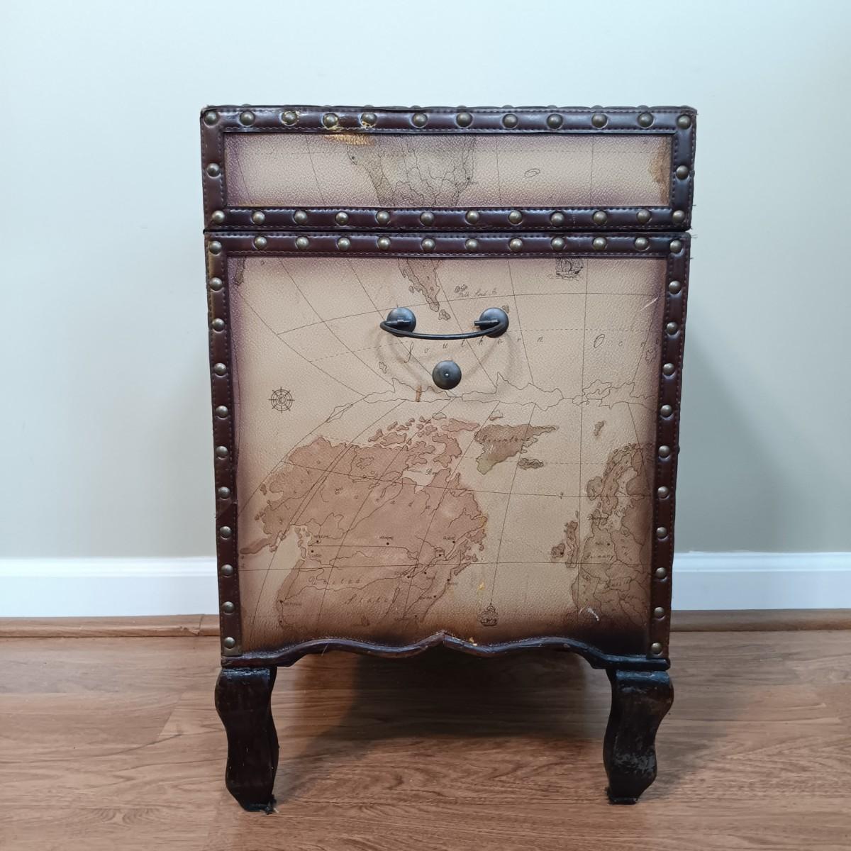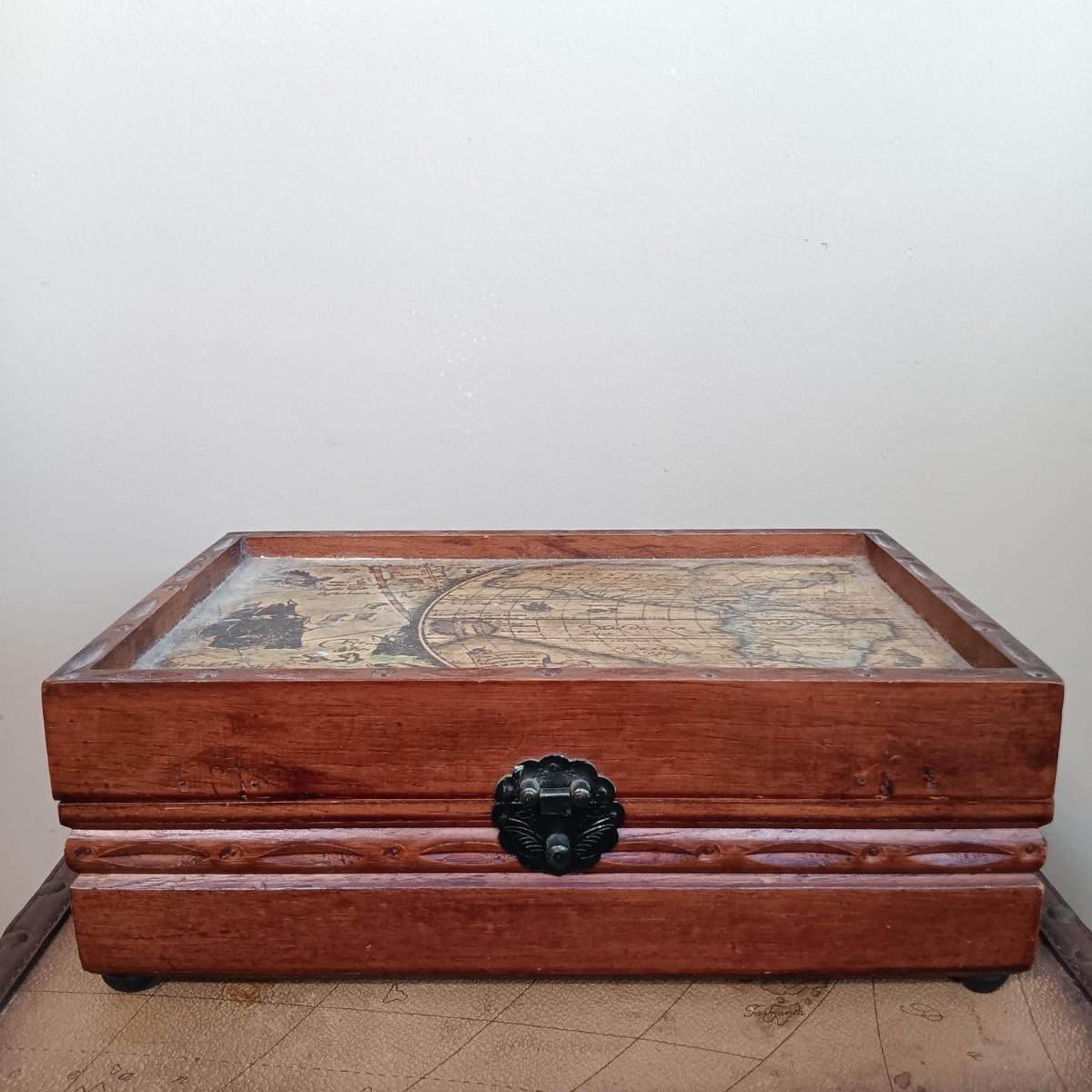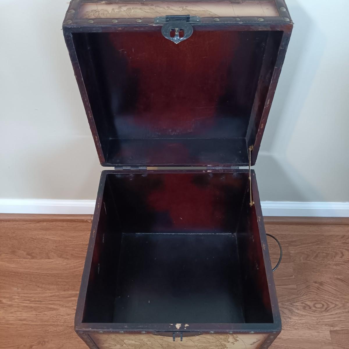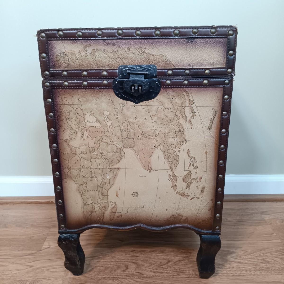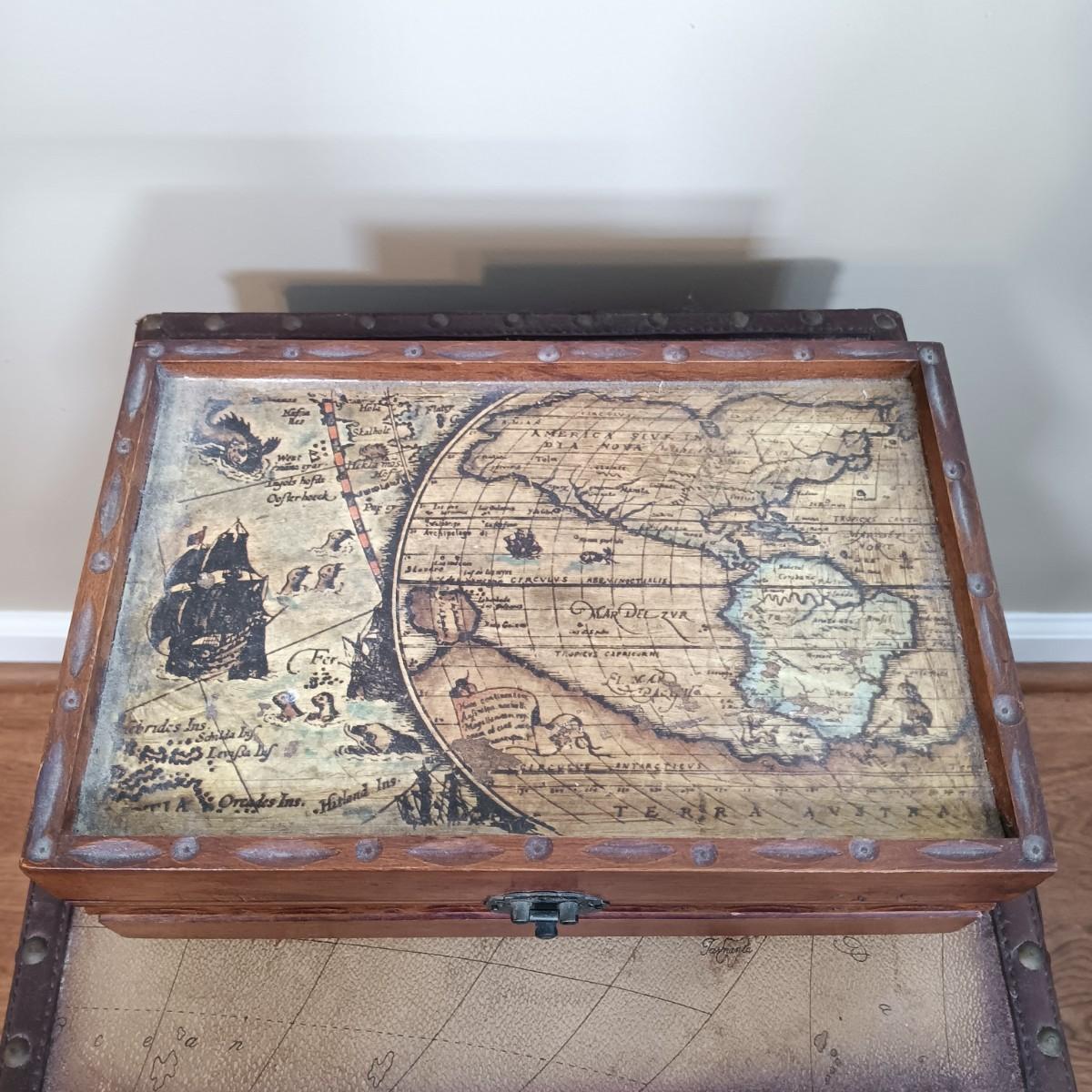 LOT 129: Gilt Framed Earth Rotation Chart Mirror w/ Storage Boxes, Steampunk Wall Clock & Lamp