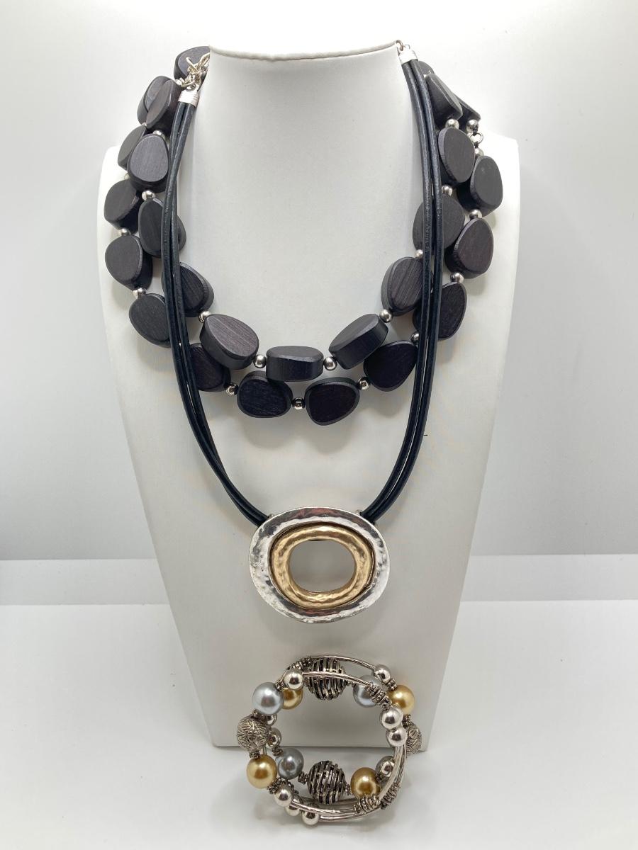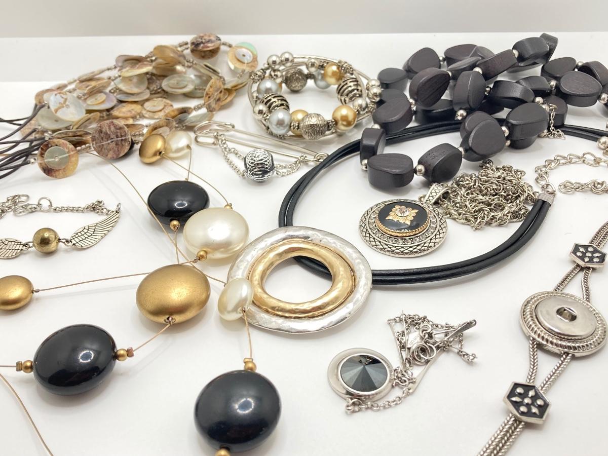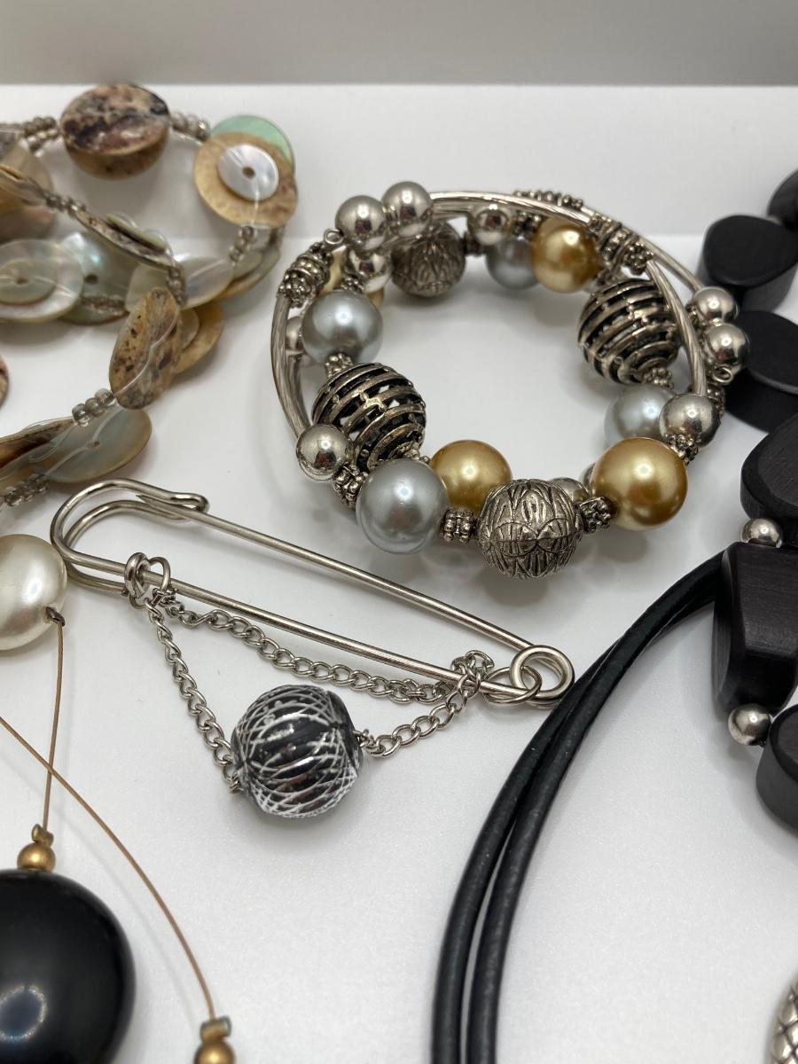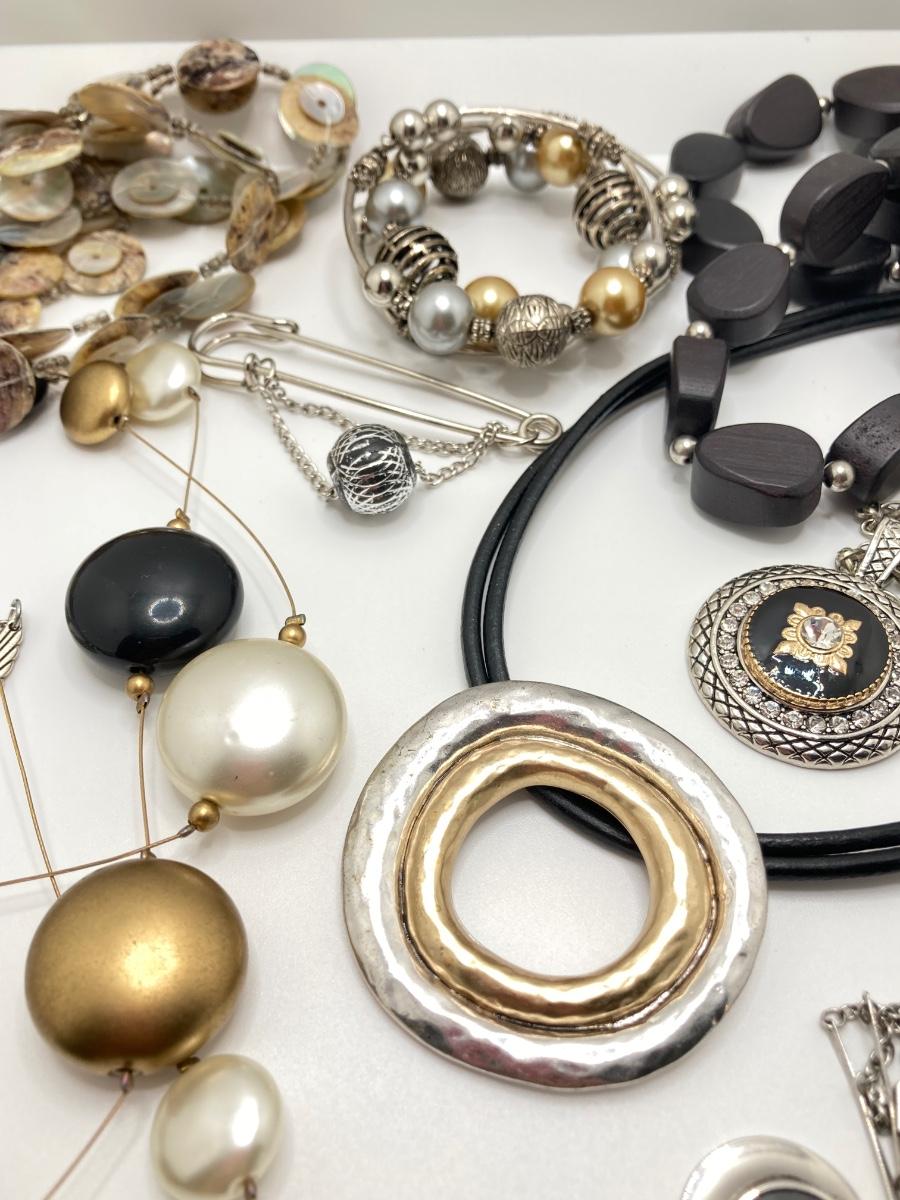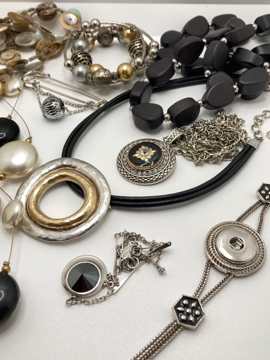 LOT 164: Silver / Gold Tone with Black Costume Jewelry Collection