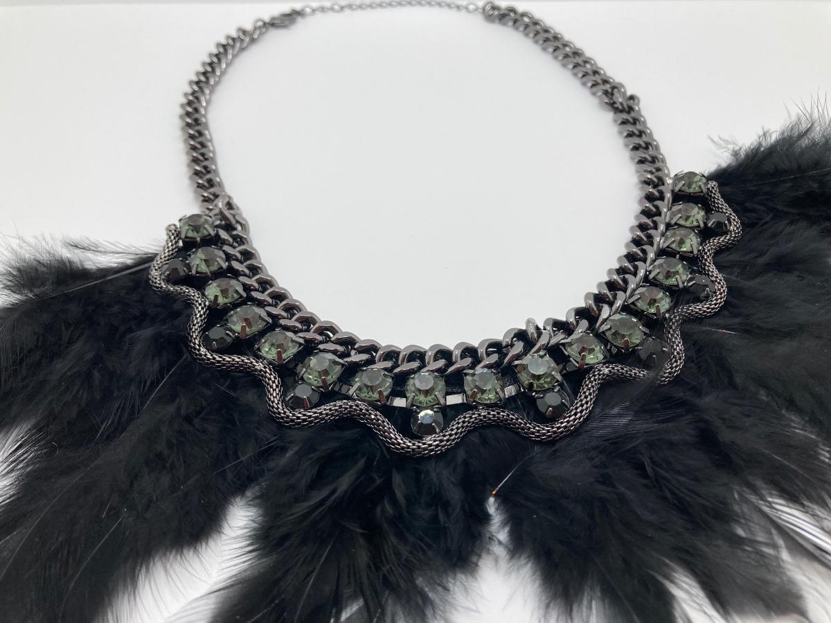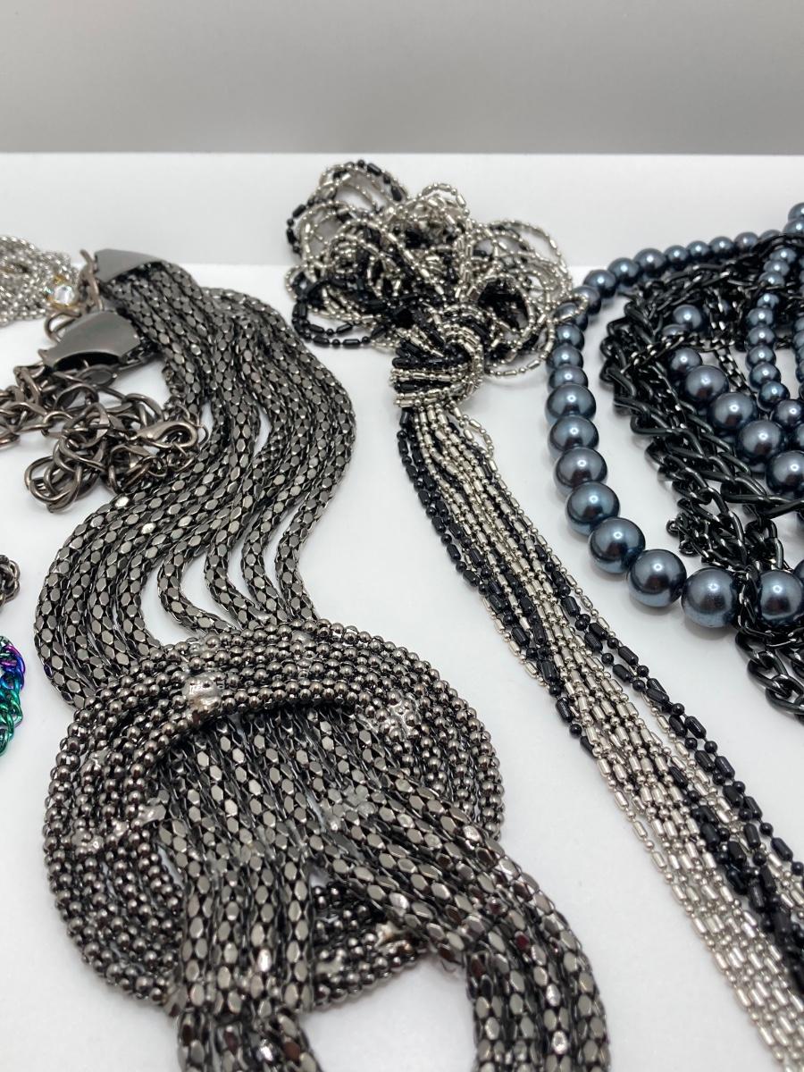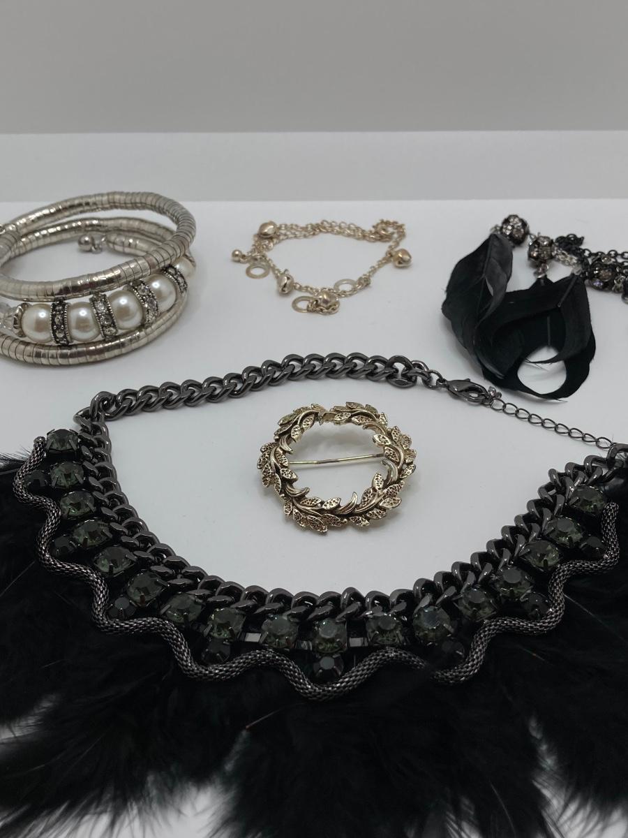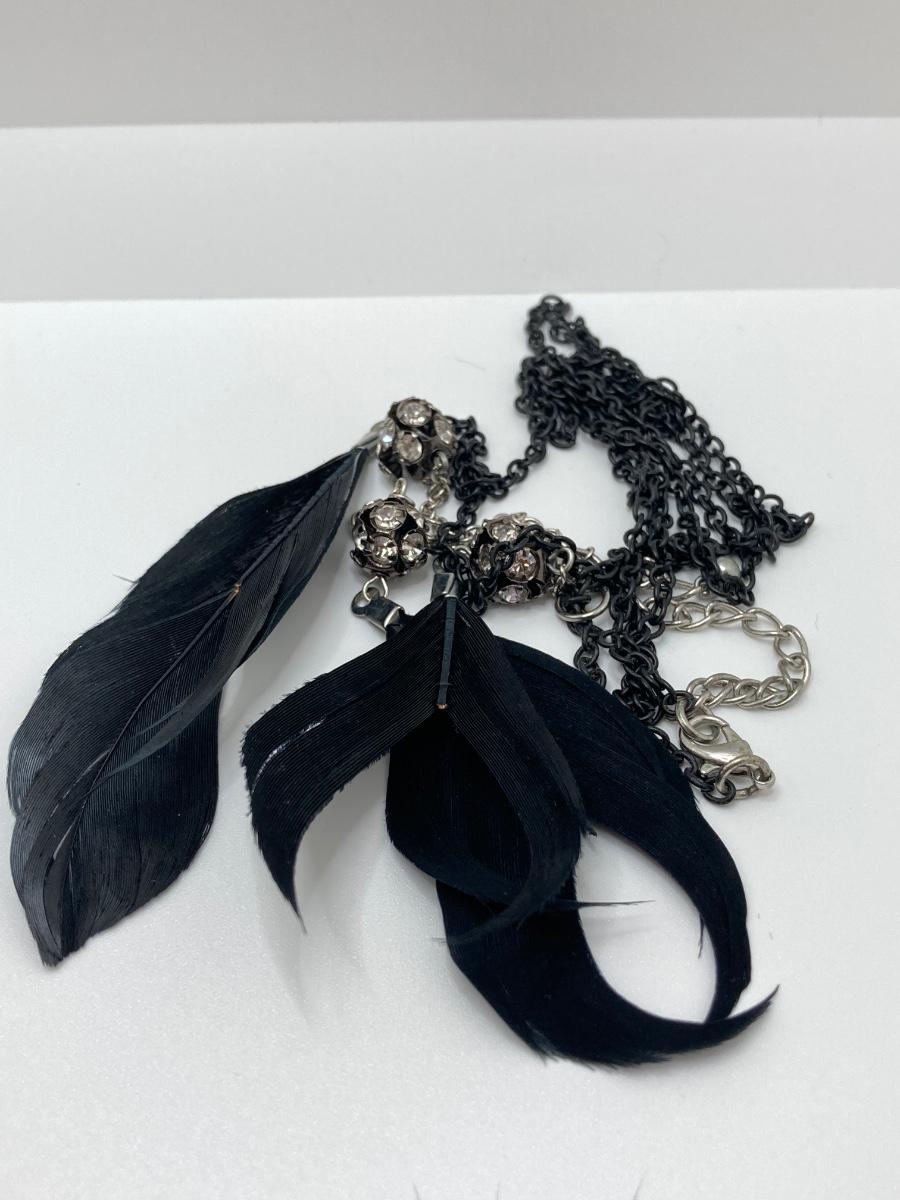 LOT 166: Black and Silver Tone Jewelry Collection - Feathers, Beads and More