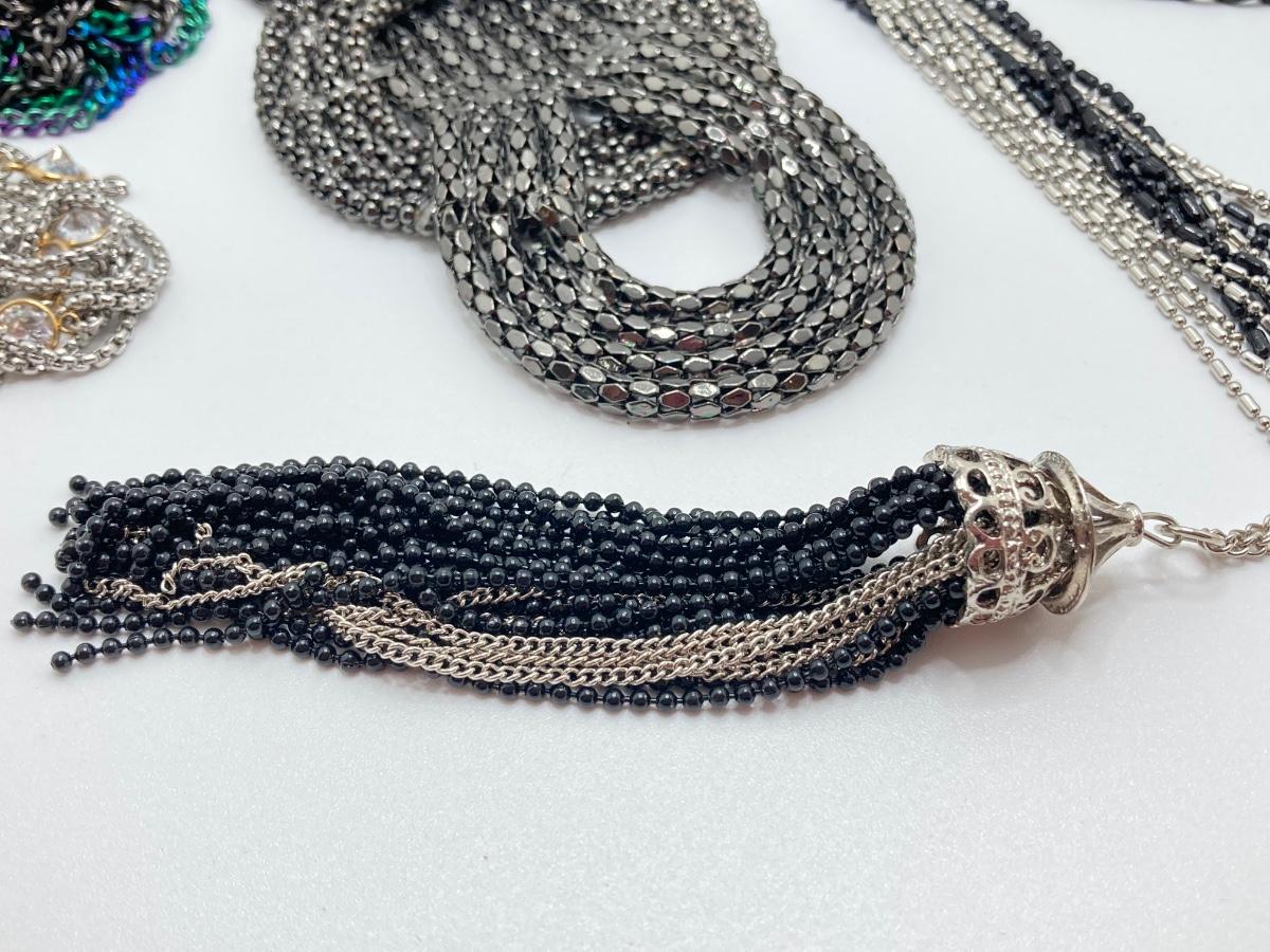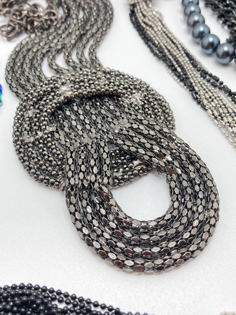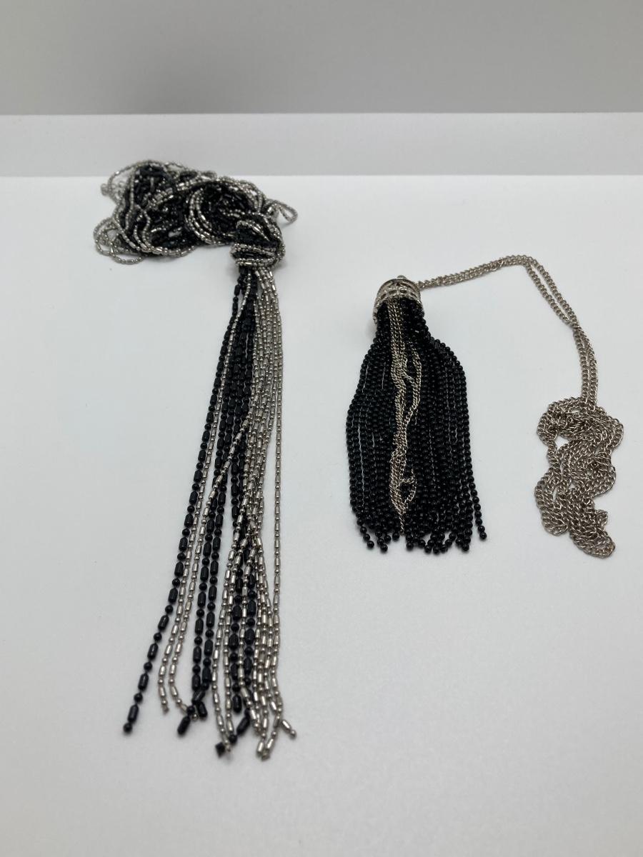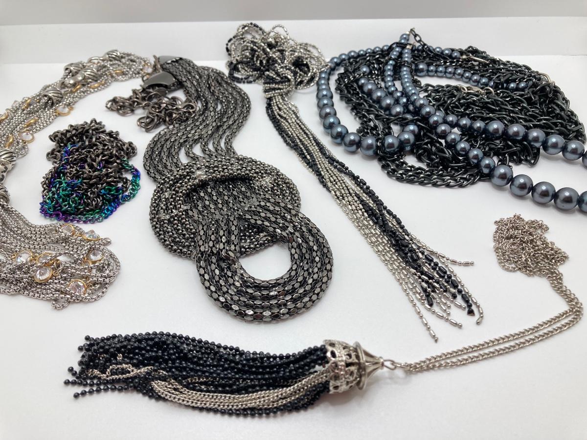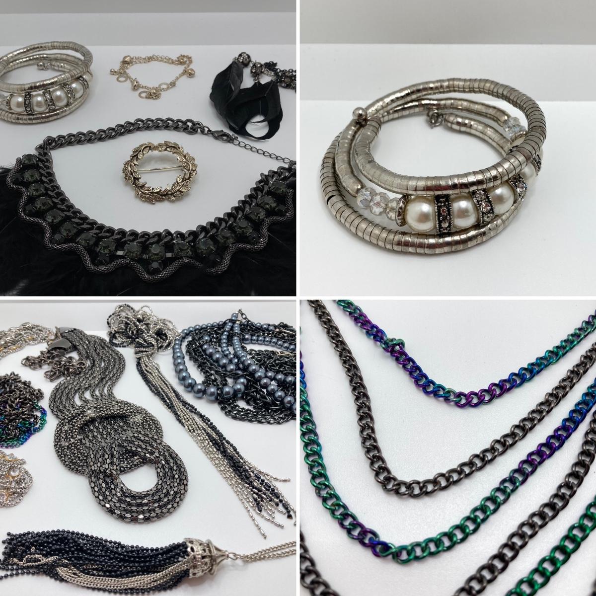 LOT 166: Black and Silver Tone Jewelry Collection - Feathers, Beads and More