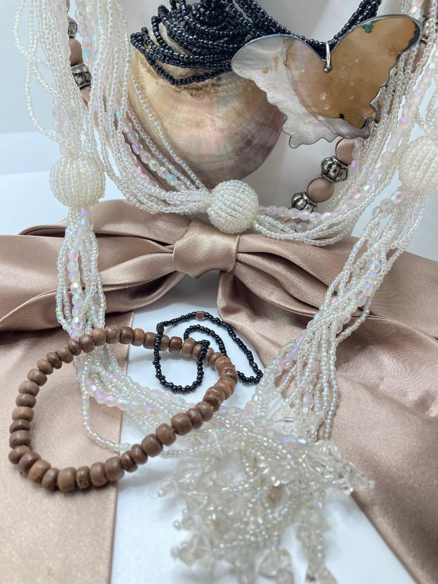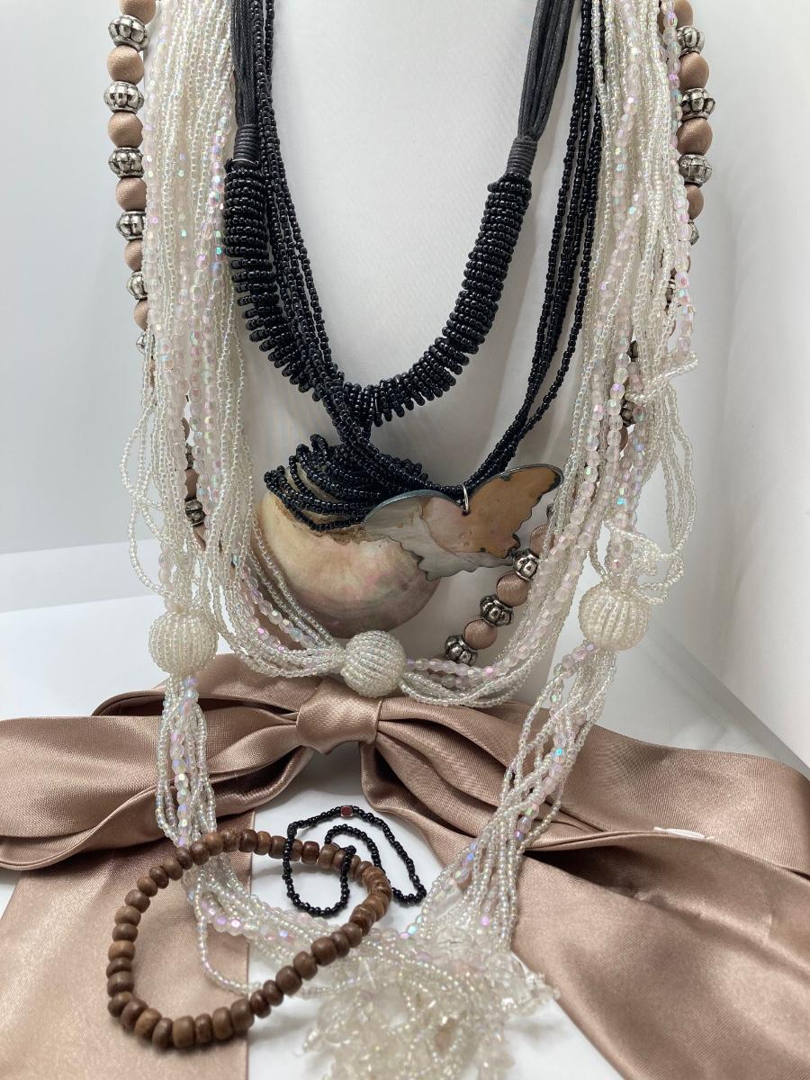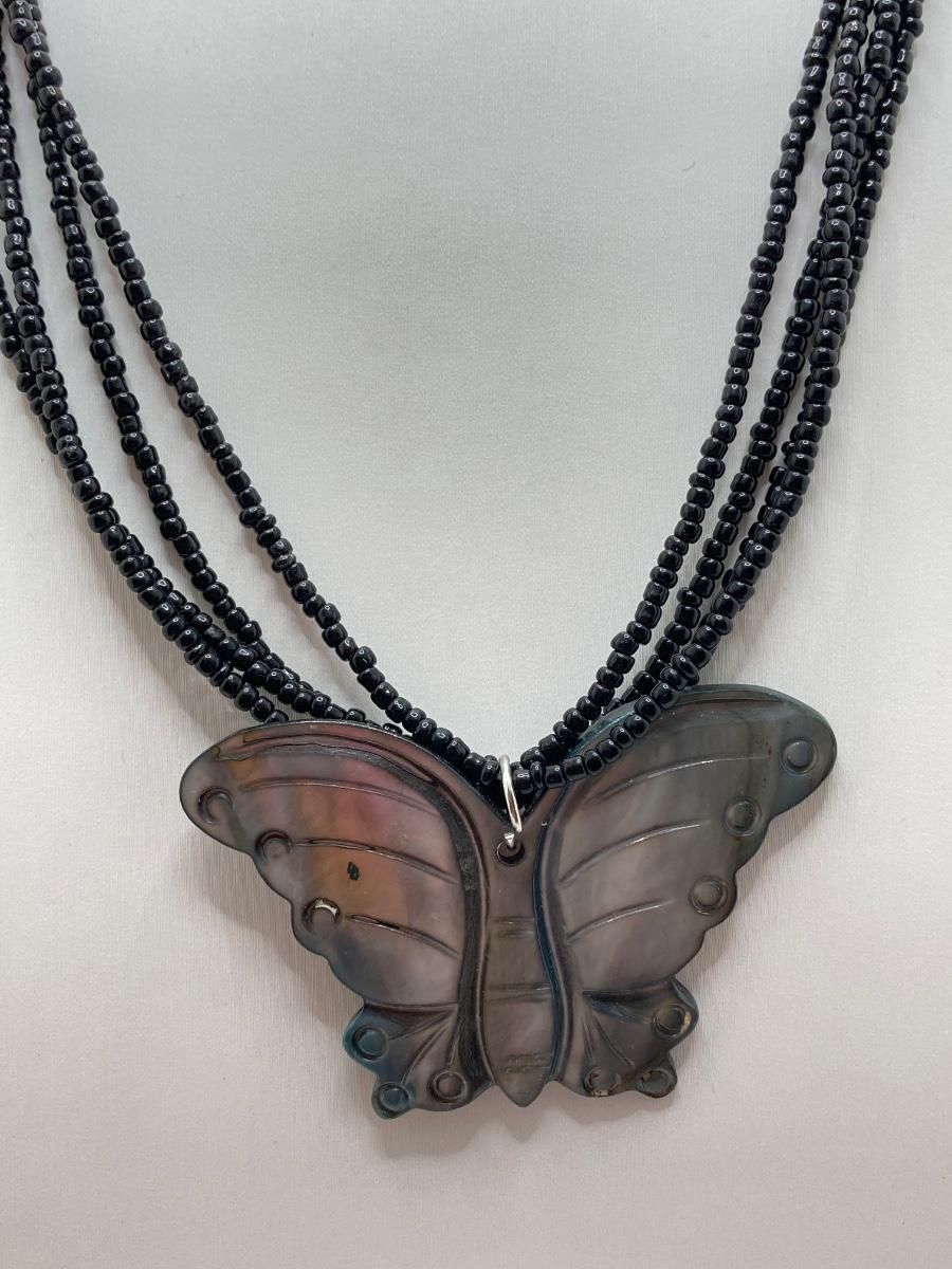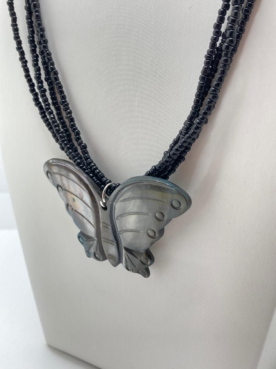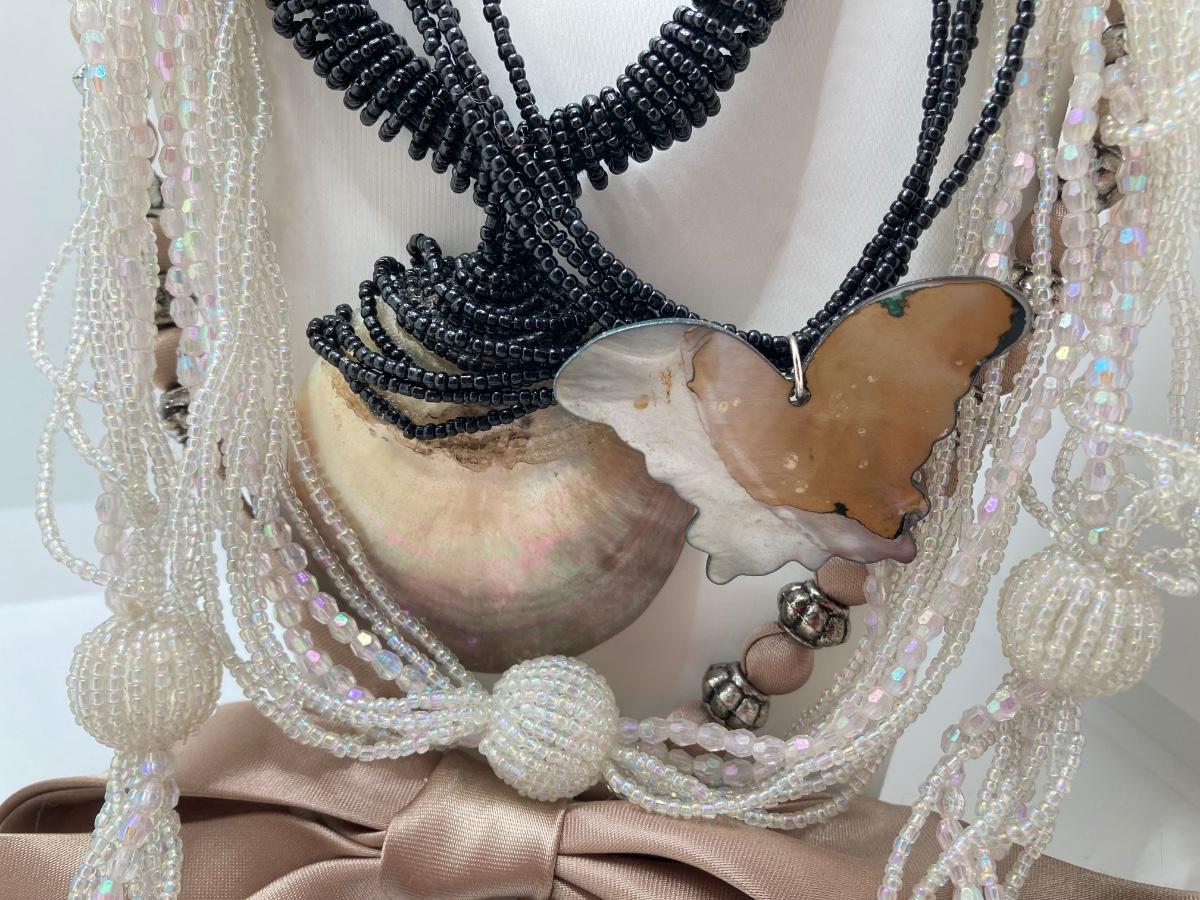 LOT 191: Collection of Costume Jewelry - Butterfly Necklace, Iridescent Beaded Necklace, Tie Style Necklace and More