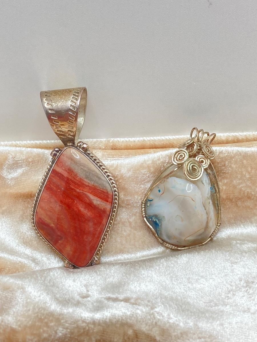 Natural Rhodochrosite, Moss Agate, Banded Agate, Heliodor, Poured glass; Cinnabar and more 925 Sterling Silver Pendant, Gemstone Pendant,Top Quality Rhodochrosite Pendant, Rare Size Rhodchrosite image 1