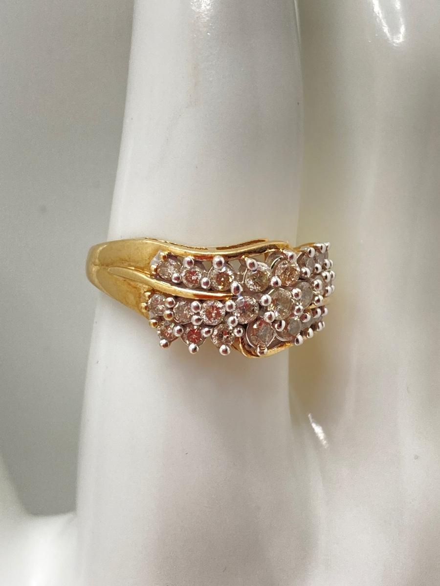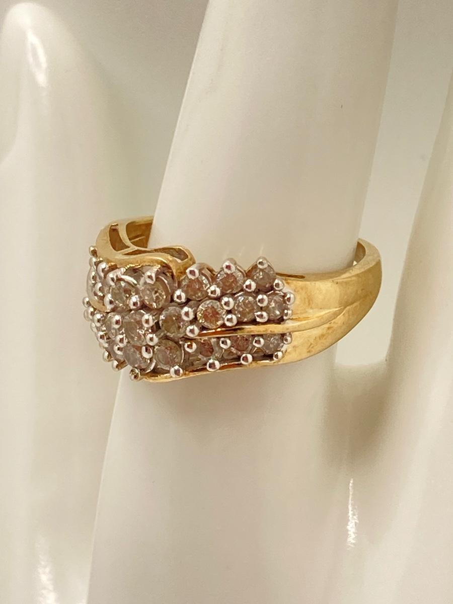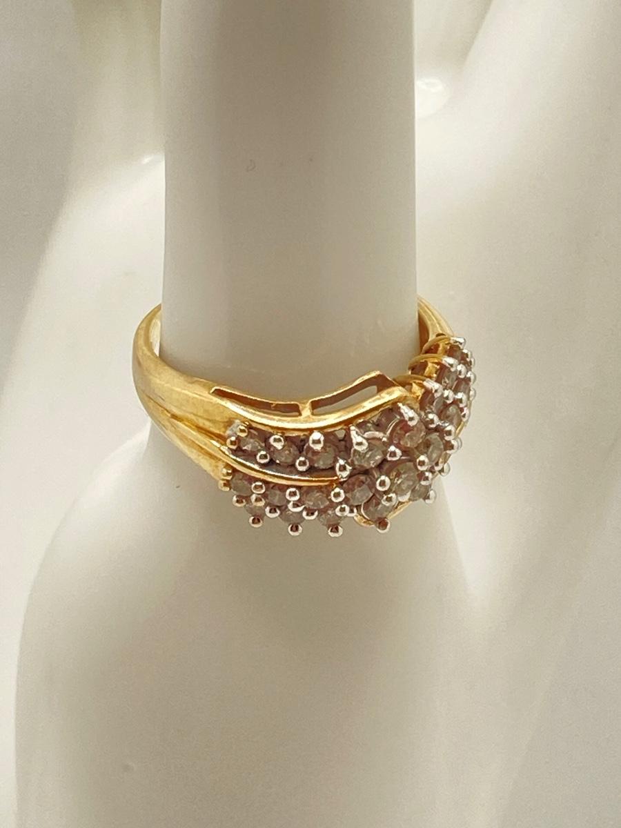 LOT 205: Gold Ring with 25 Diamonds - 10KT, TW 4.51g, Sz 8.5 / 8.75