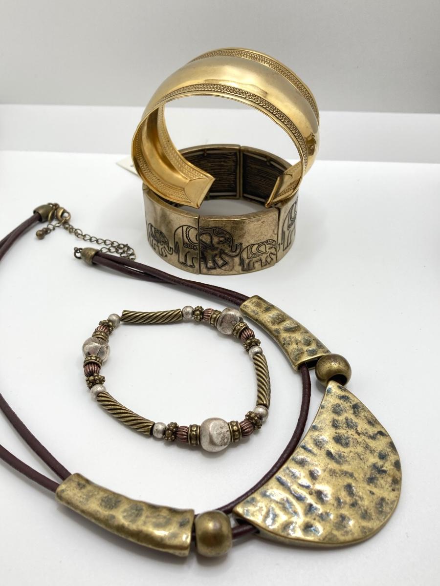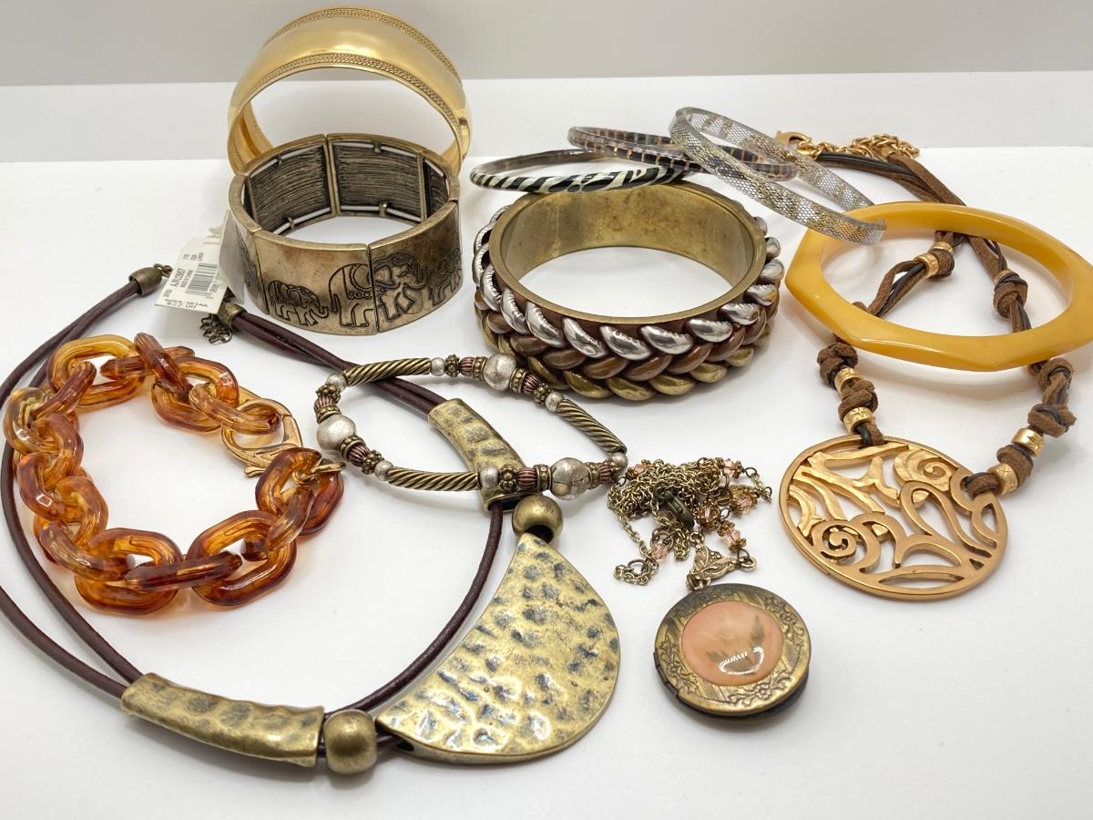 LOT 213: Collection of Bangle Bracelets, Necklaces and More
